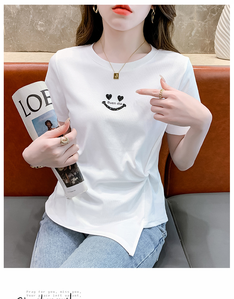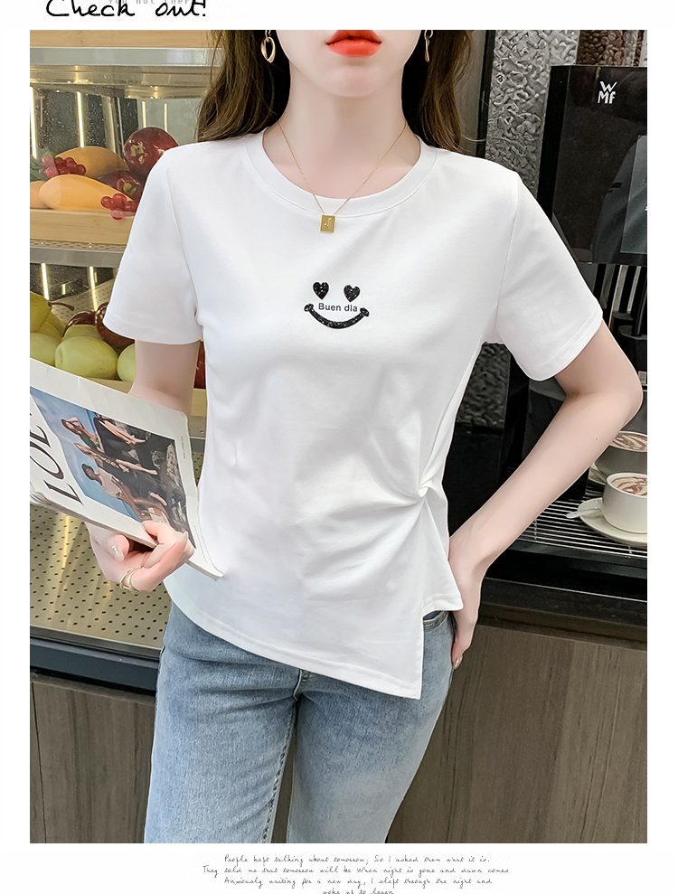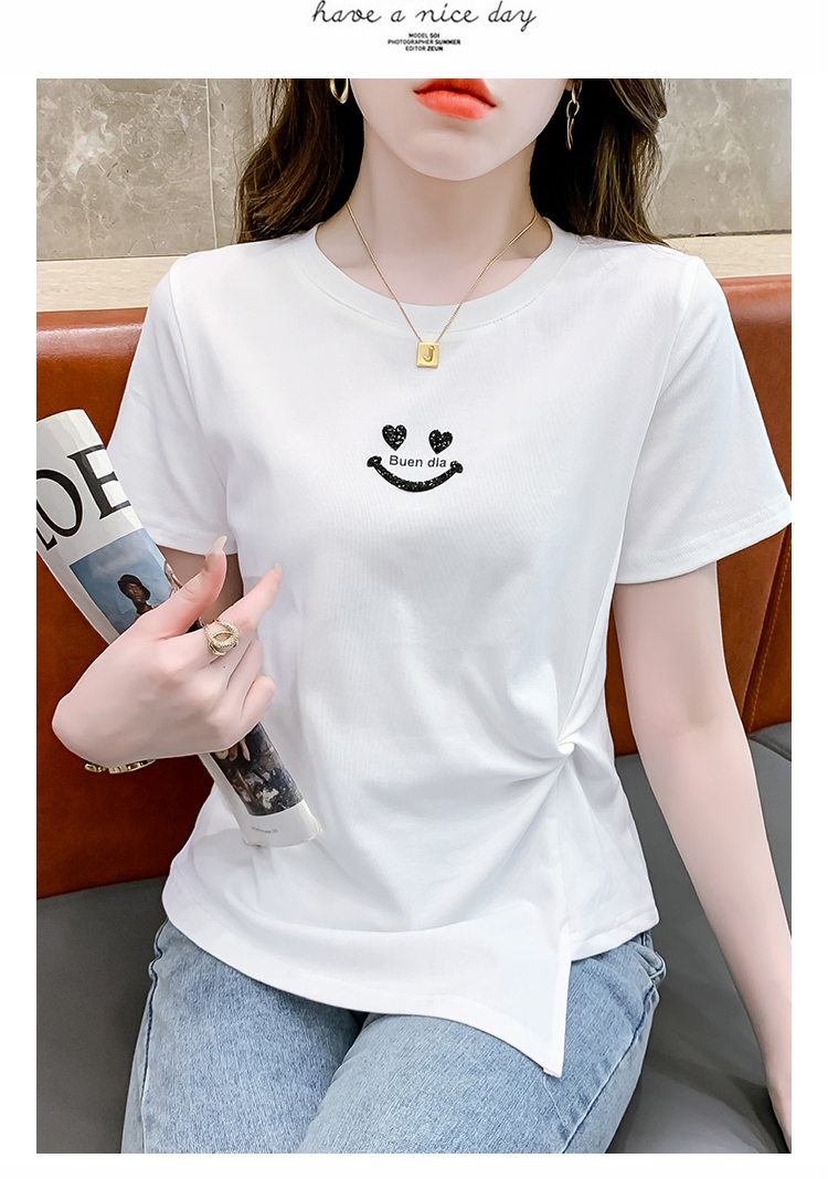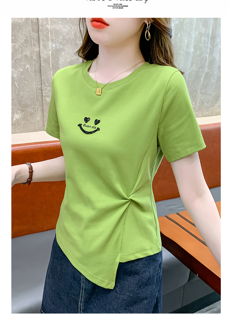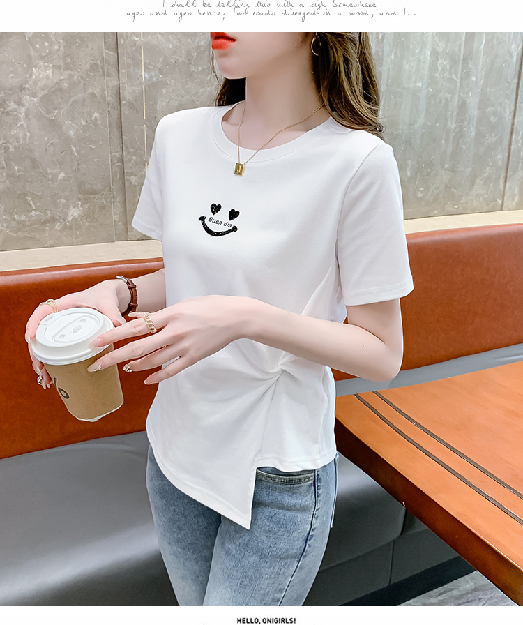 限量特惠|簡約微笑抓褶不規則修身T恤-2色(06H4095)