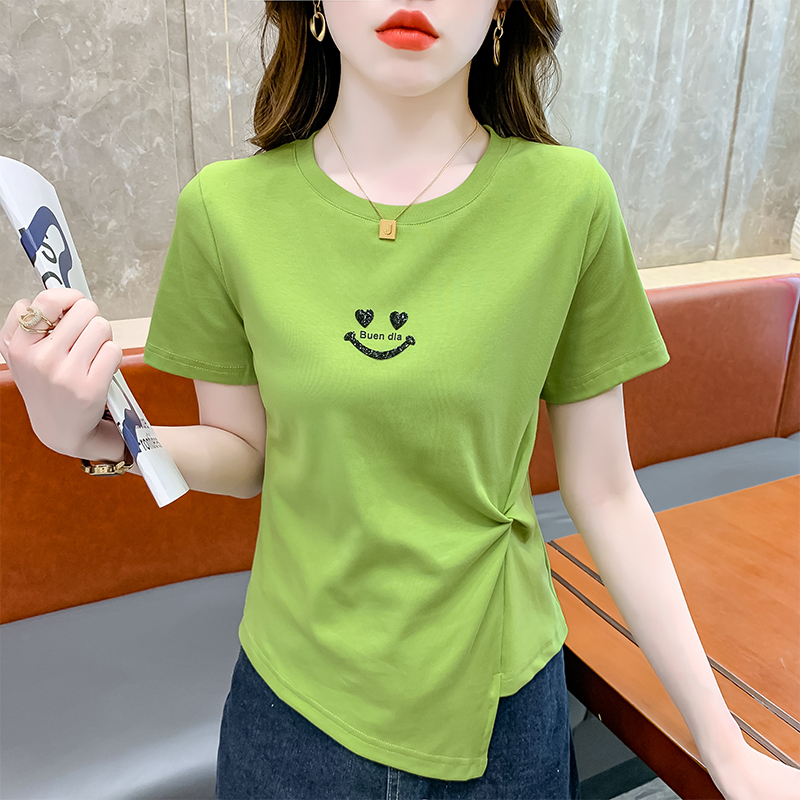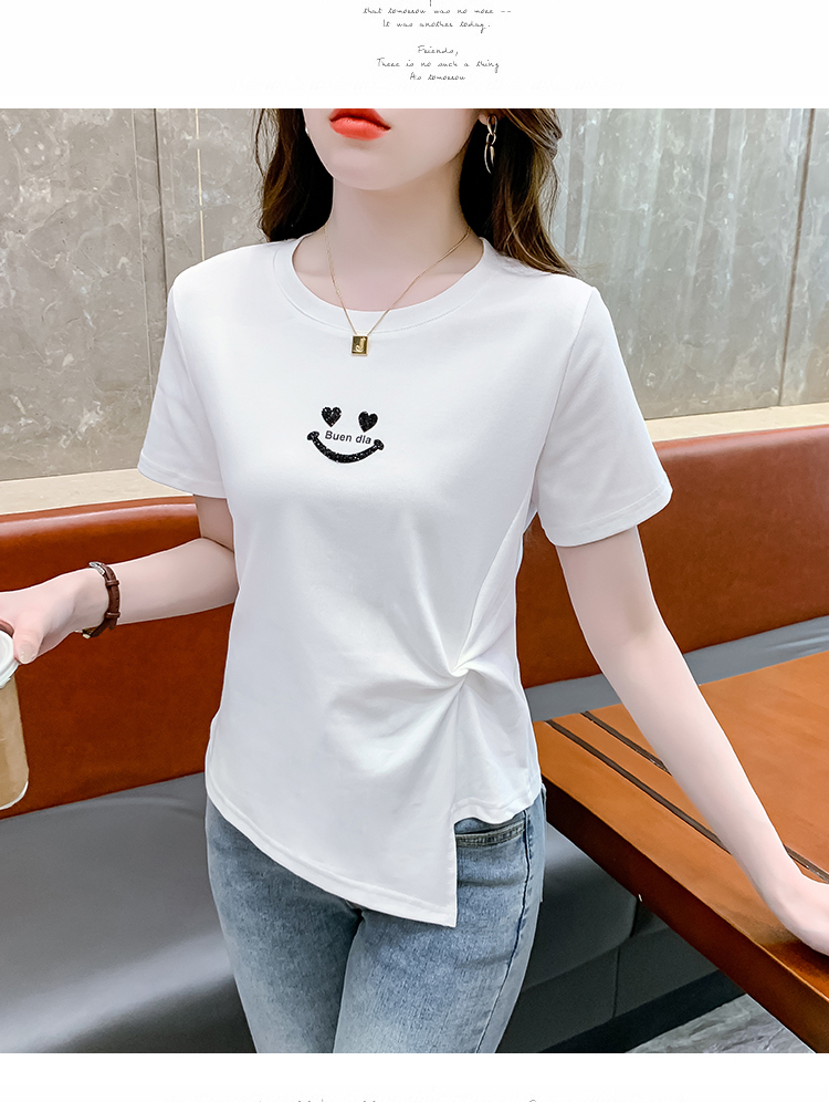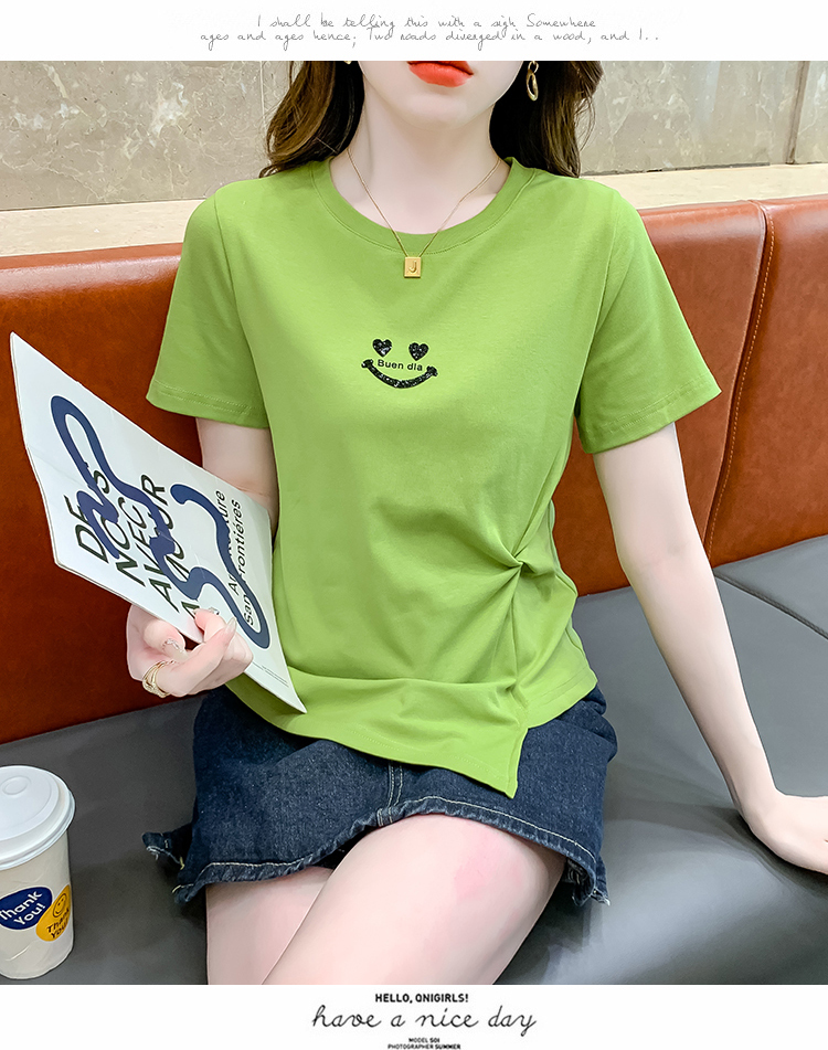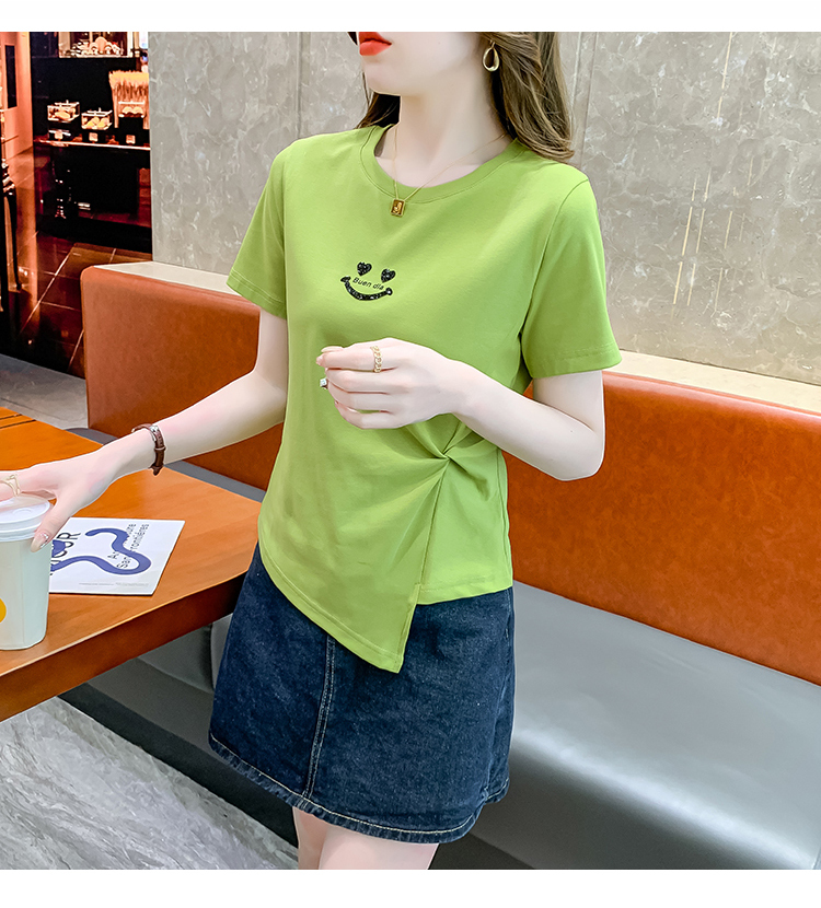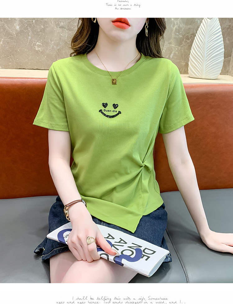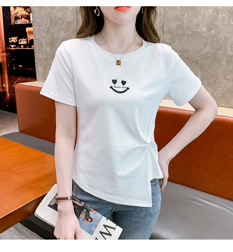 限量特惠|簡約微笑抓褶不規則修身T恤-2色(06H4095)