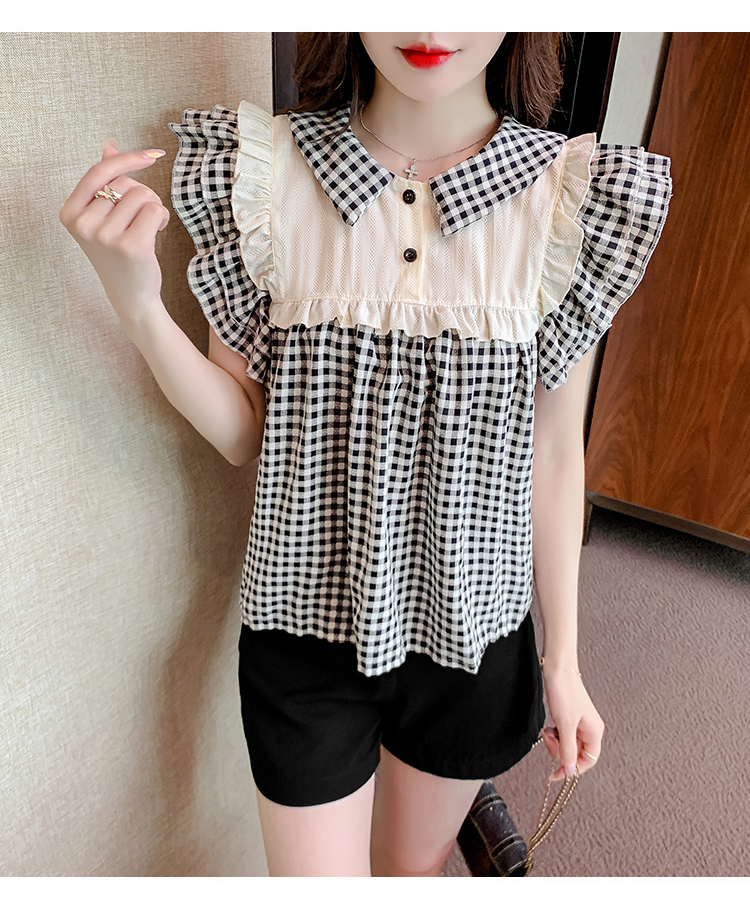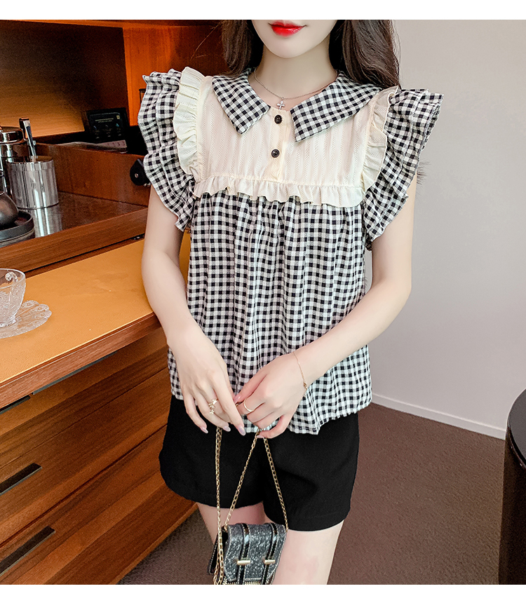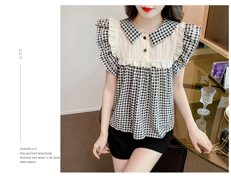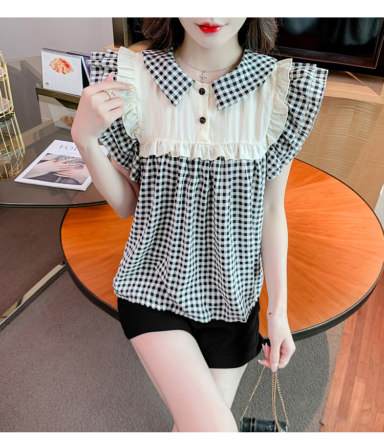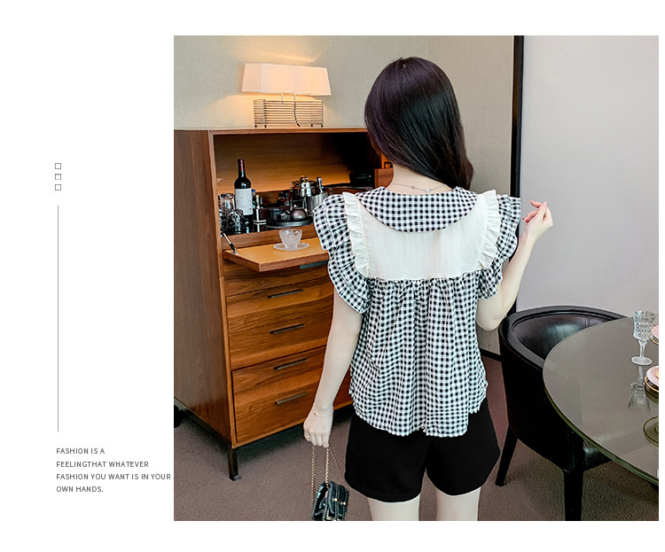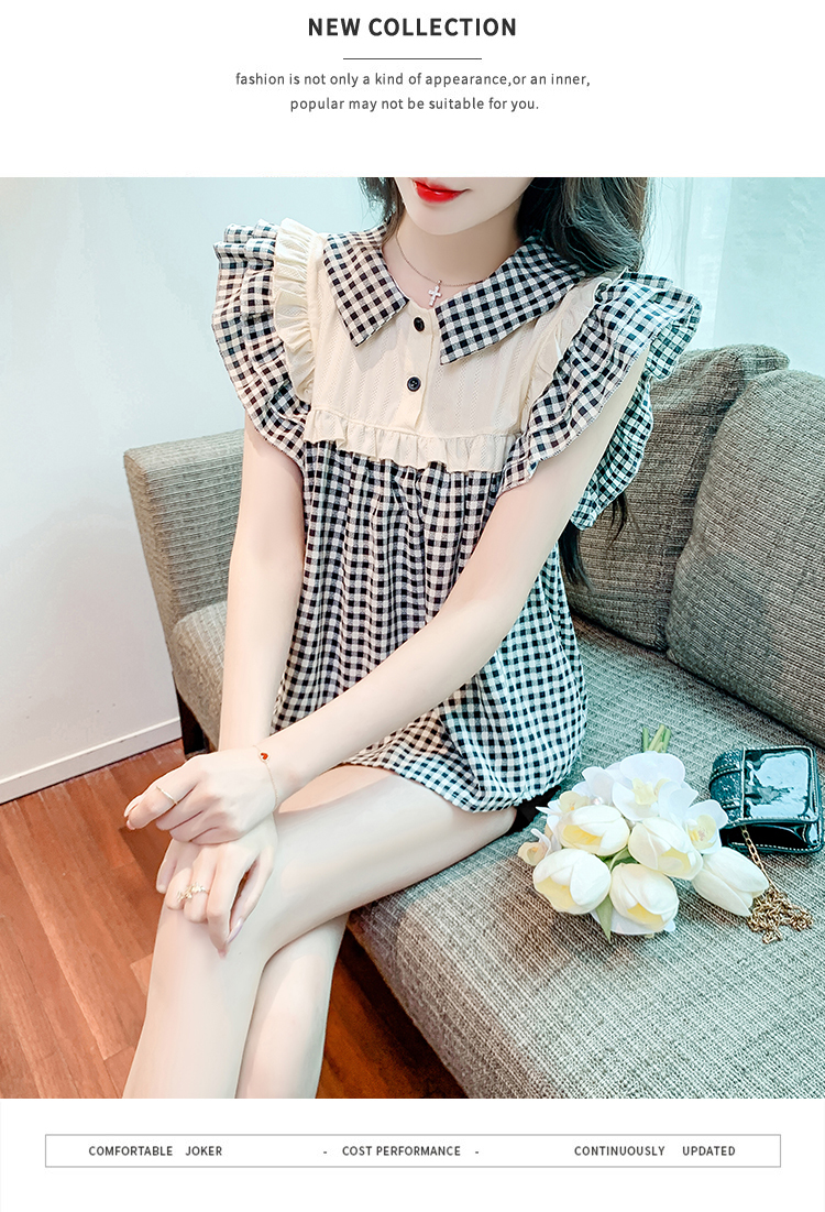 限量特惠|甜感舒適撞色飛飛袖格紋上衣(06H4107)