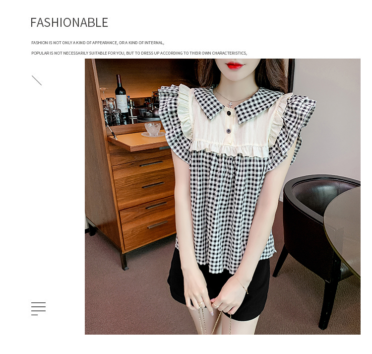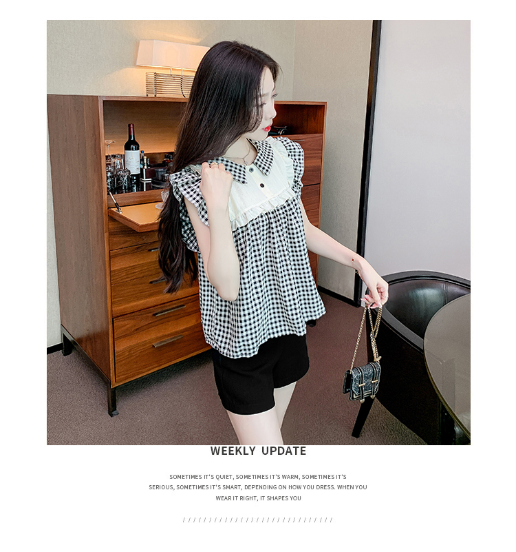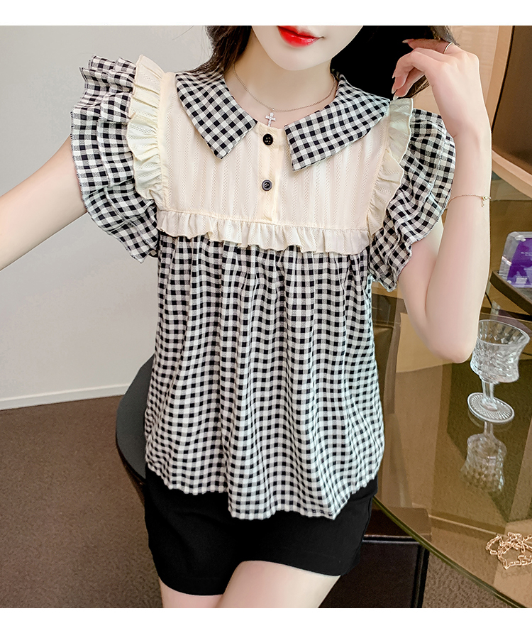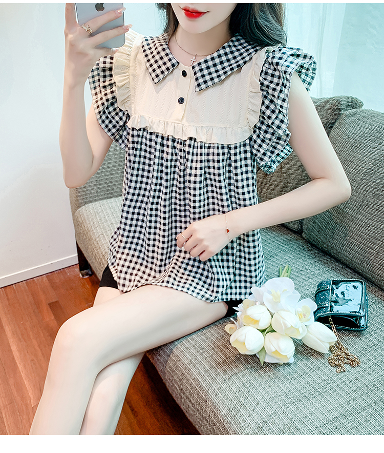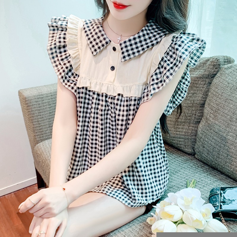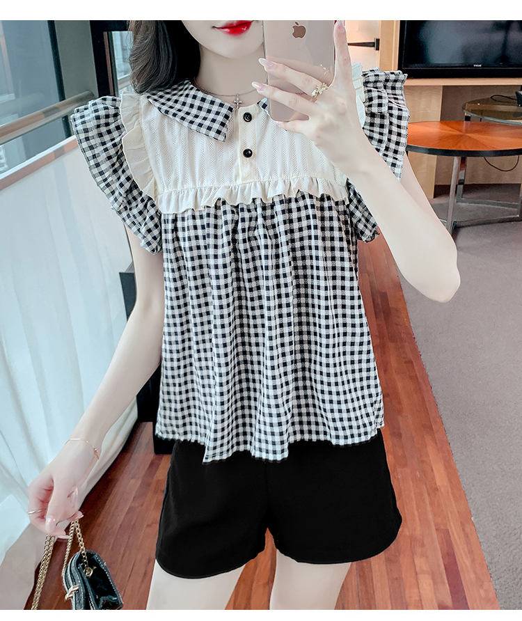 限量特惠|甜感舒適撞色飛飛袖格紋上衣(06H4107)