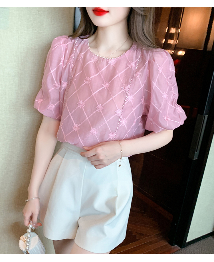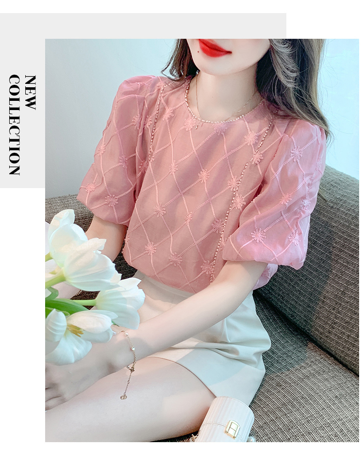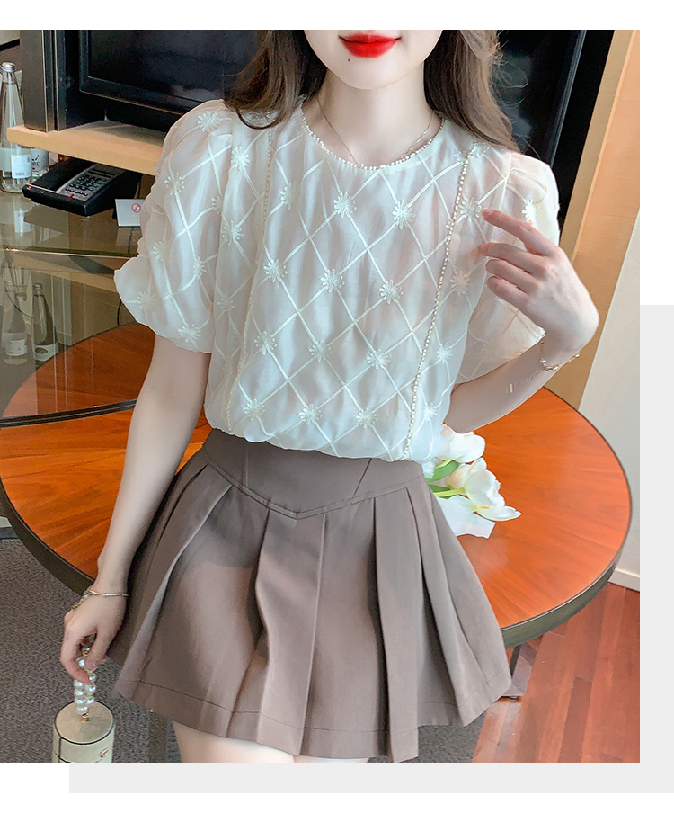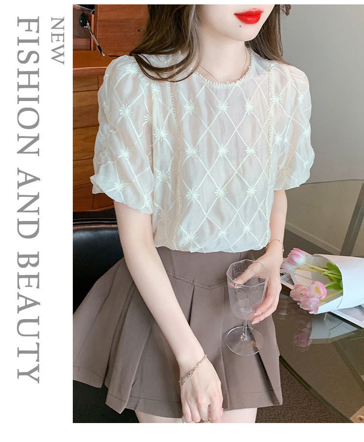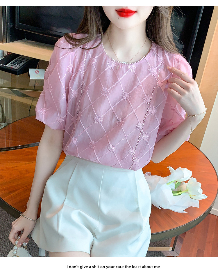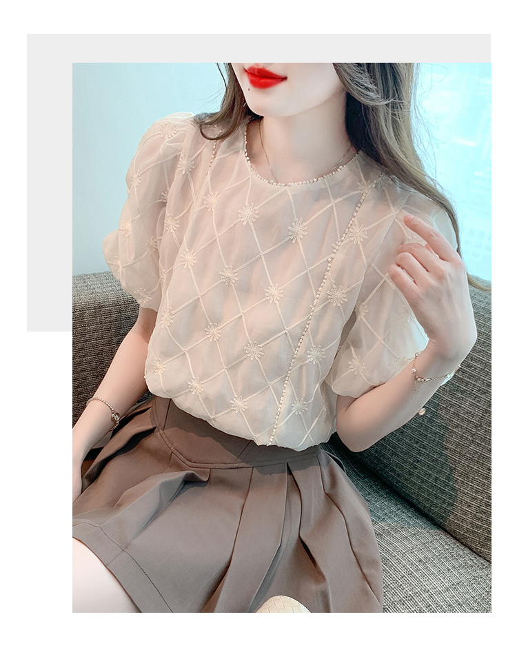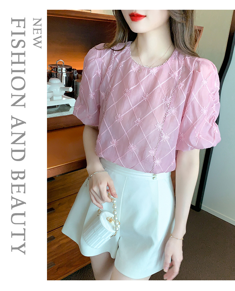 限量特惠|甜感刺繡釘珠雪紡上衣-2色(06H4111)