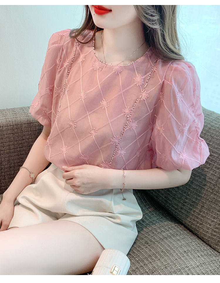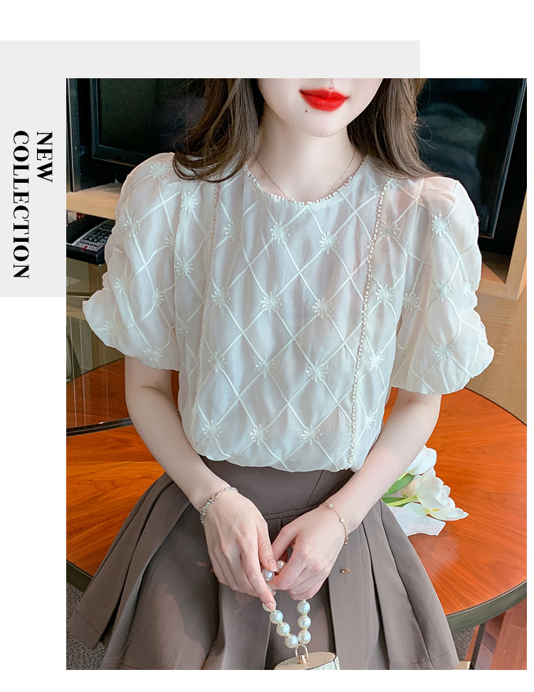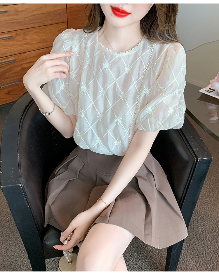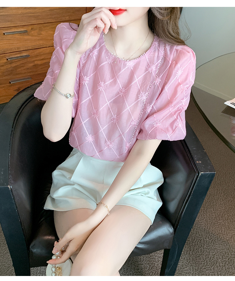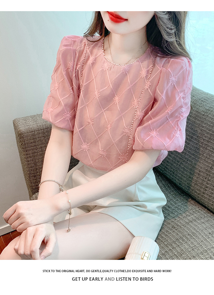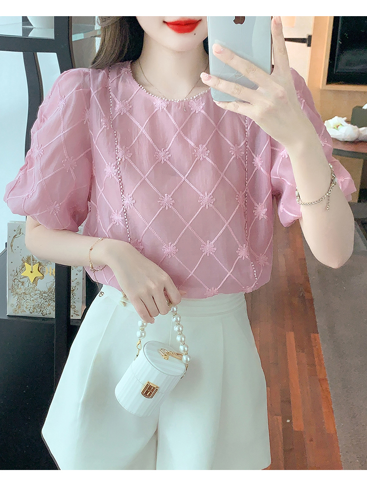 限量特惠|甜感刺繡釘珠雪紡上衣-2色(06H4111)