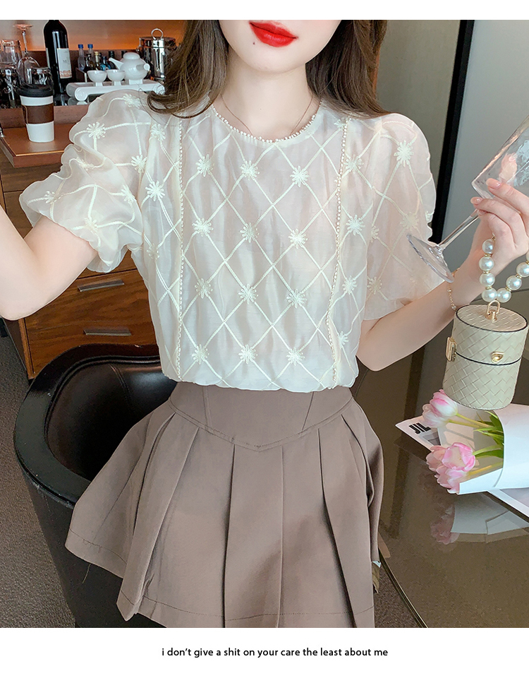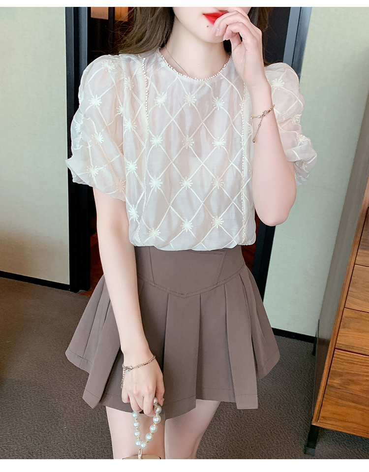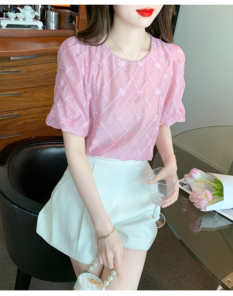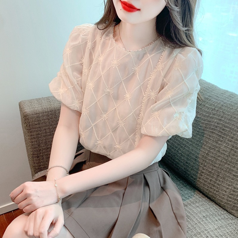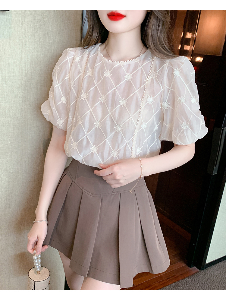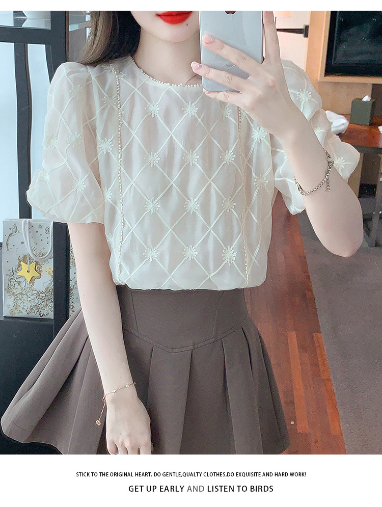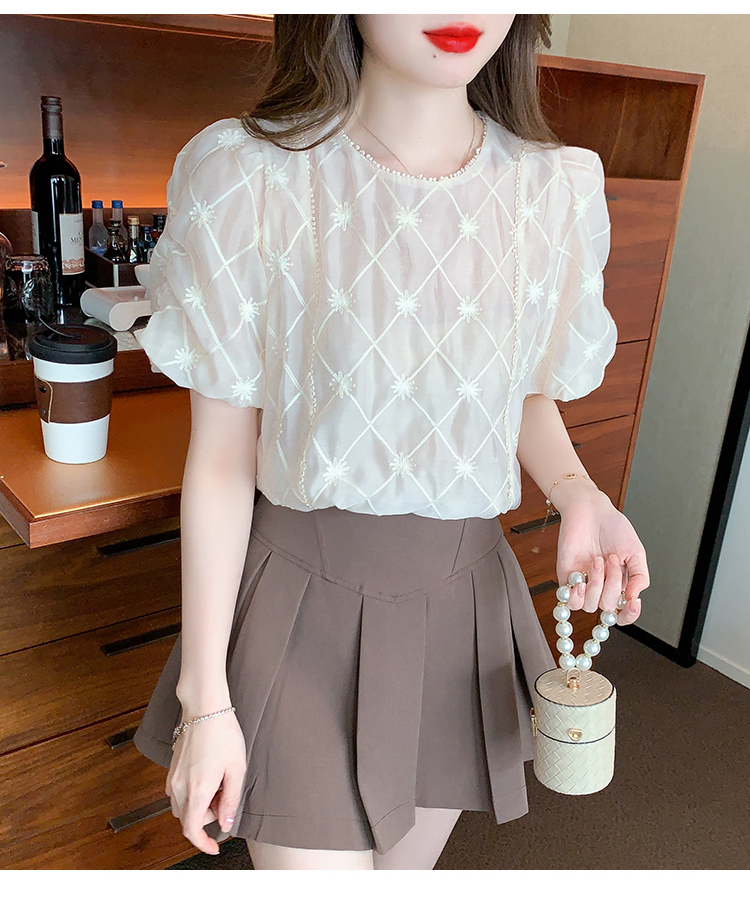 限量特惠|甜感刺繡釘珠雪紡上衣-2色(06H4111)