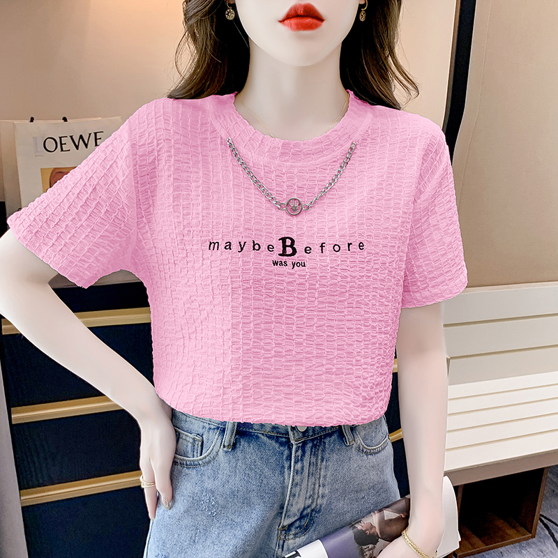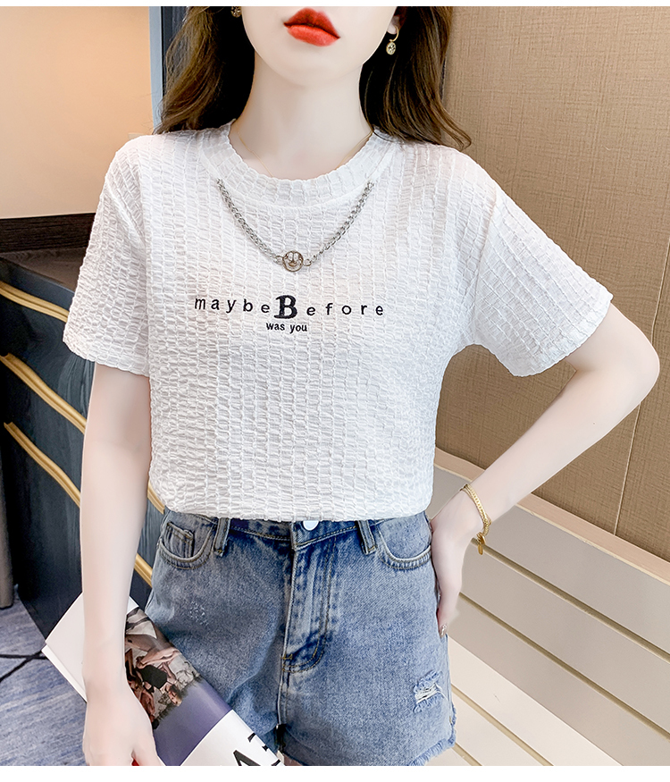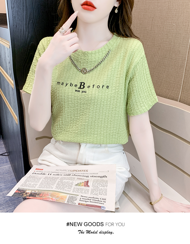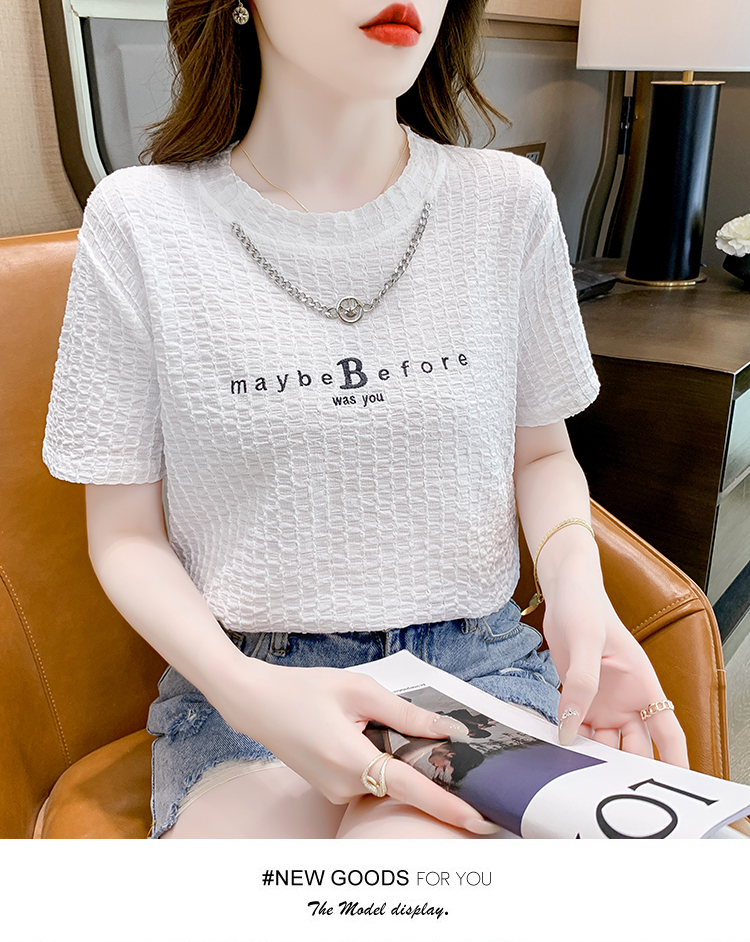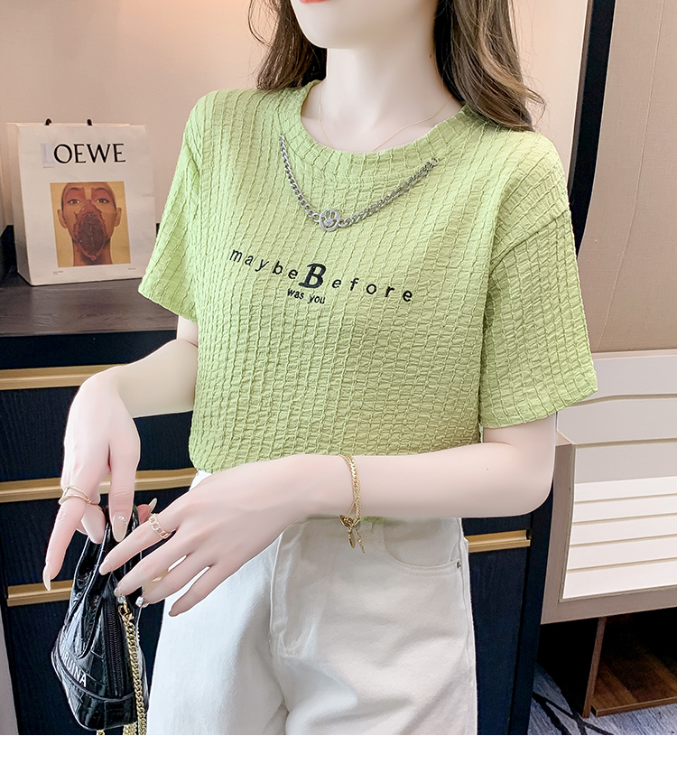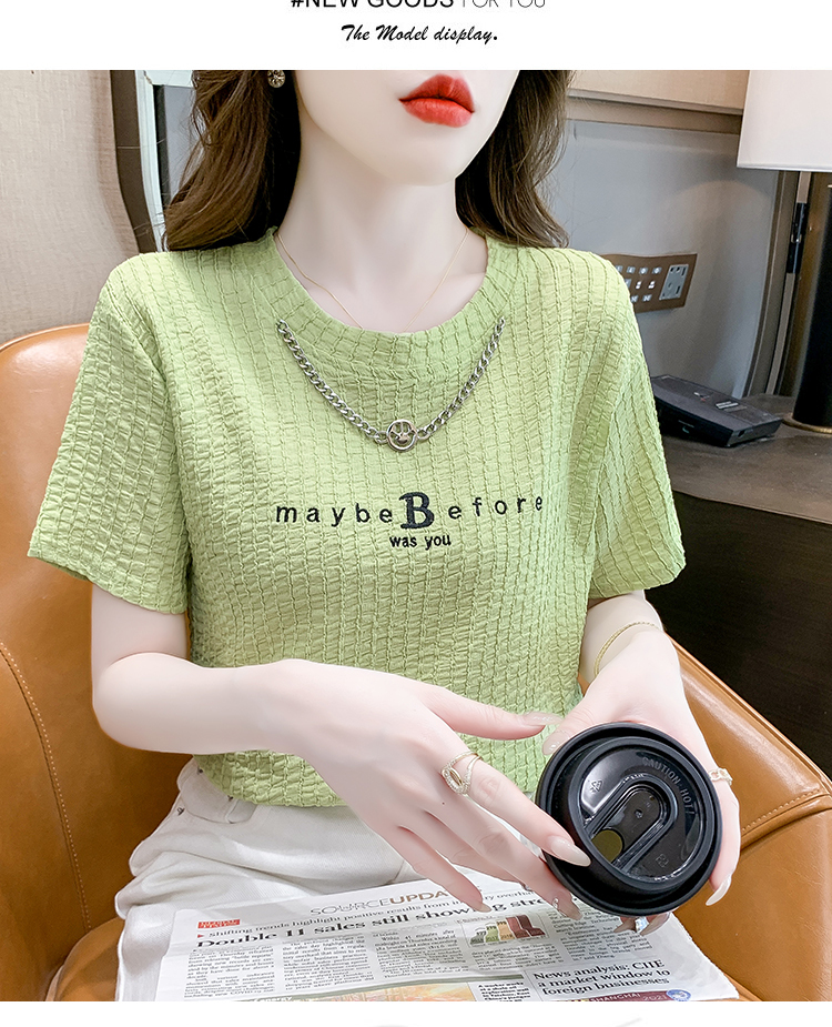 限量特惠|甜感字母印花鍊條造型壓紋T恤-4色(06H4118)