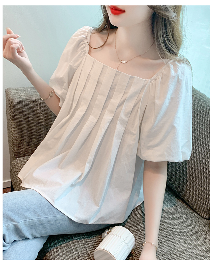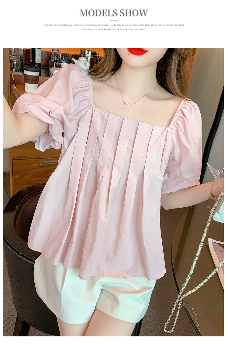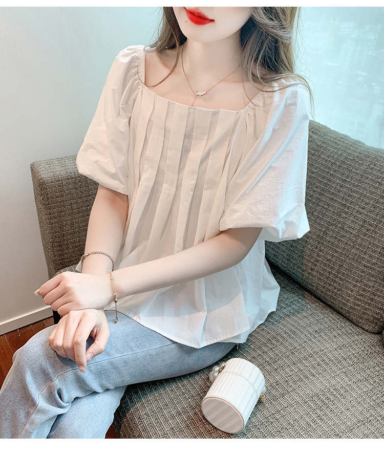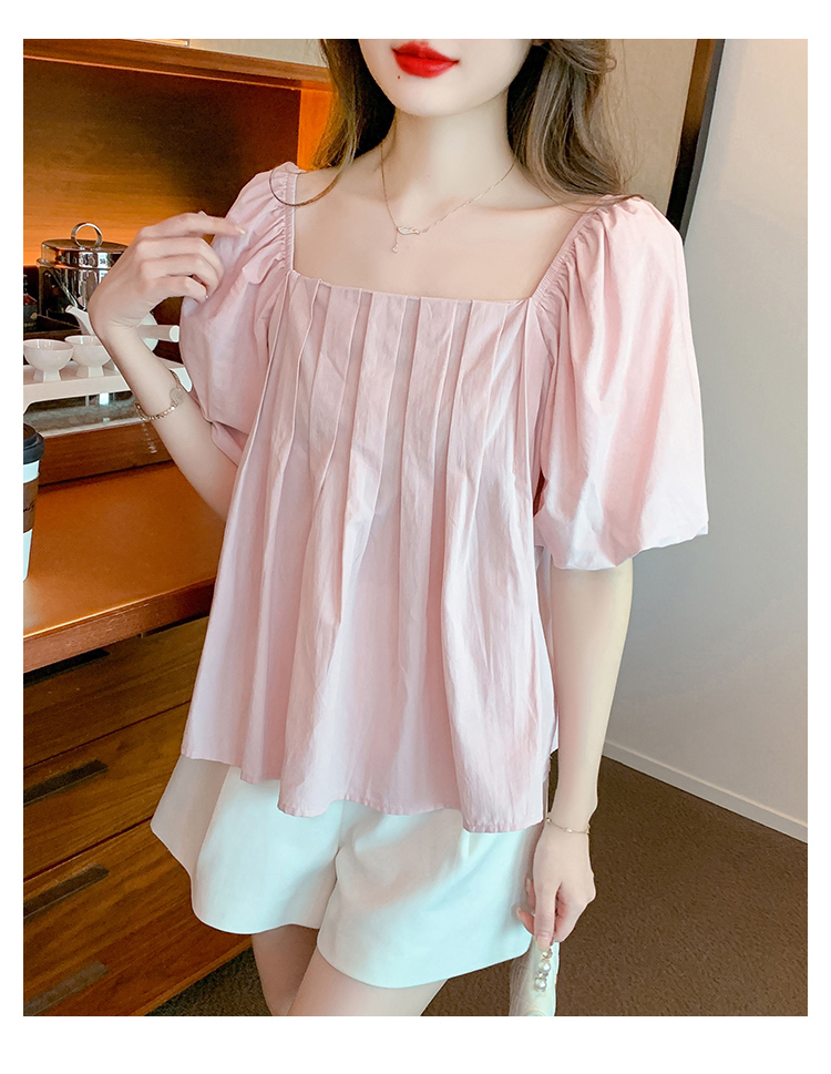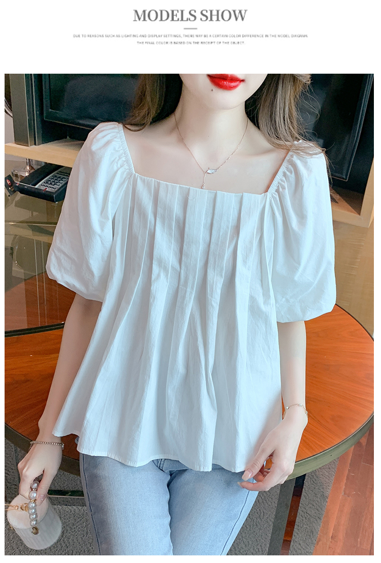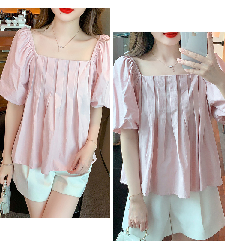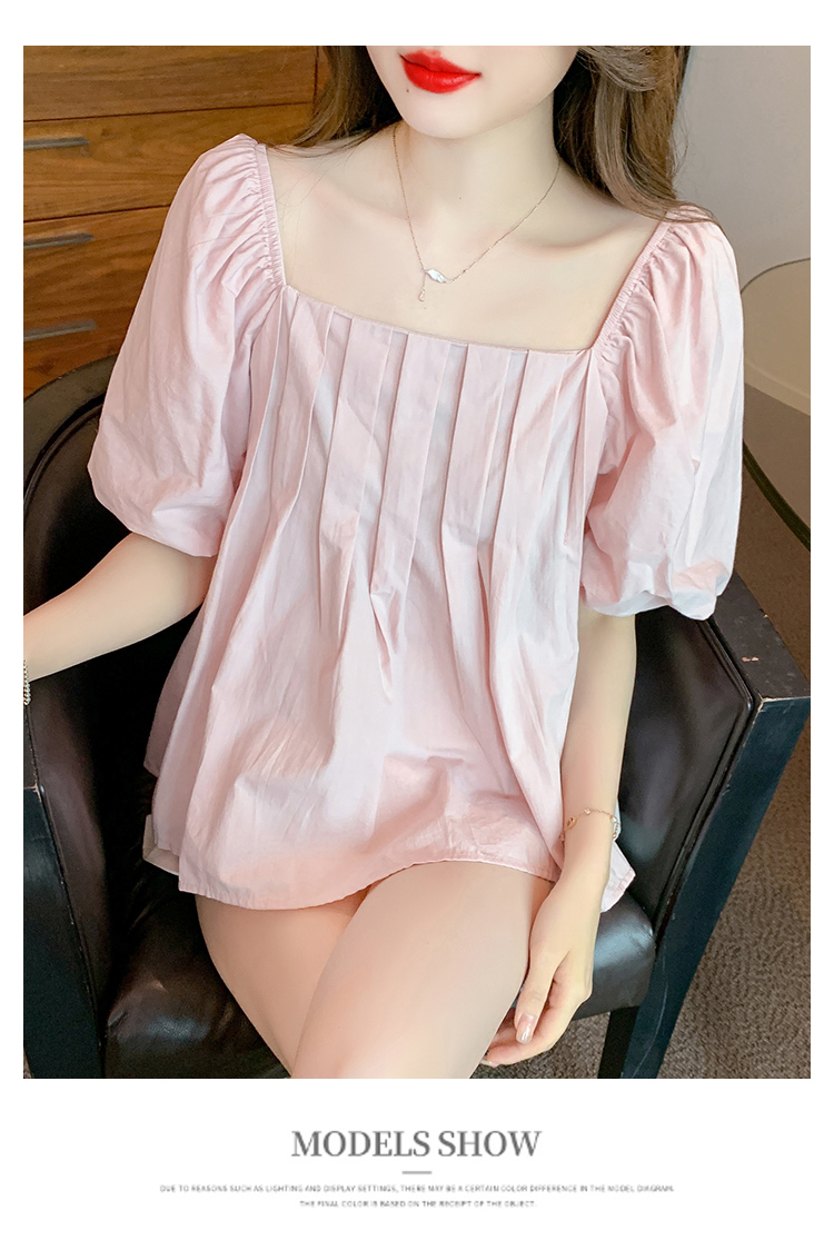 限量特惠|簡約寬鬆抓褶藏肚方領上衣-2色(06H4125)