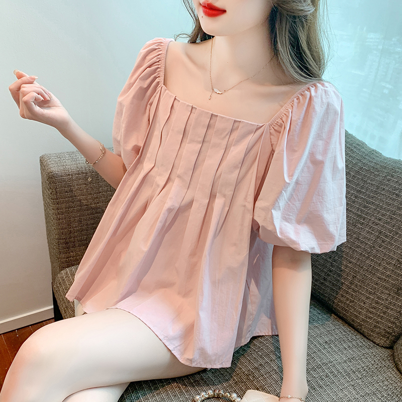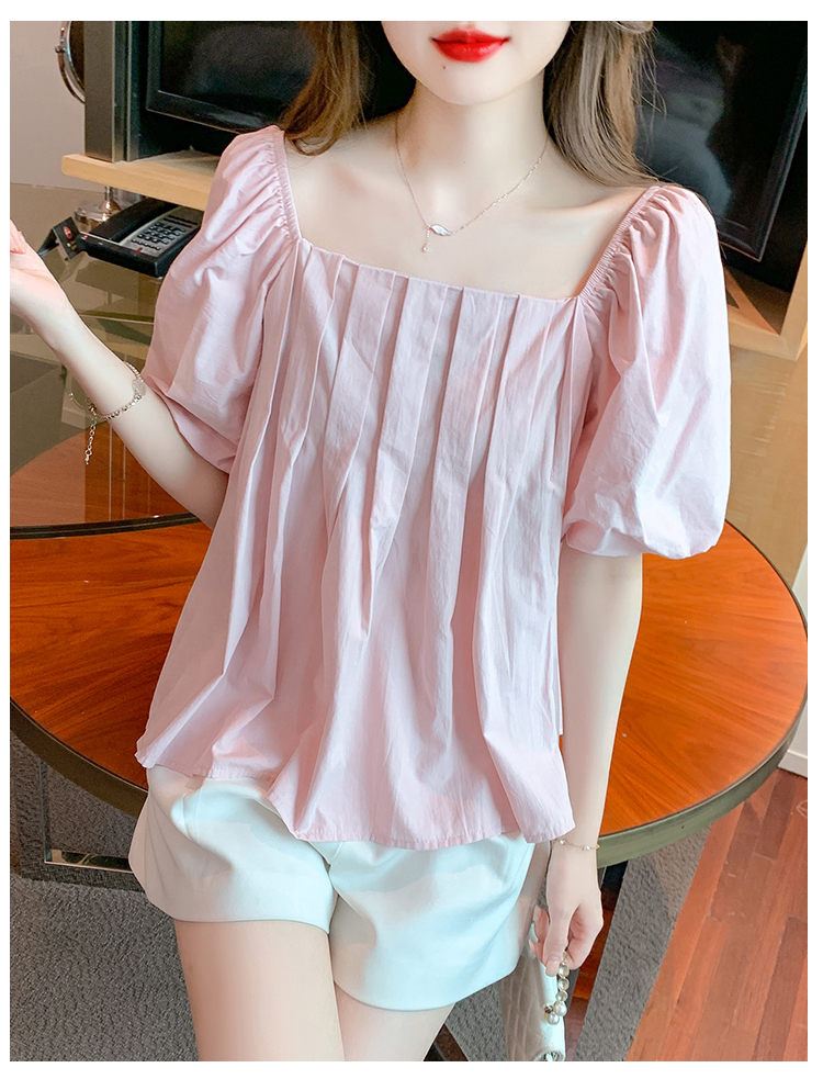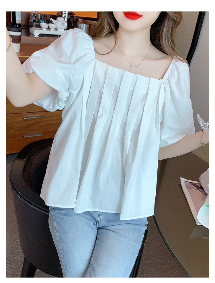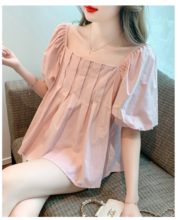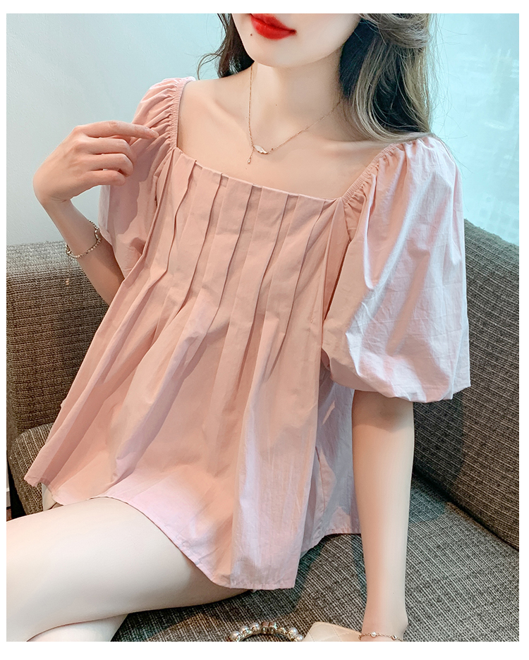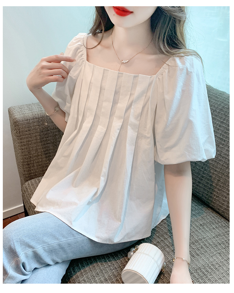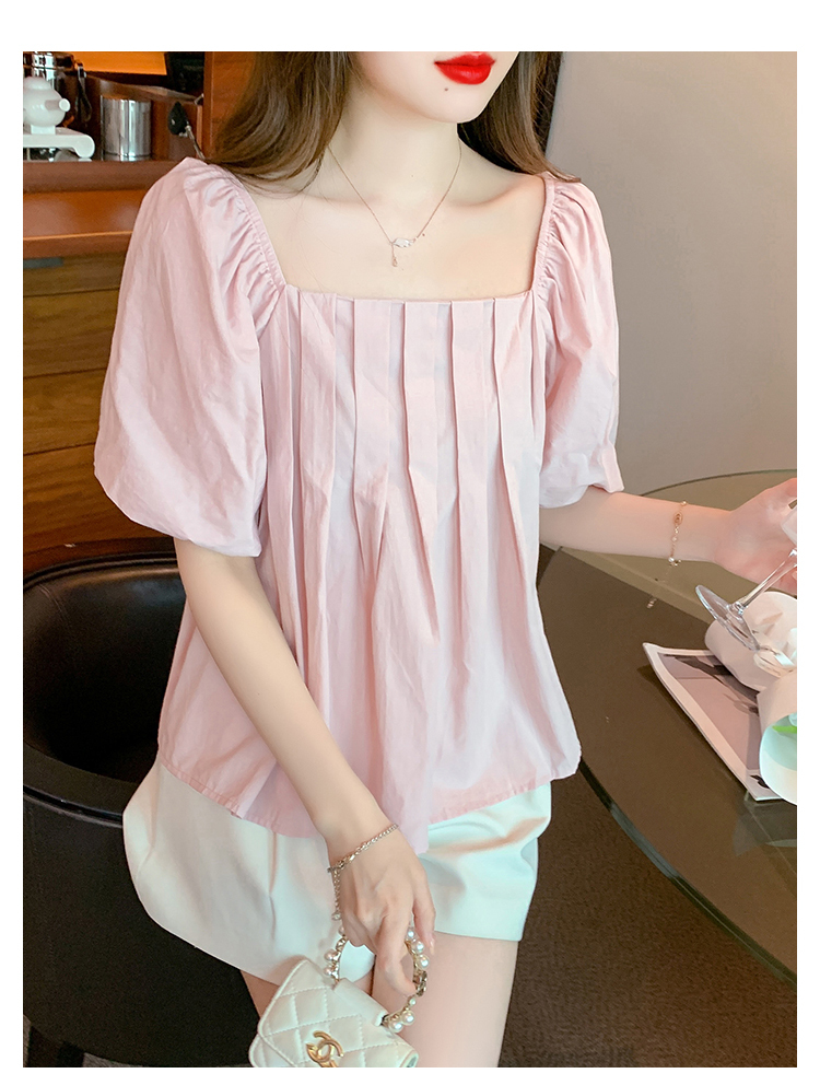 限量特惠|簡約寬鬆抓褶藏肚方領上衣-2色(06H4125)