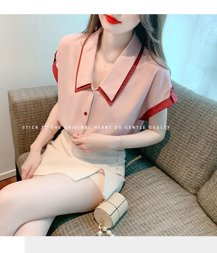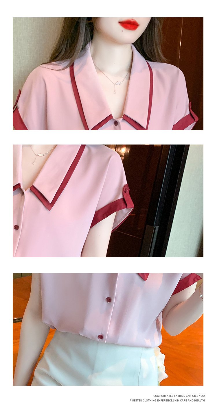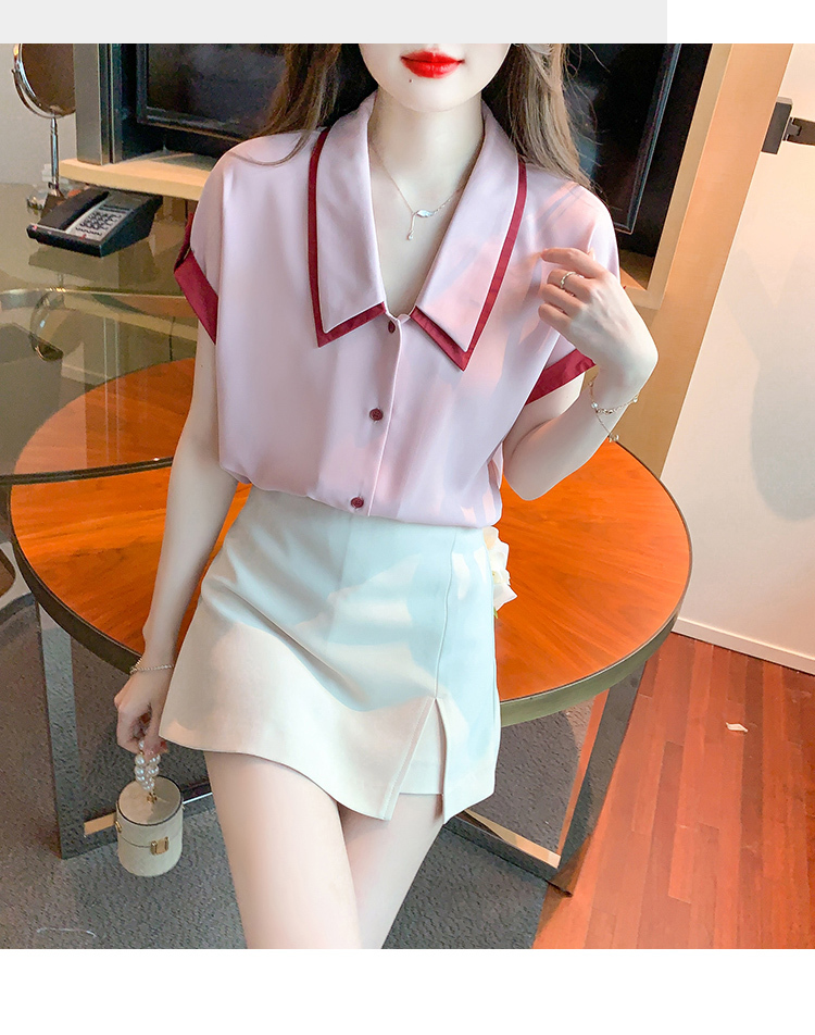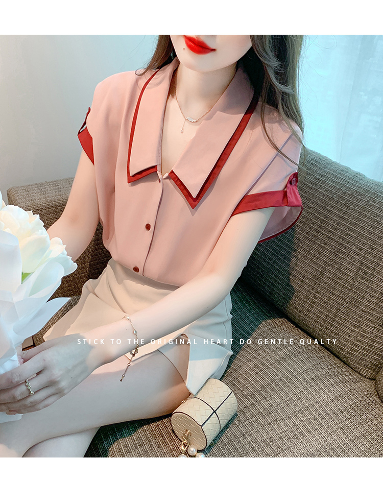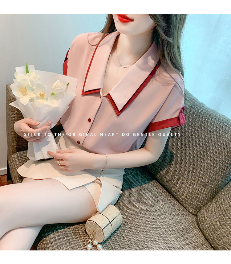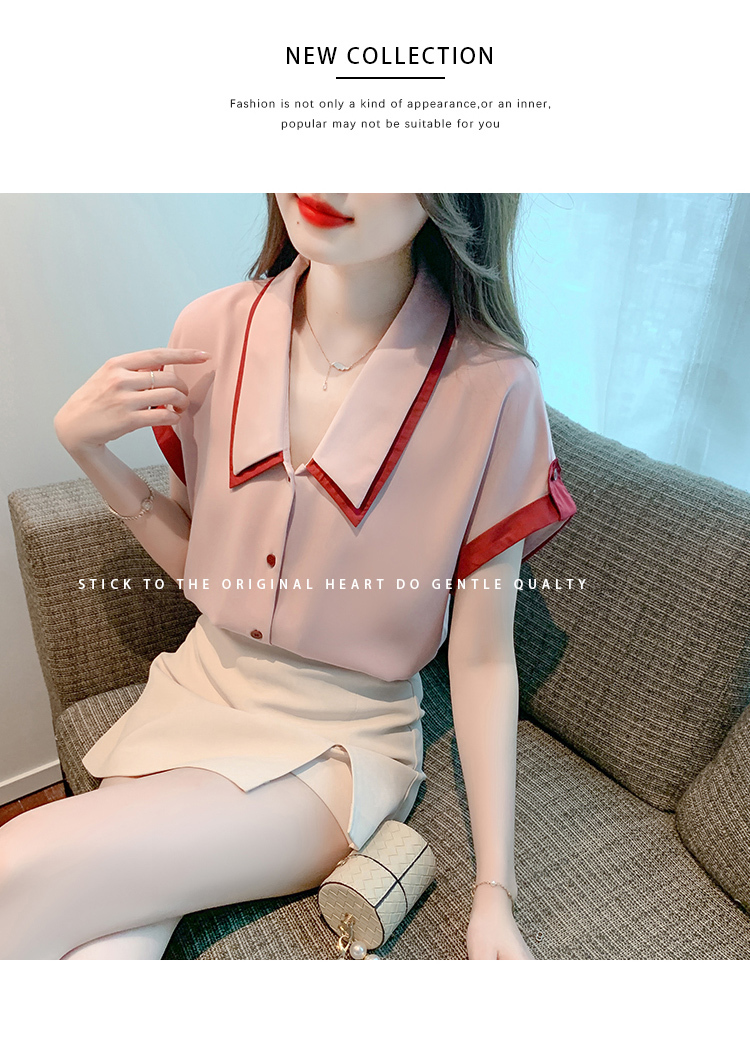 限量特惠|知性撞色捲邊袖緞面雪紡衫(06H4133)