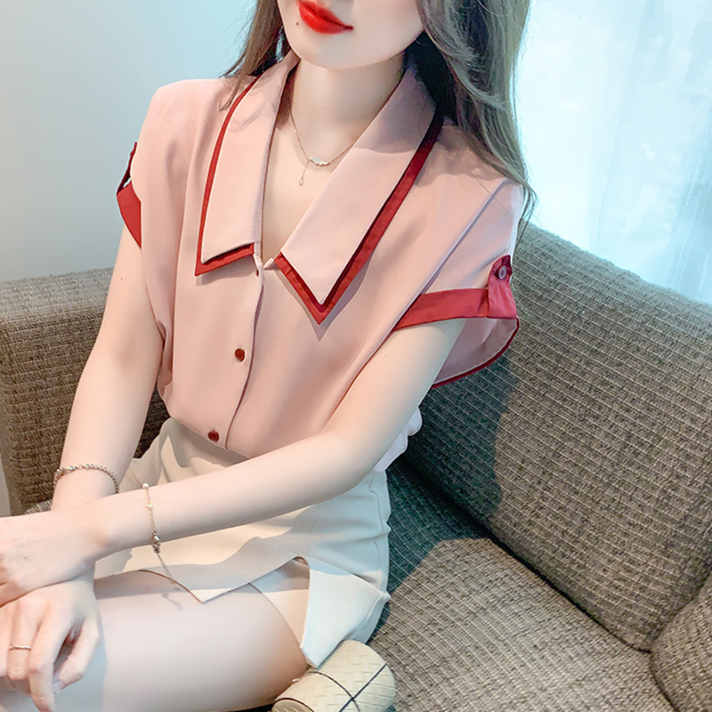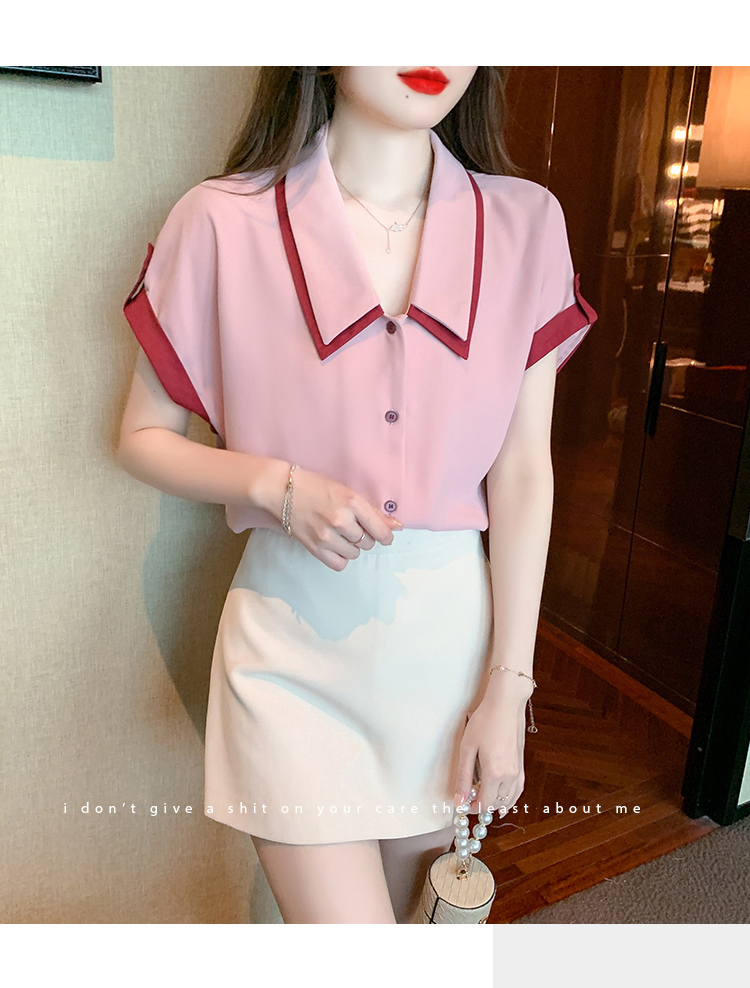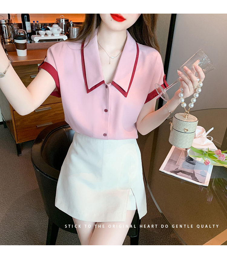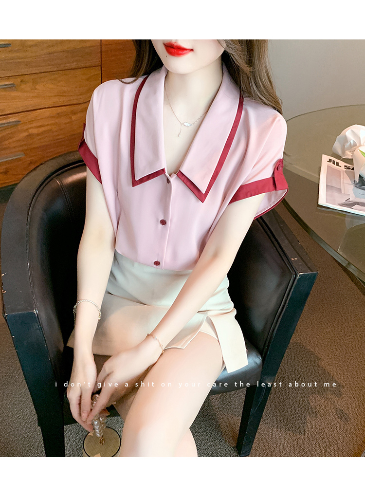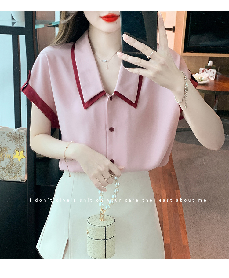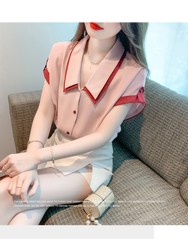 限量特惠|知性撞色捲邊袖緞面雪紡衫(06H4133)