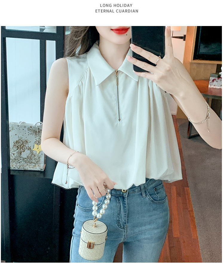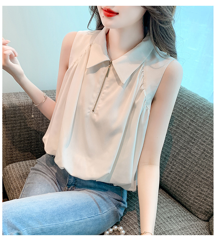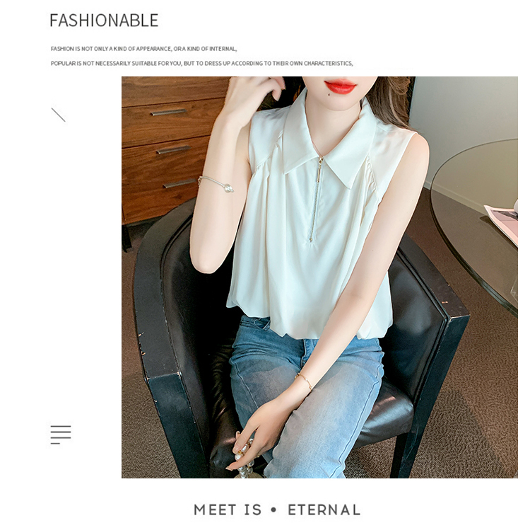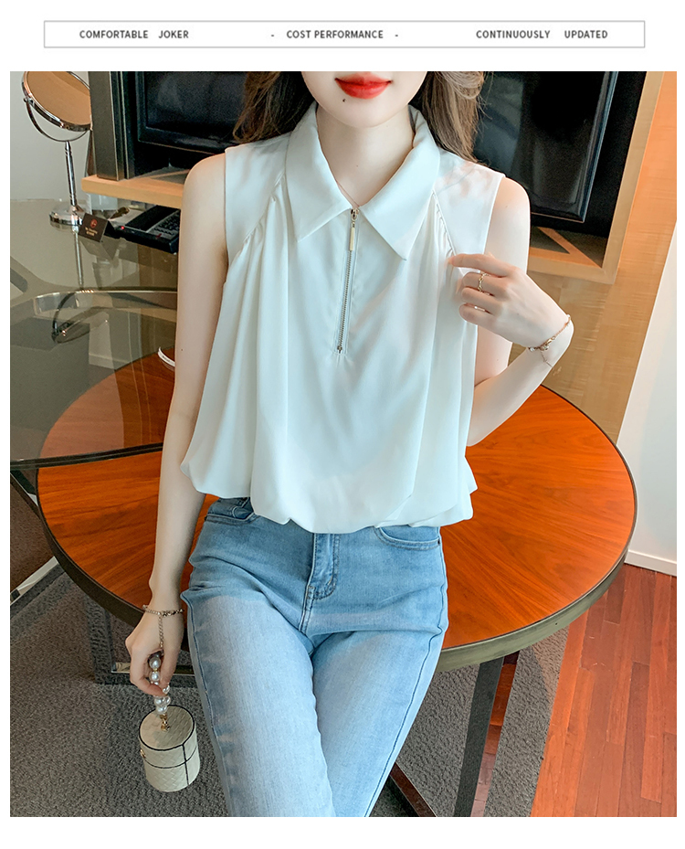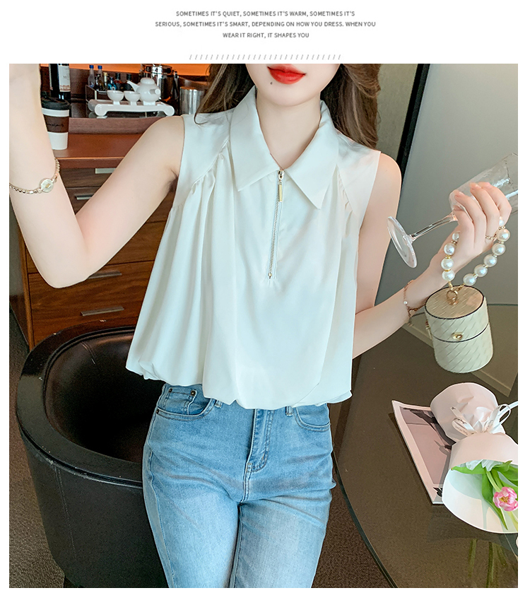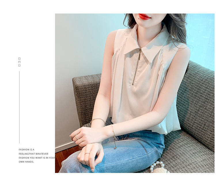 限量特惠|知性翻領拉鍊造型雪紡衫(06H4140)