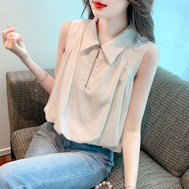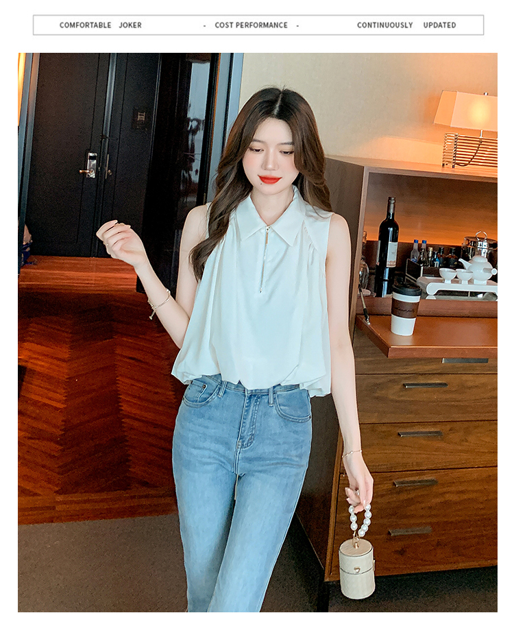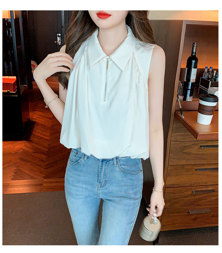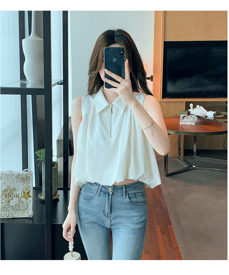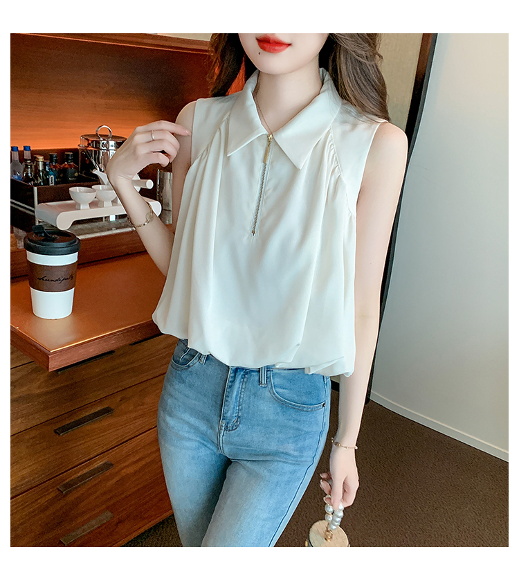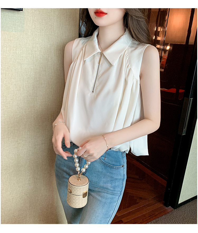 限量特惠|知性翻領拉鍊造型雪紡衫(06H4140)