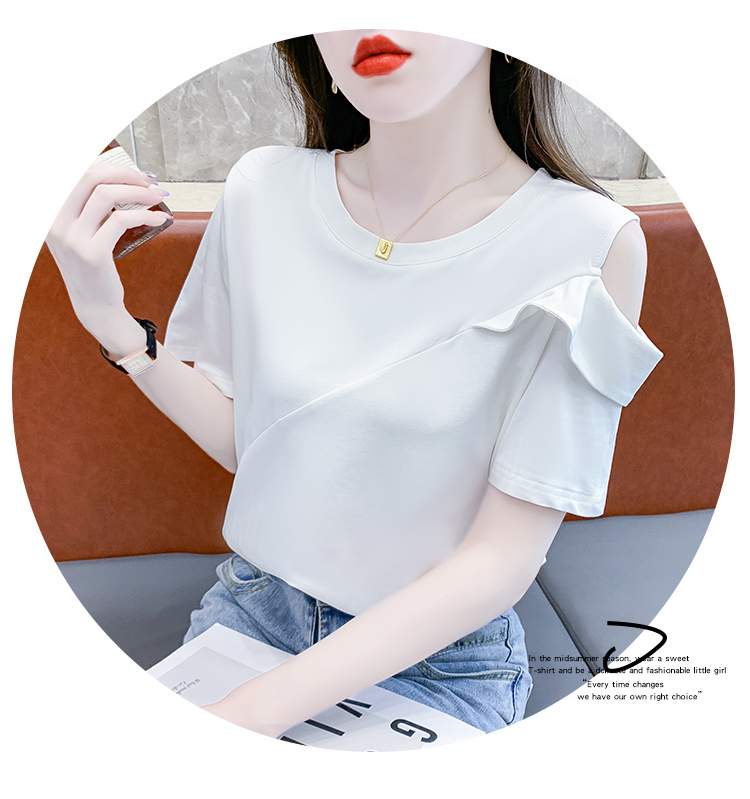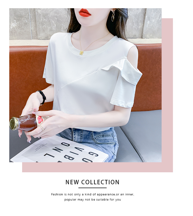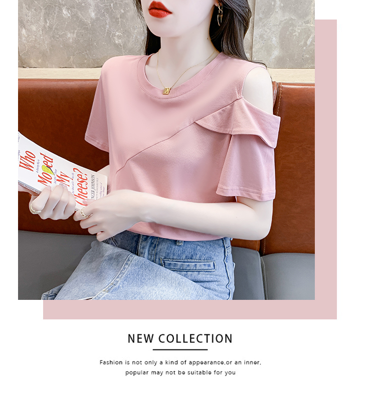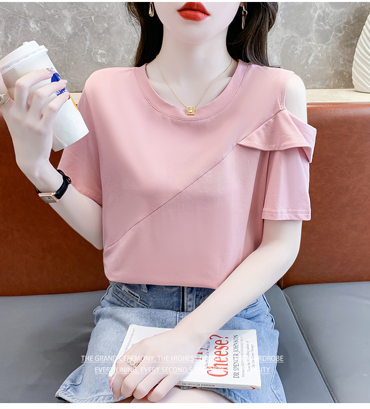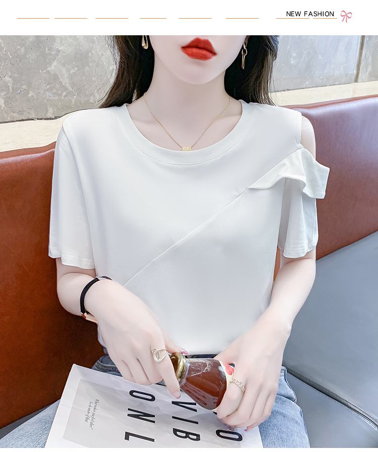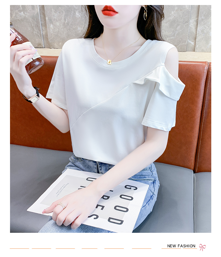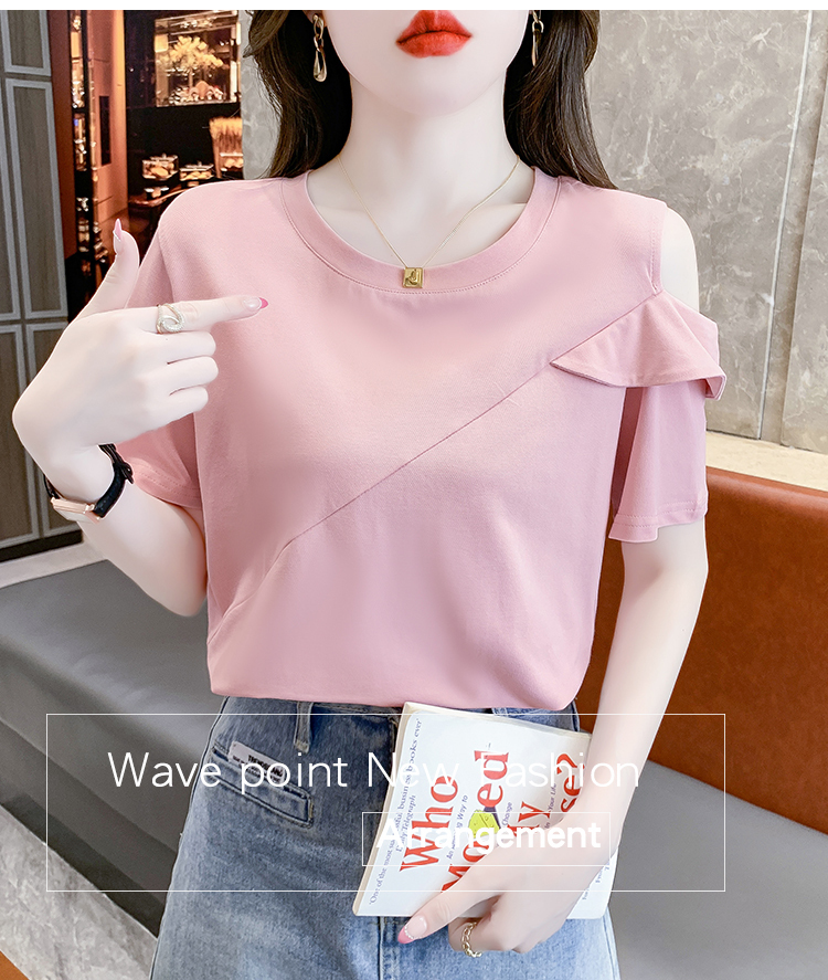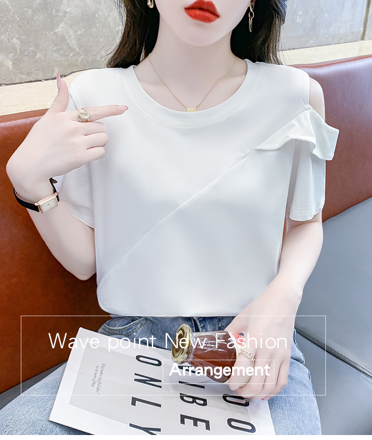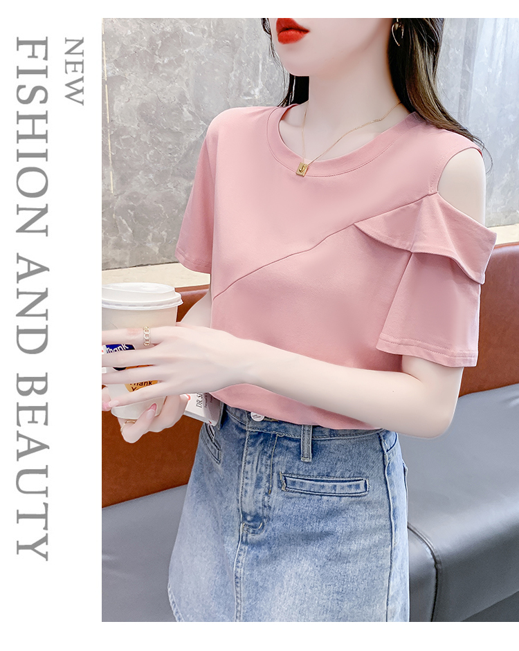 限量特惠|簡約舒適拼接荷葉邊露肩T恤-2色(06H4142)