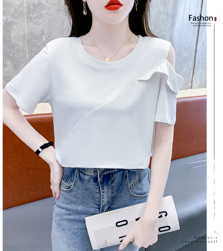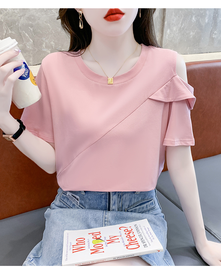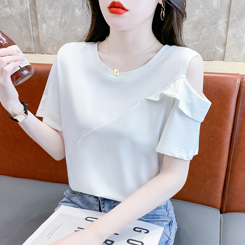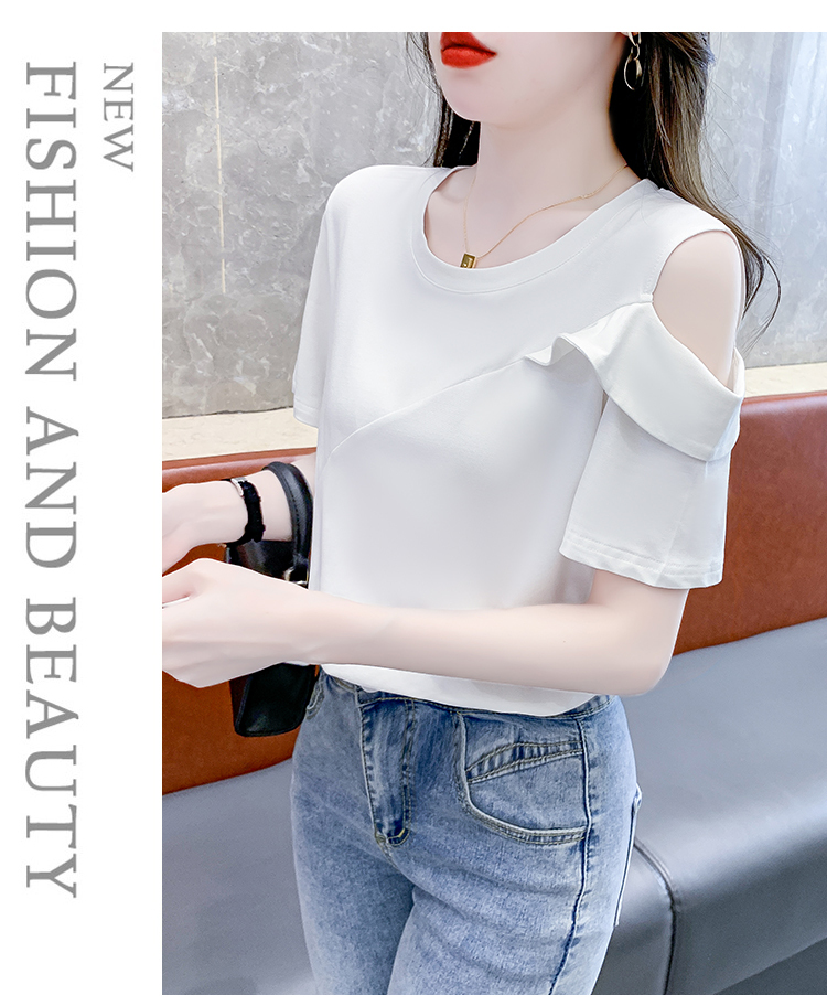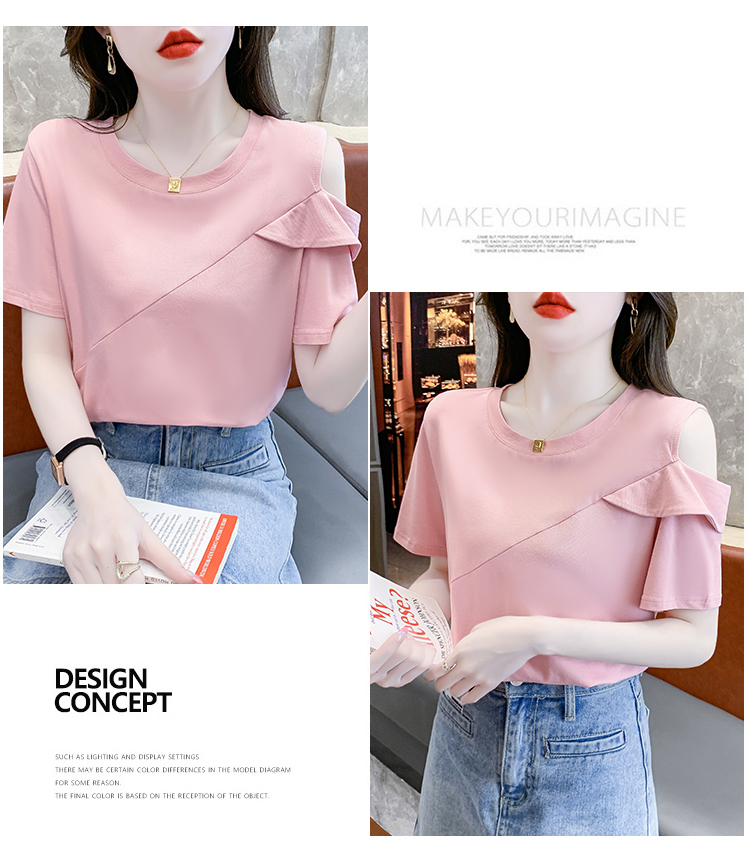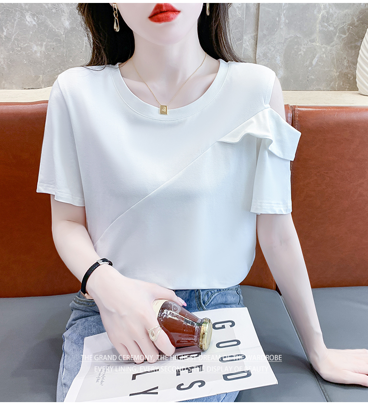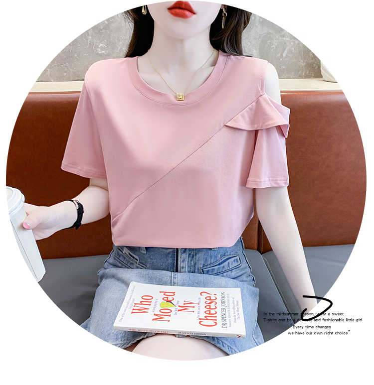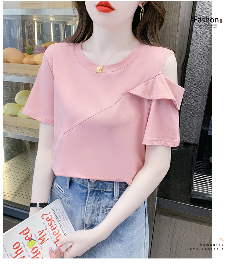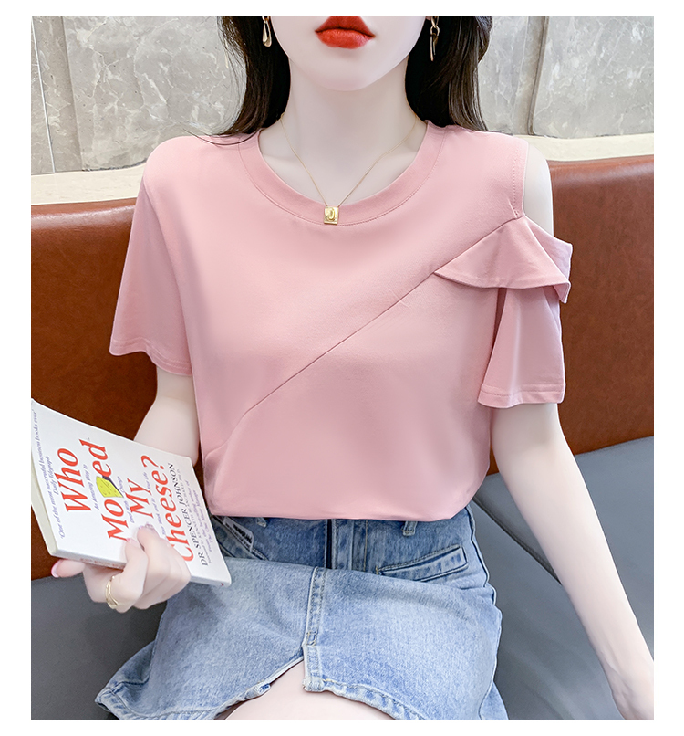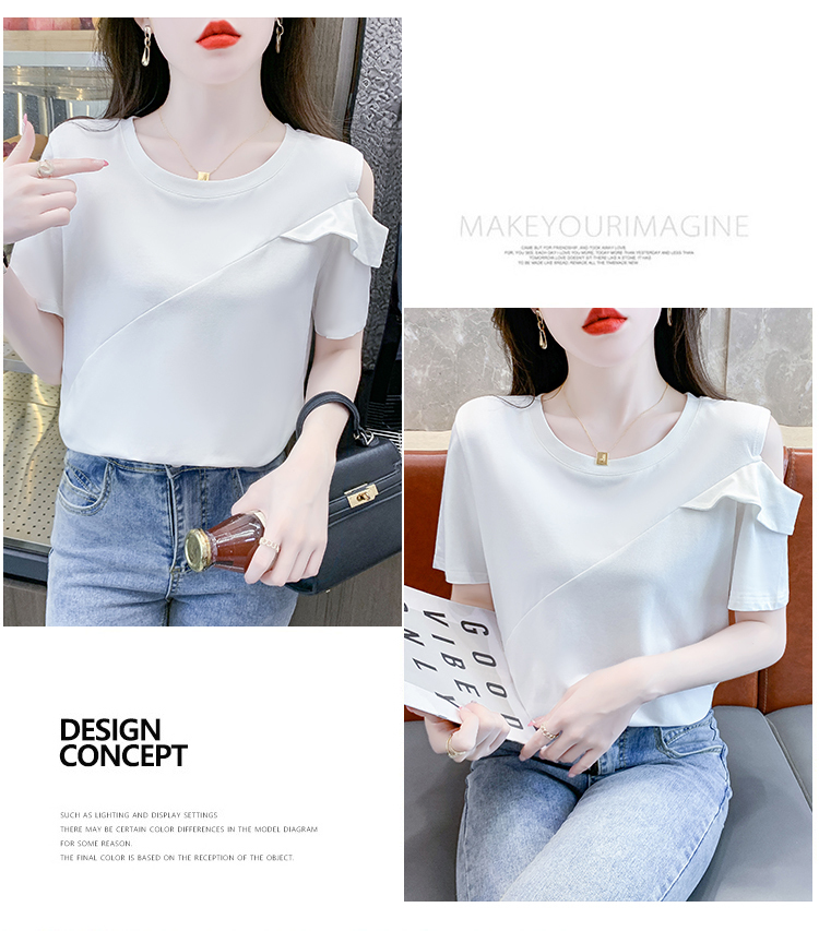 限量特惠|簡約舒適拼接荷葉邊露肩T恤-2色(06H4142)