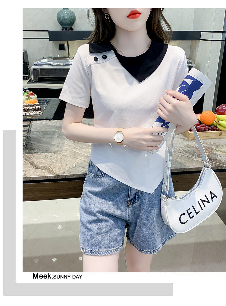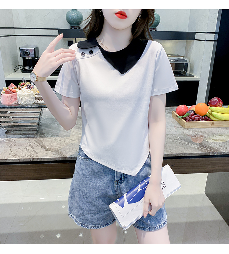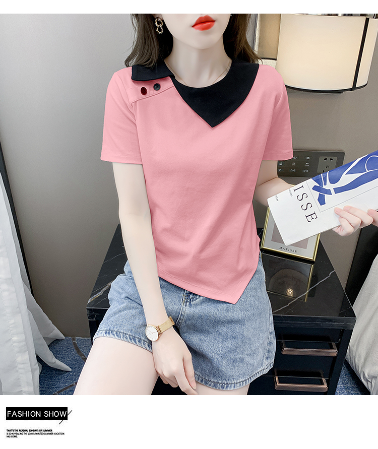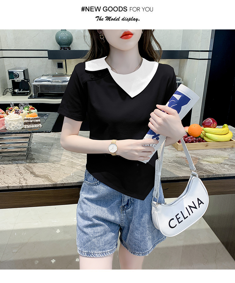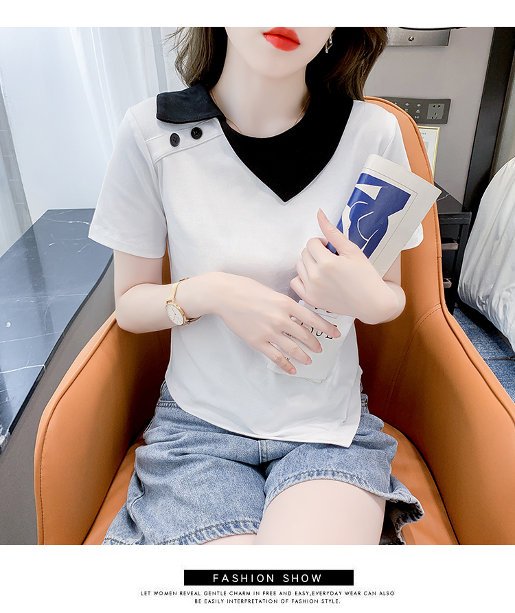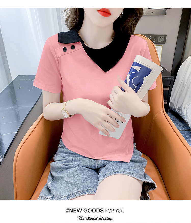 限量特惠|簡約舒適撞色拼接翻領假兩件式T恤-3色(06H4145)