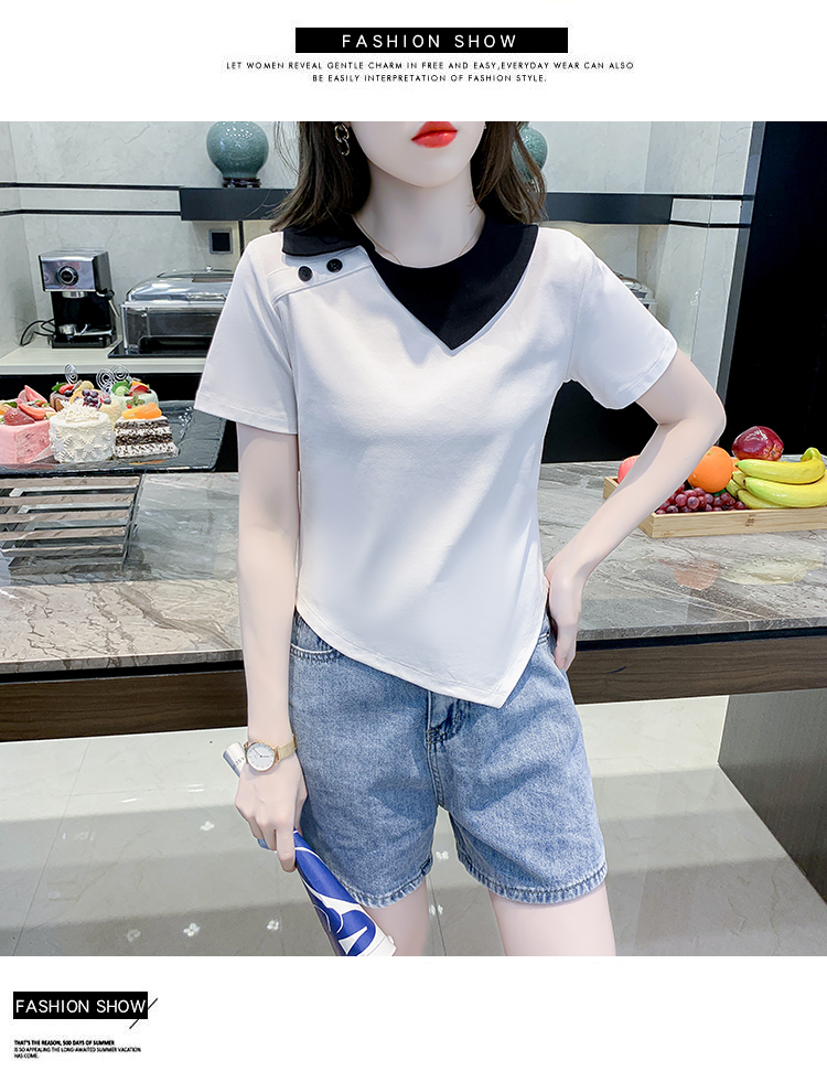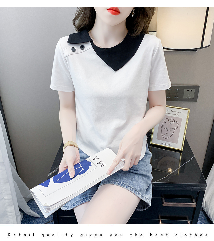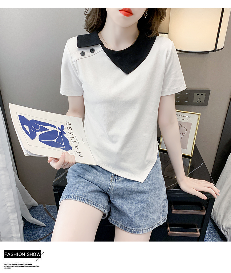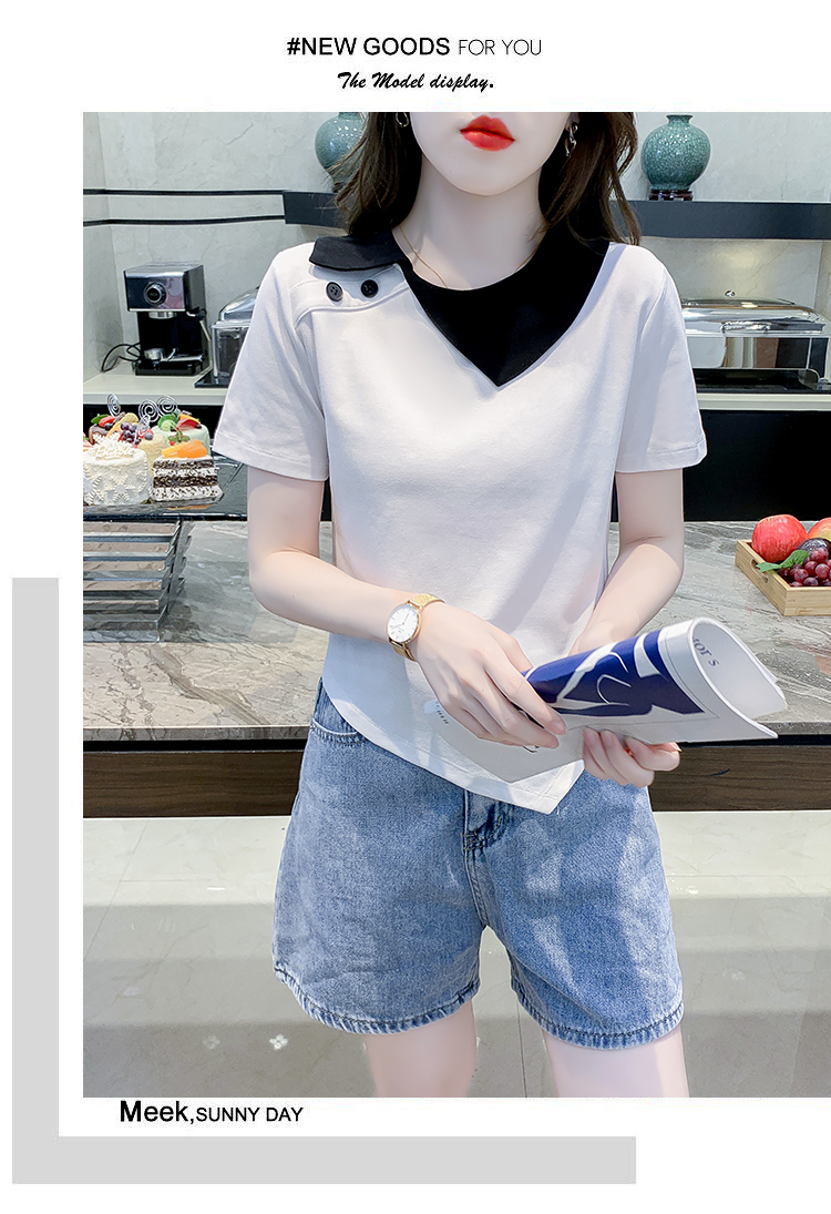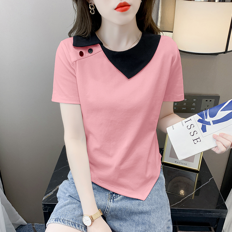 限量特惠|簡約舒適撞色拼接翻領假兩件式T恤-3色(06H4145)