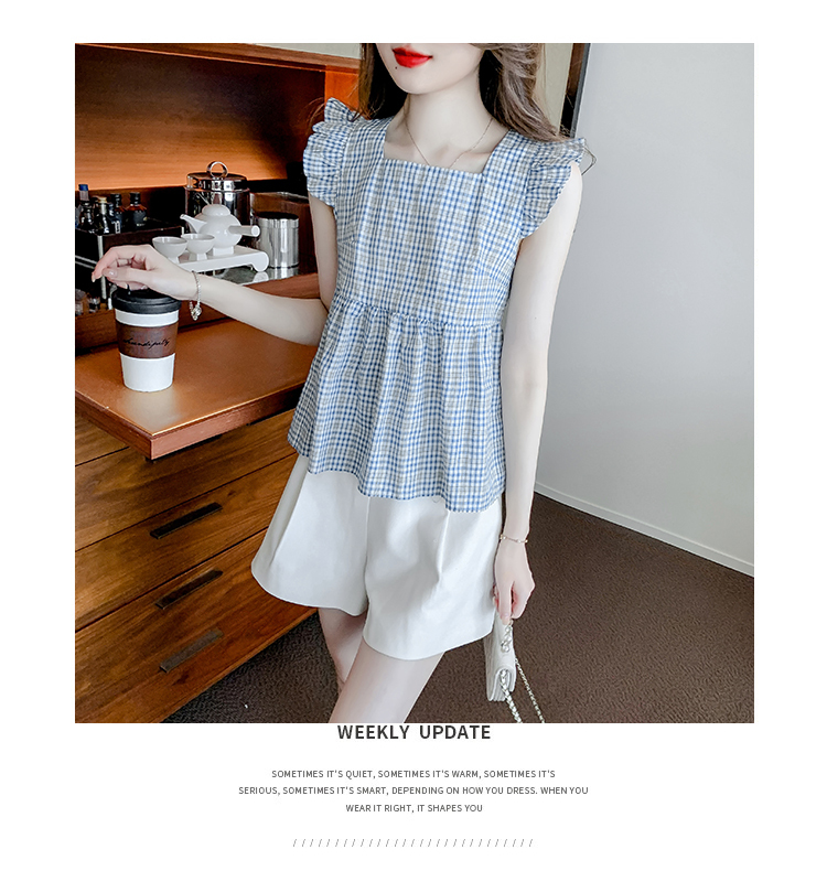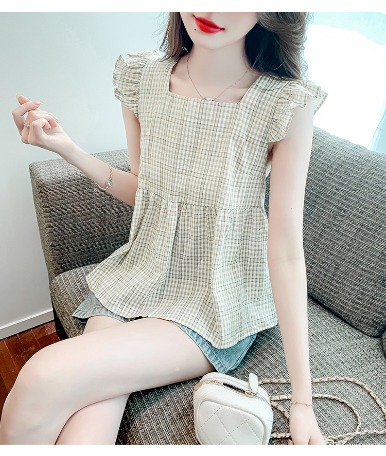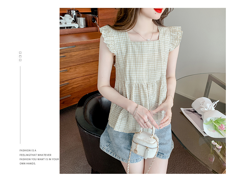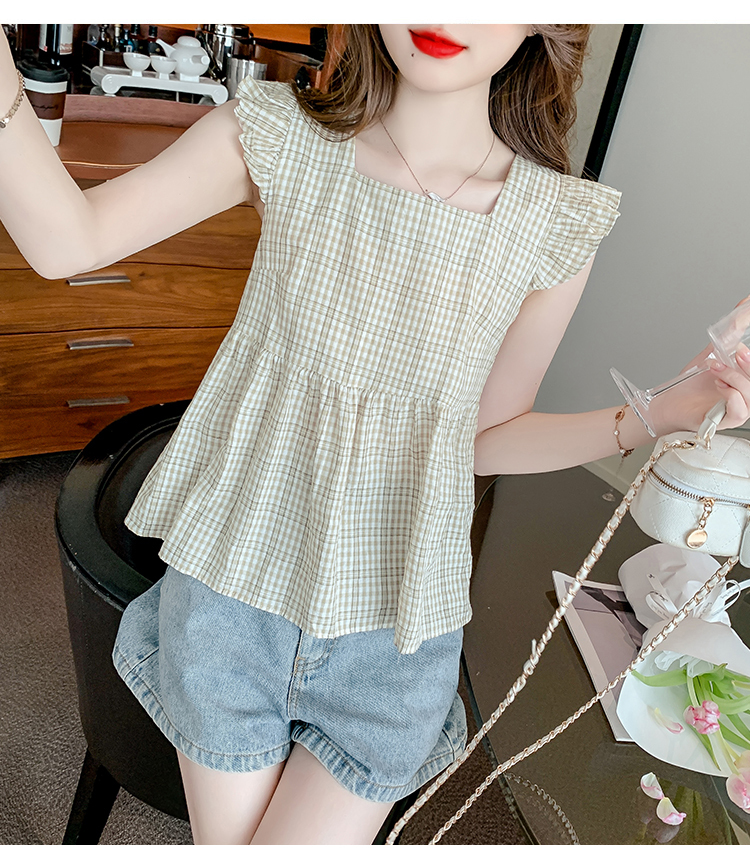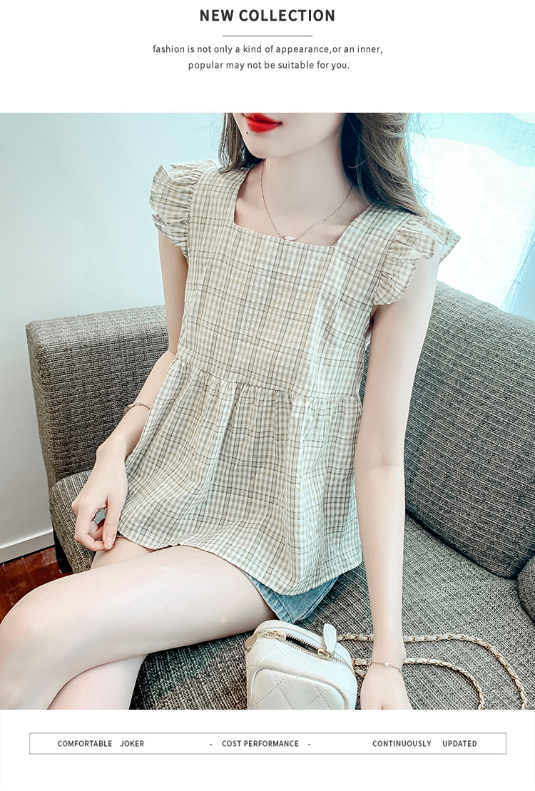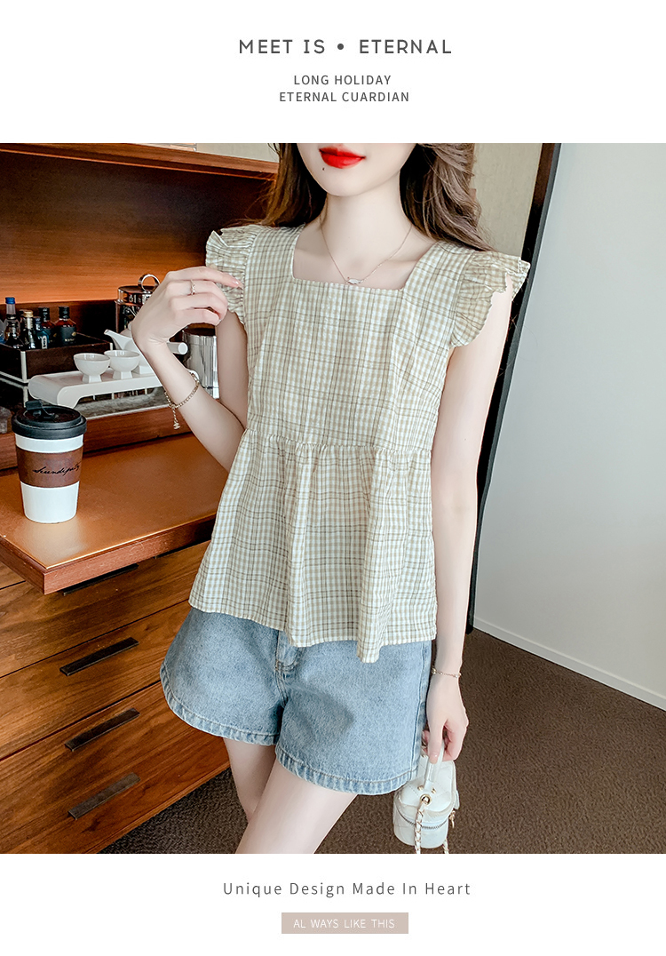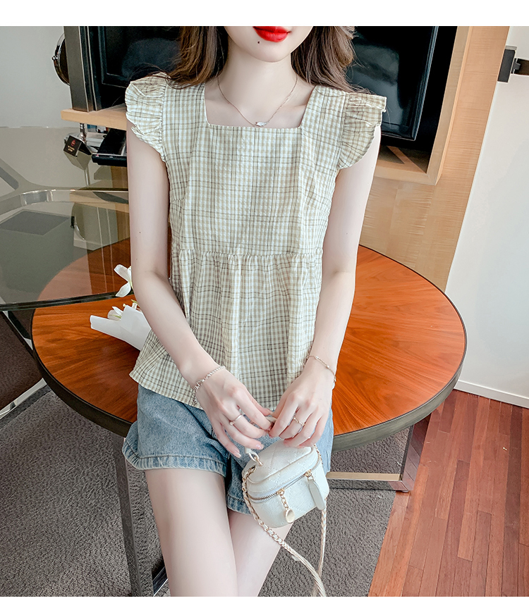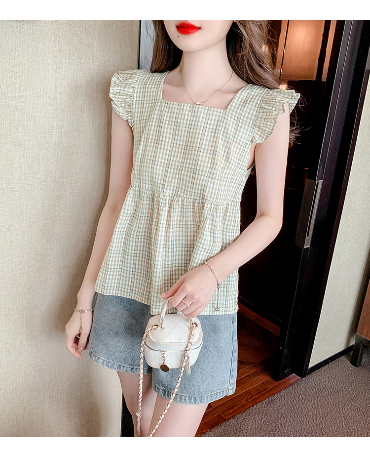 限量特惠|清甜藏肚格紋飛飛袖上衣-2色(06H4148)
