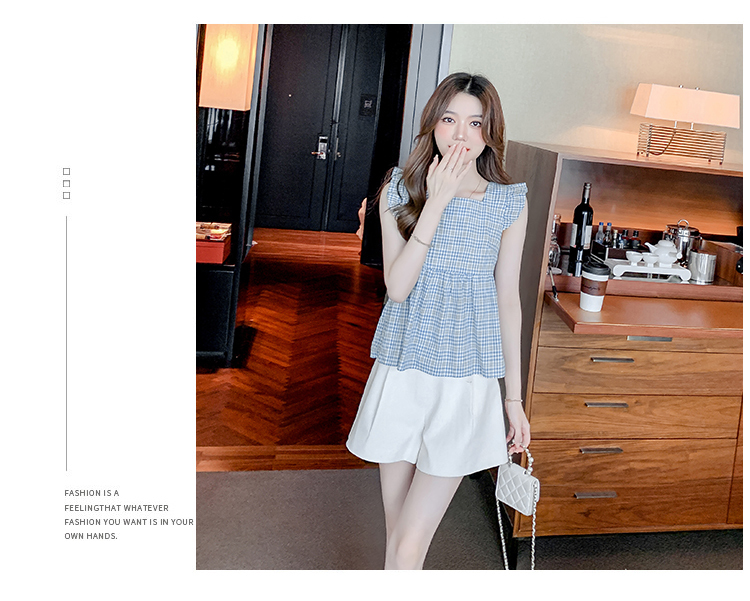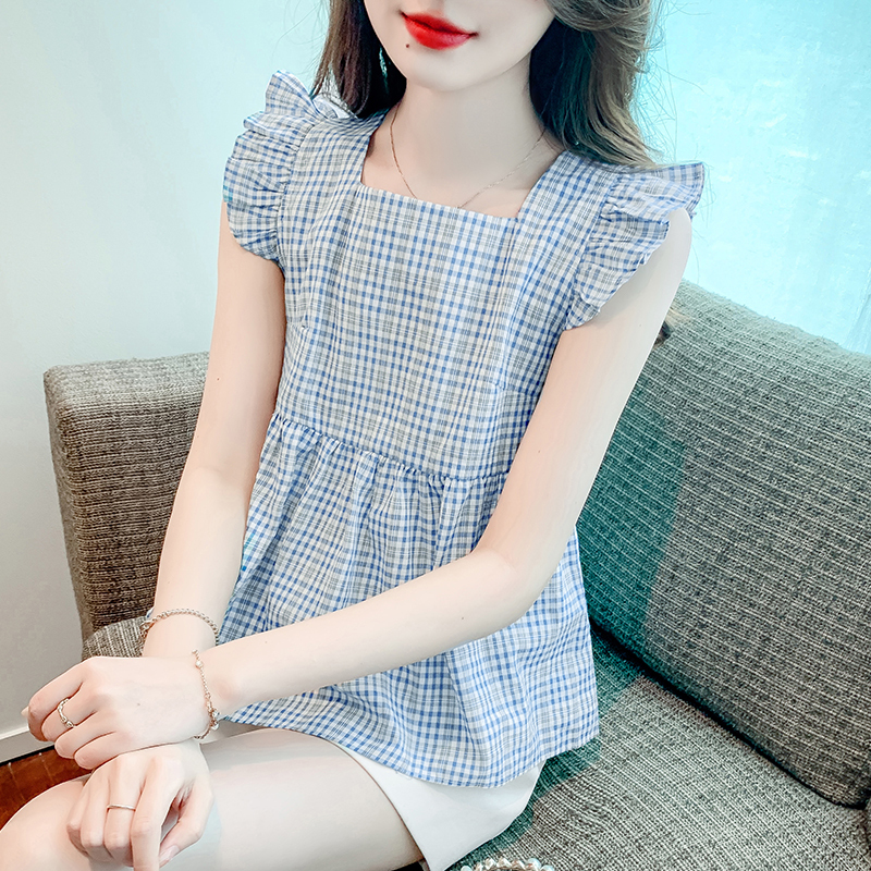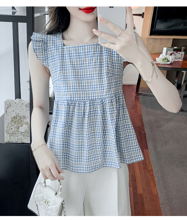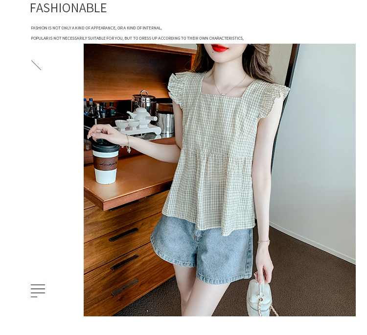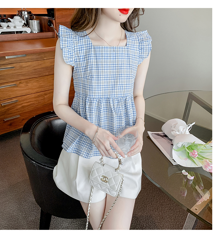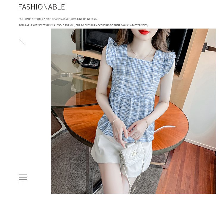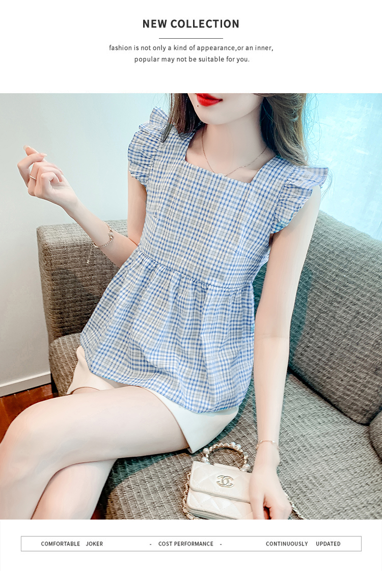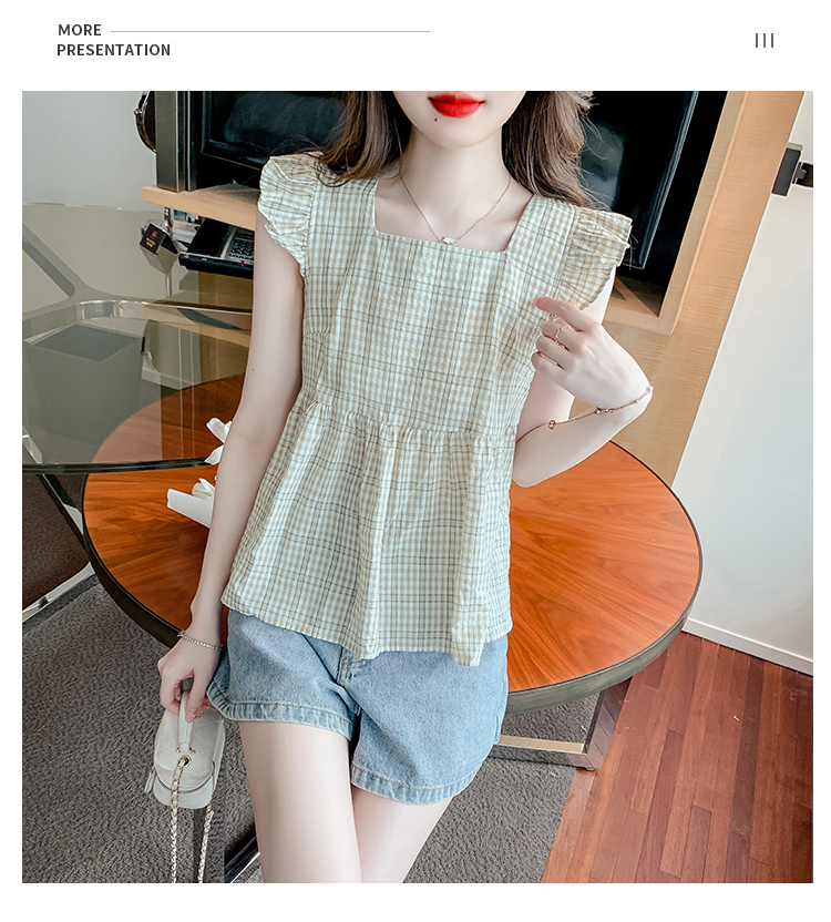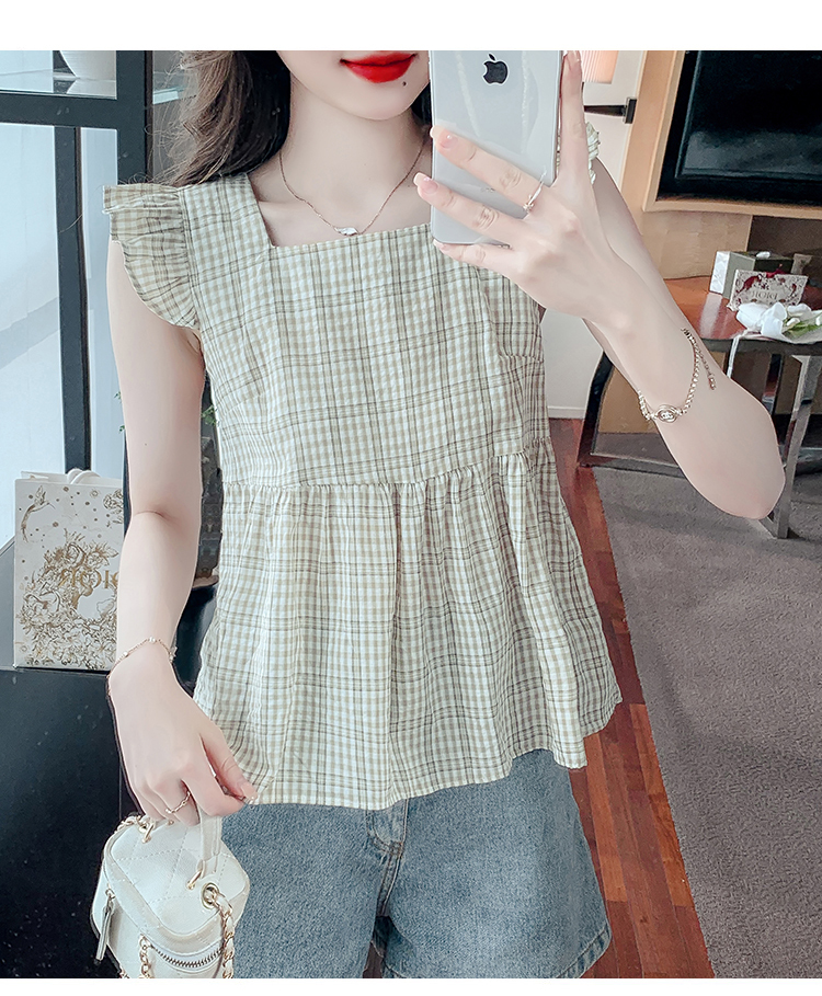 限量特惠|清甜藏肚格紋飛飛袖上衣-2色(06H4148)