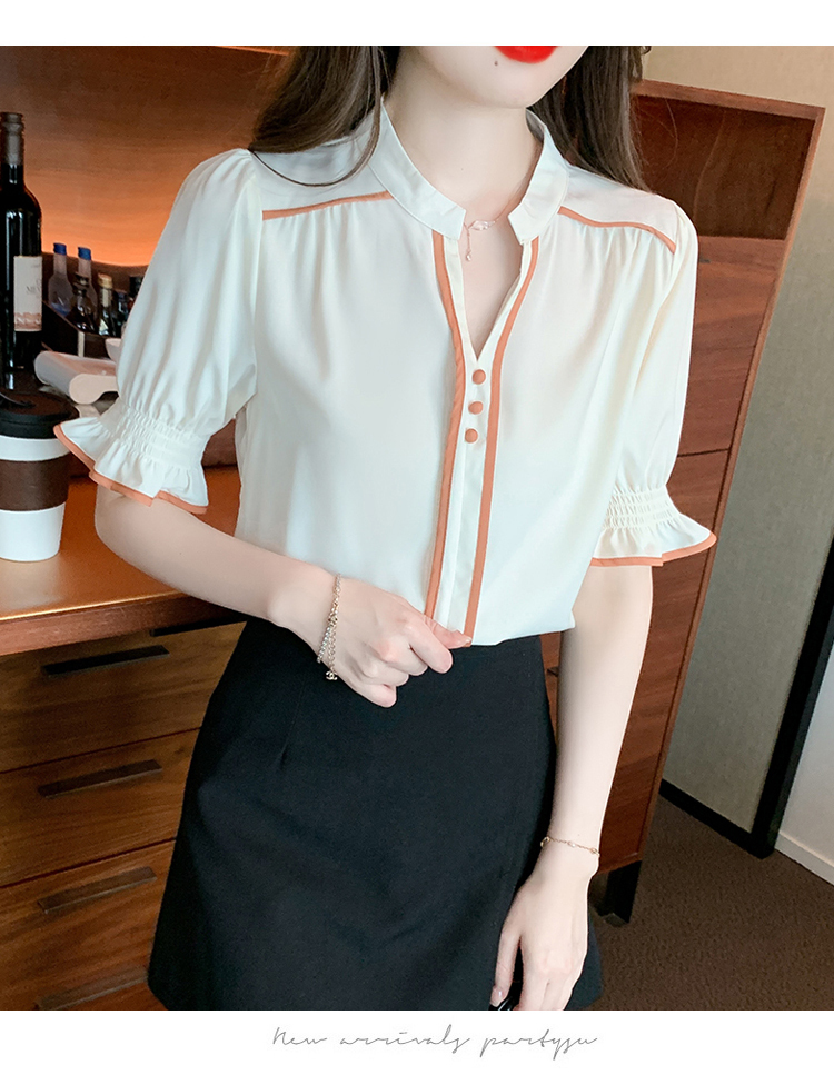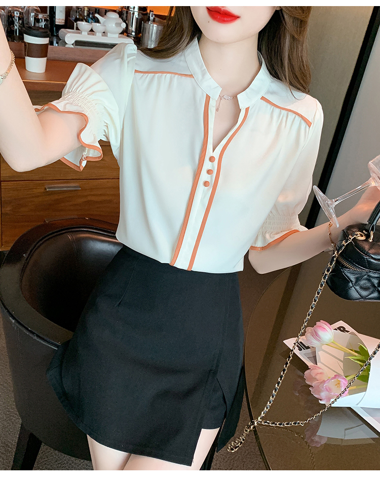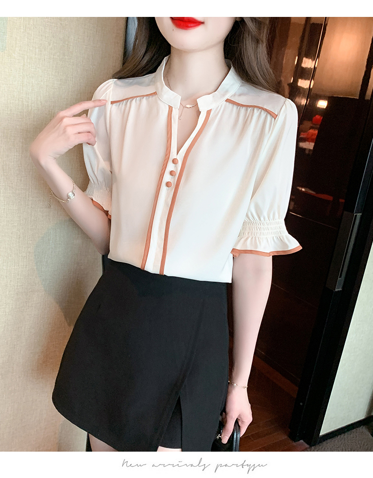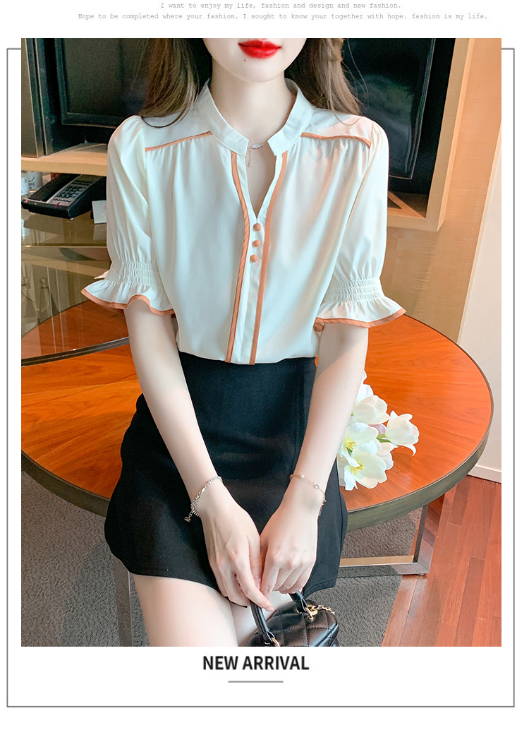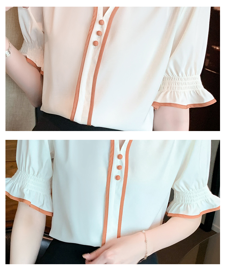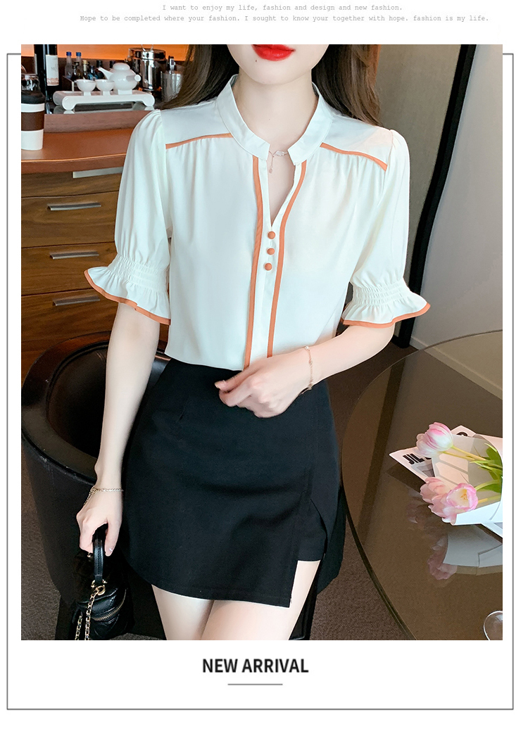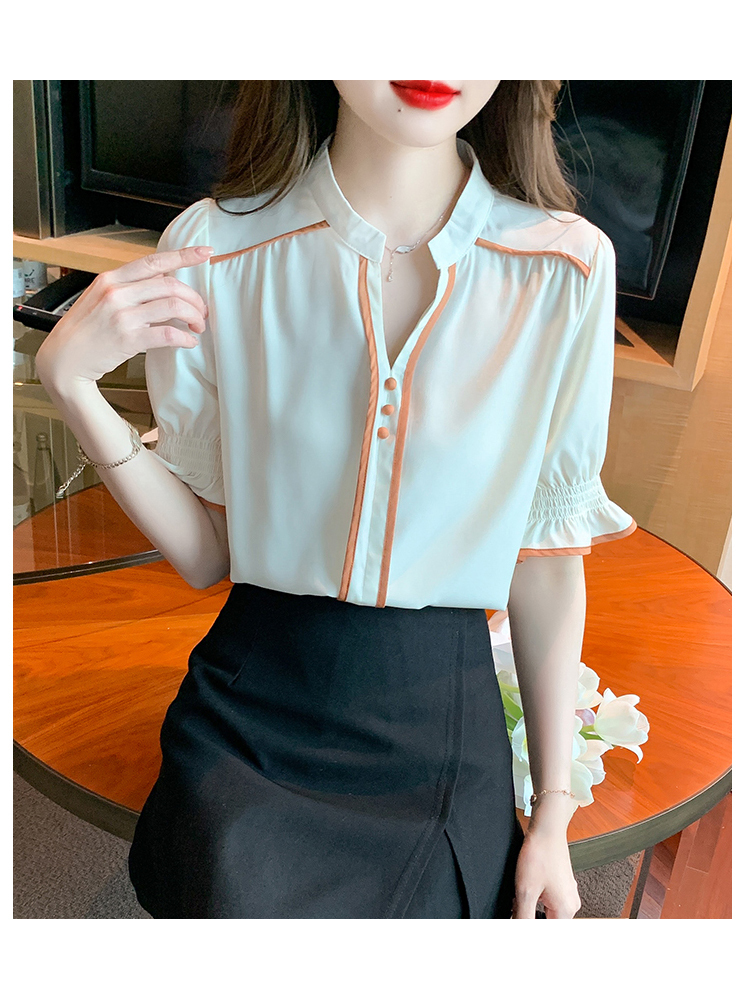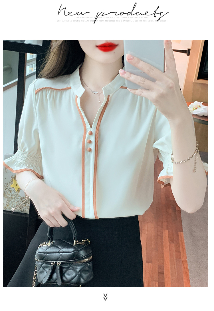 限量特惠|知性V領撞色滾邊雪紡衫(06H4149)