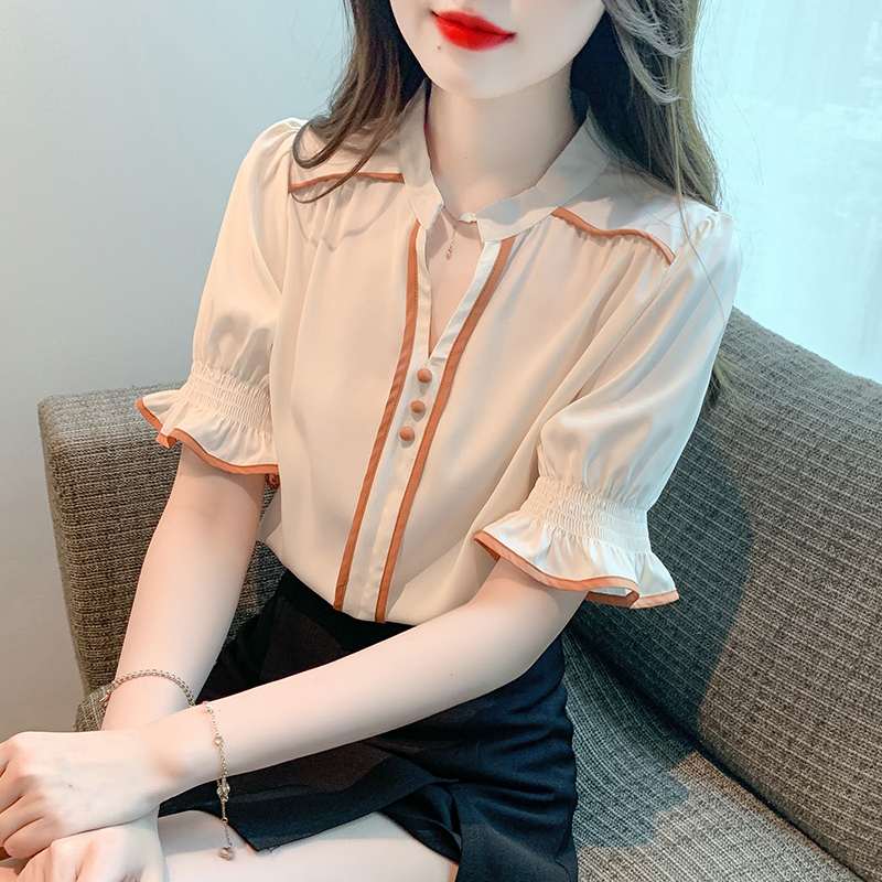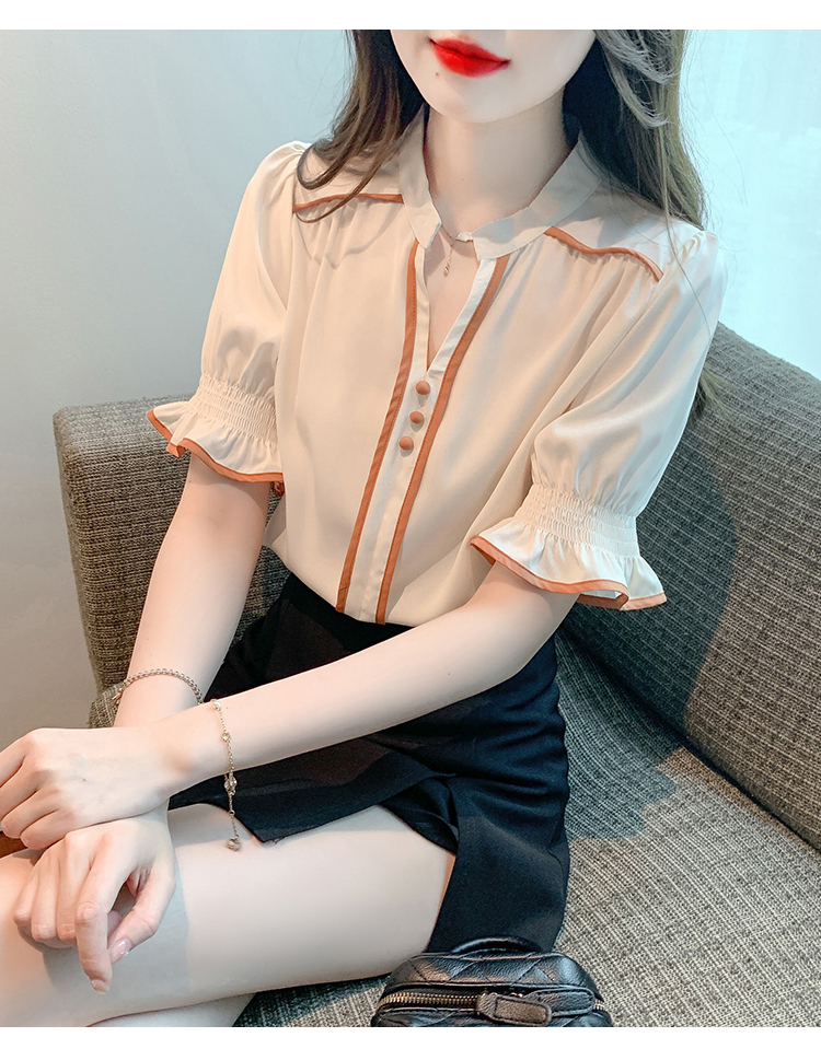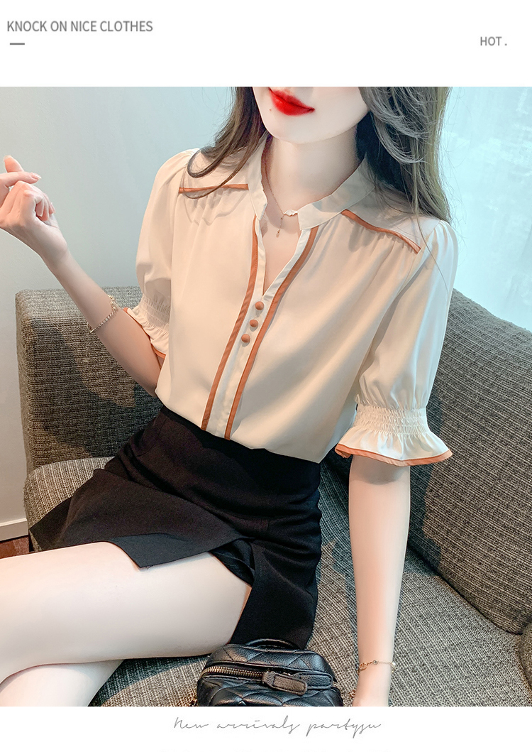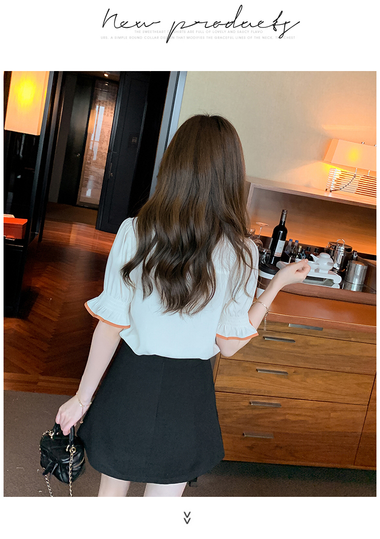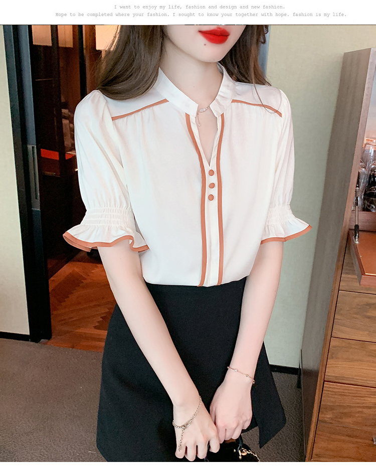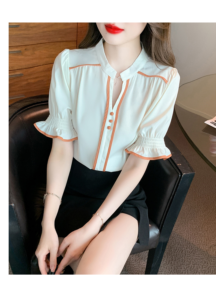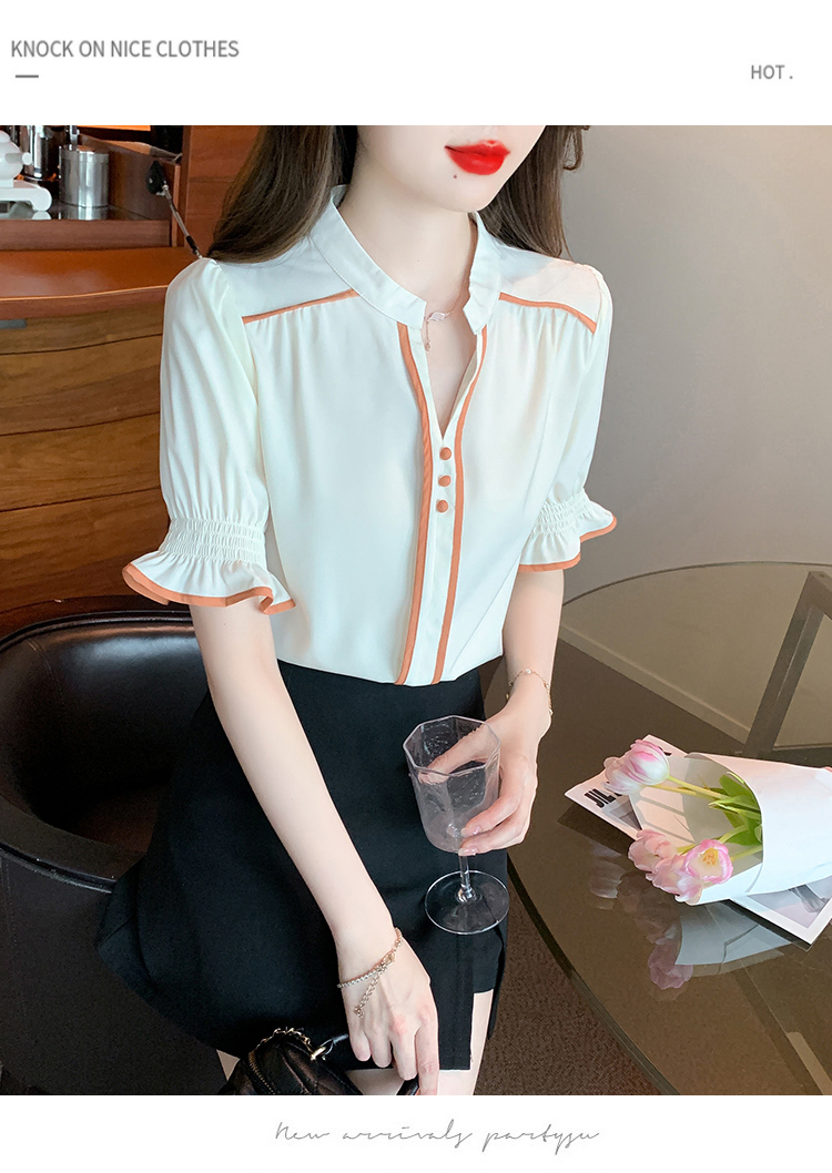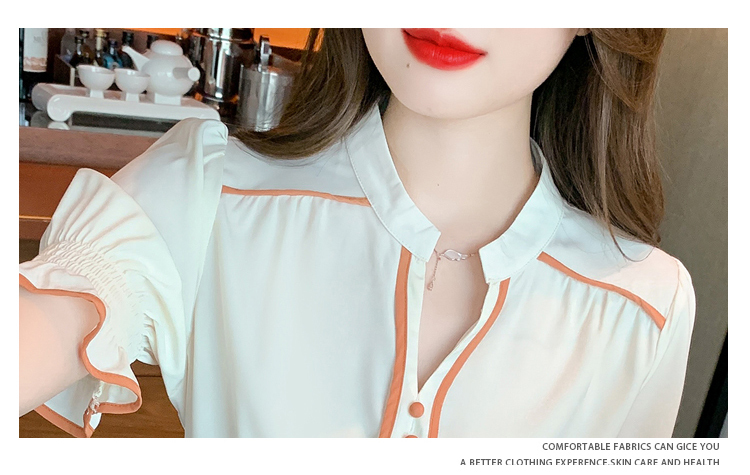 限量特惠|知性V領撞色滾邊雪紡衫(06H4149)