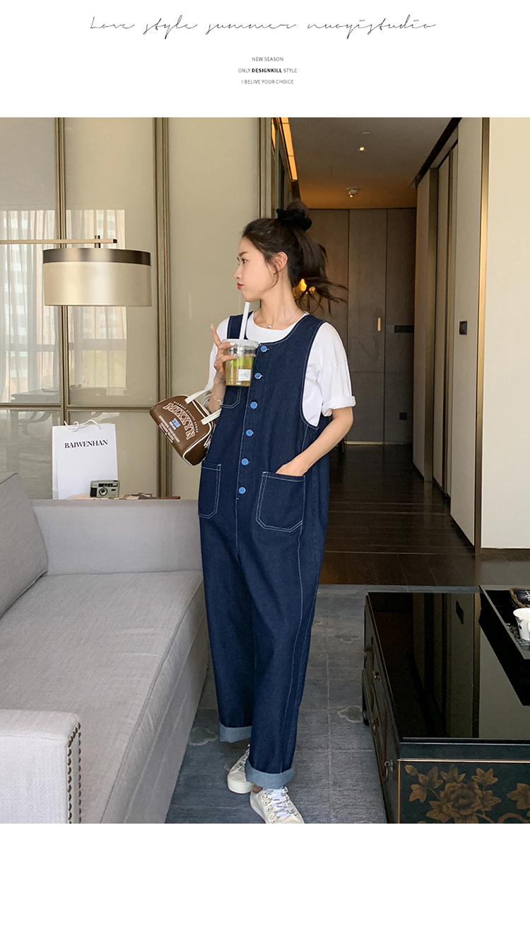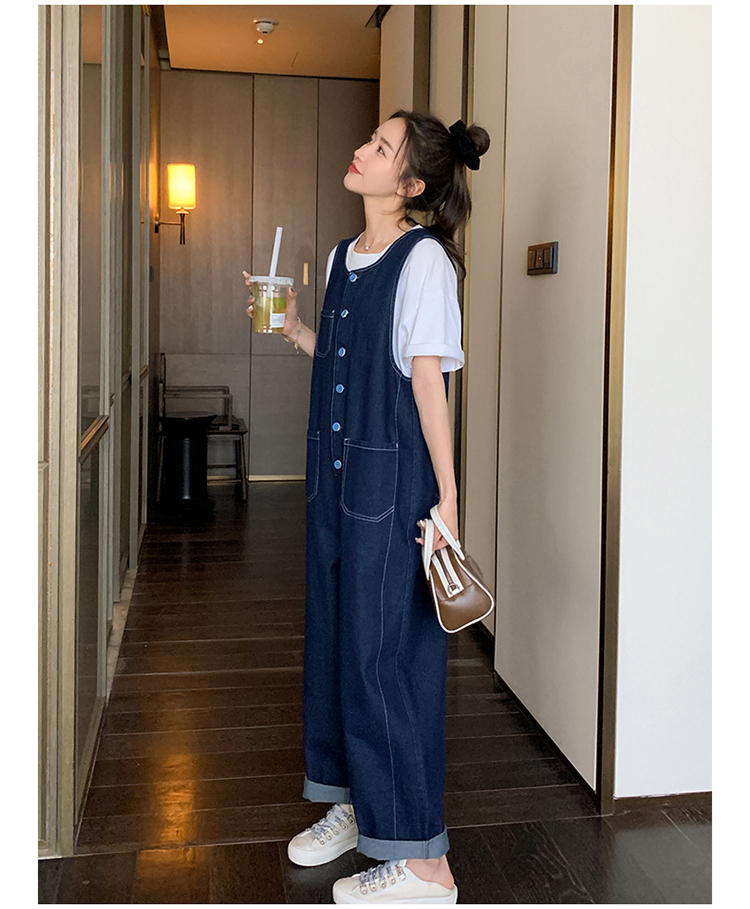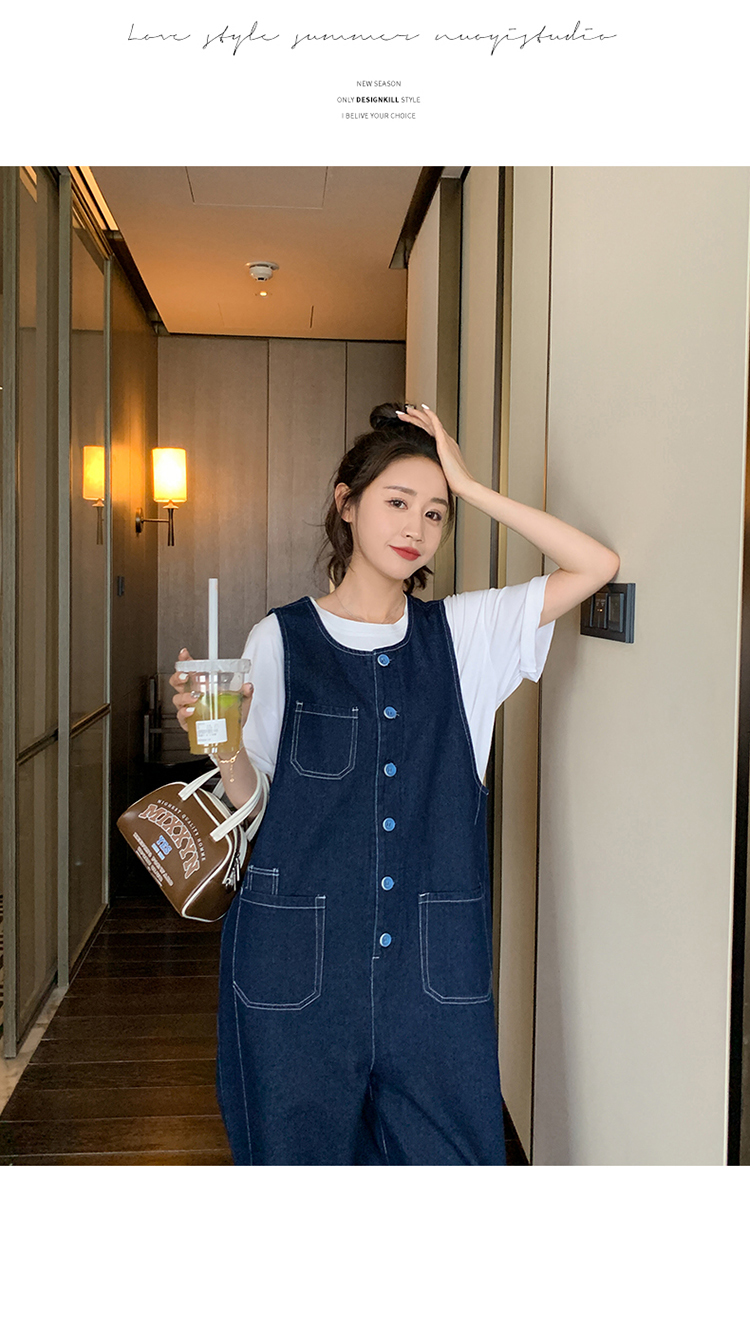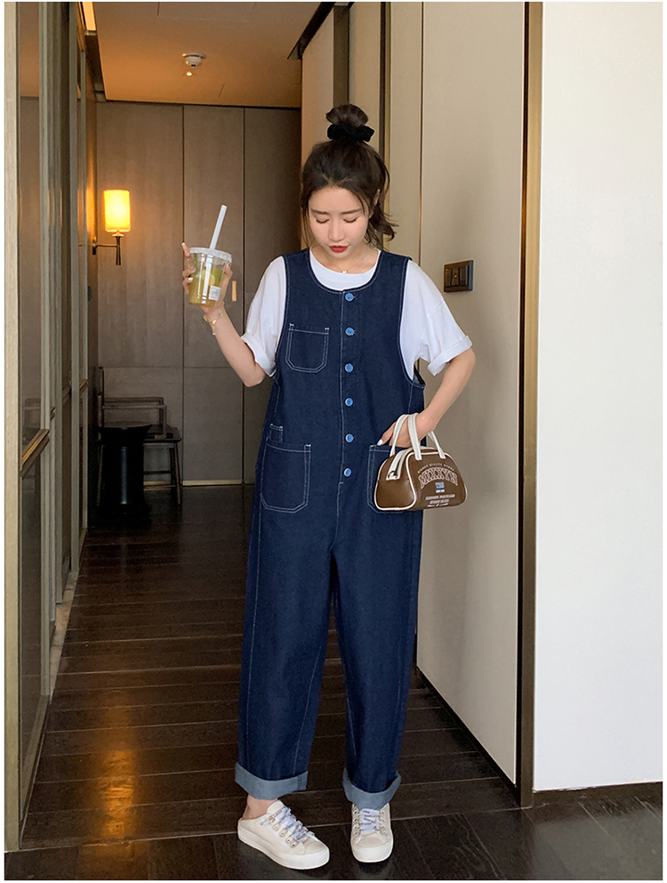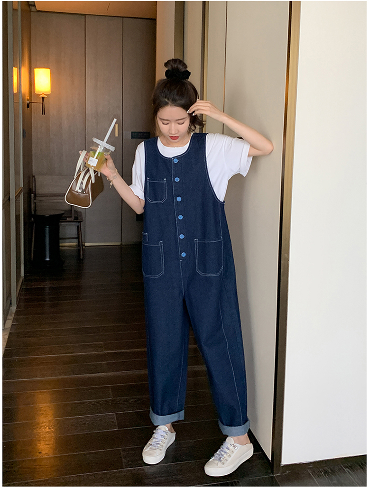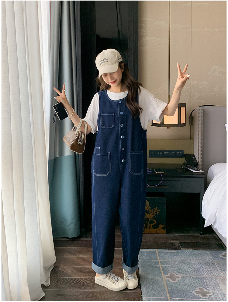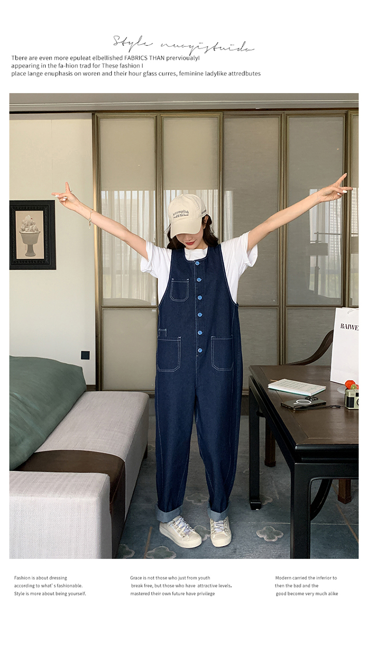 獨家訂製│韓系減齡感單排釦造型闊腿吊帶褲(06H6262)