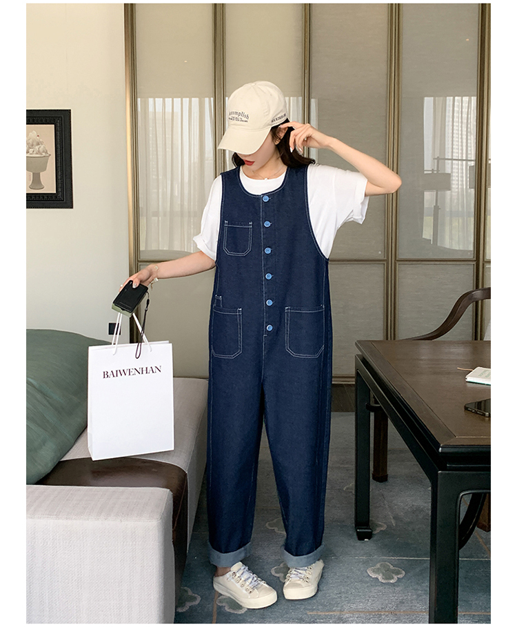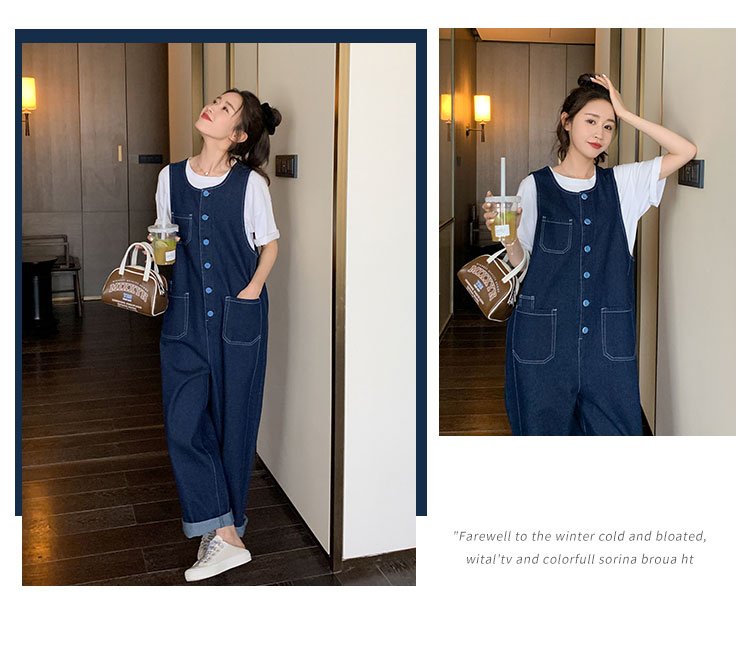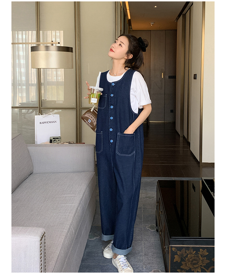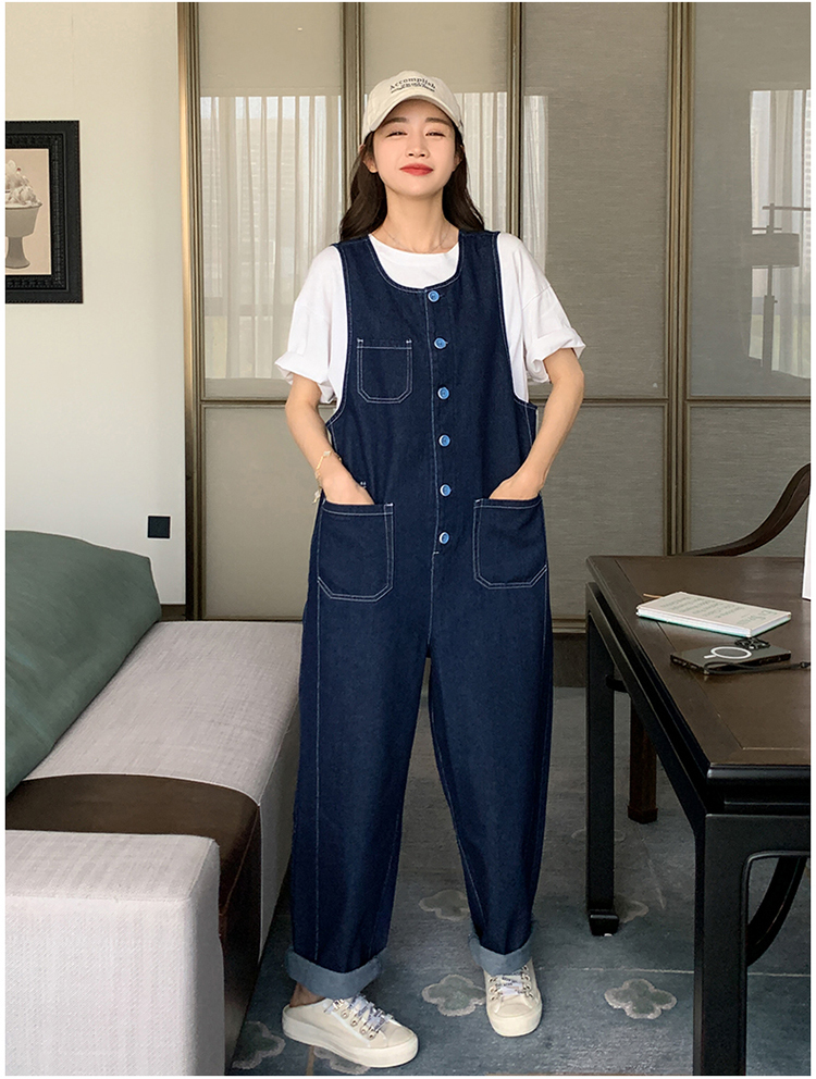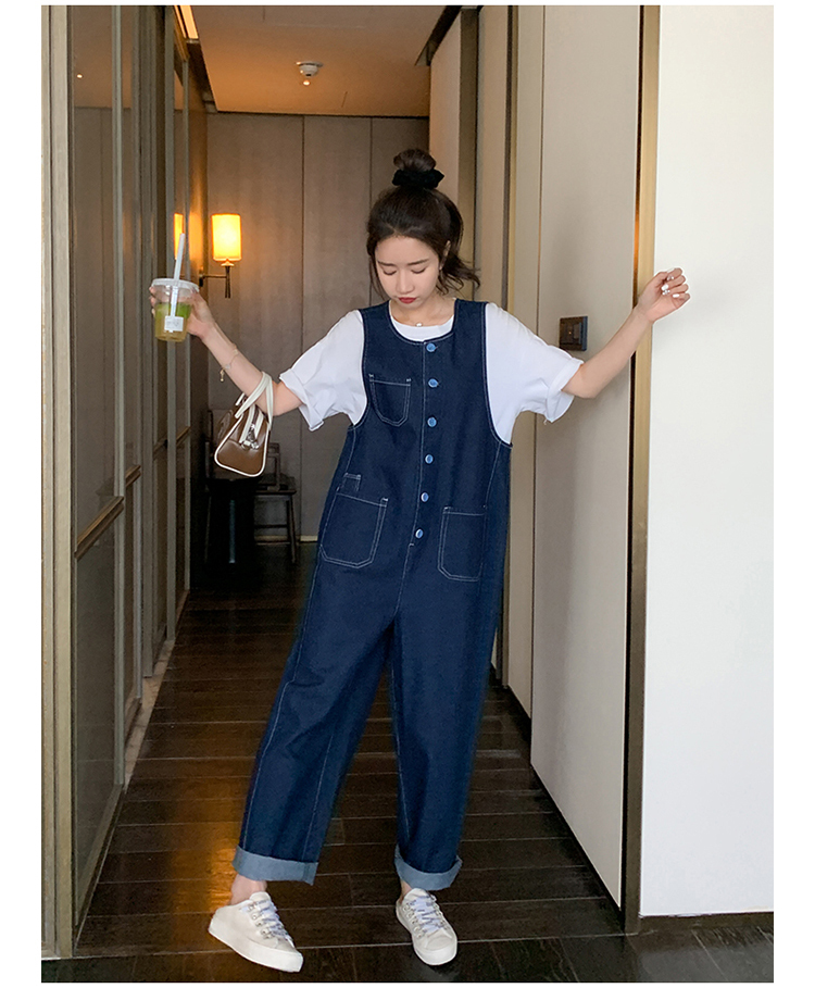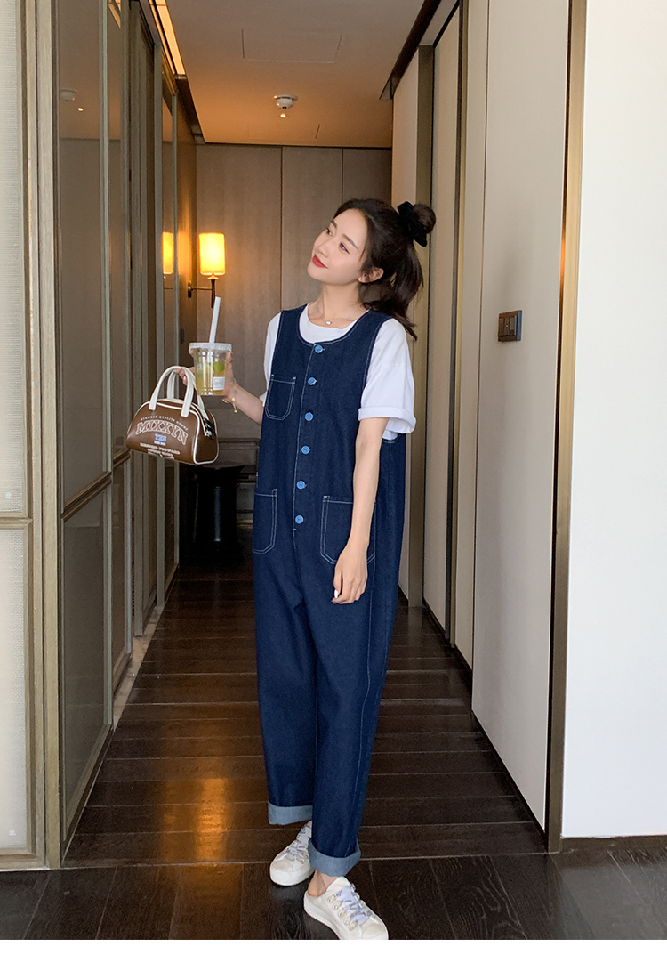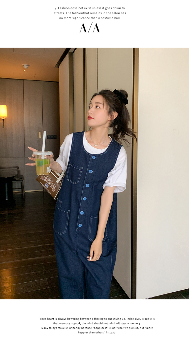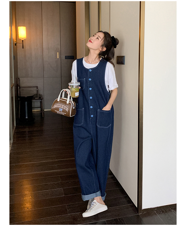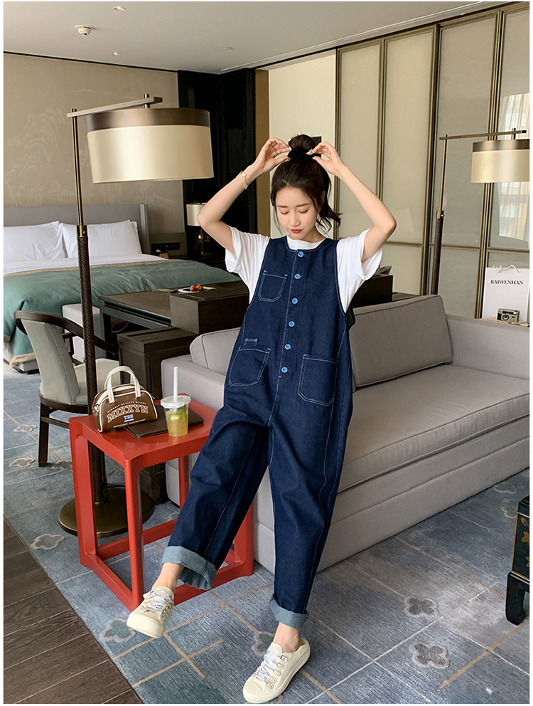 獨家訂製│韓系減齡感單排釦造型闊腿吊帶褲(06H6262)
