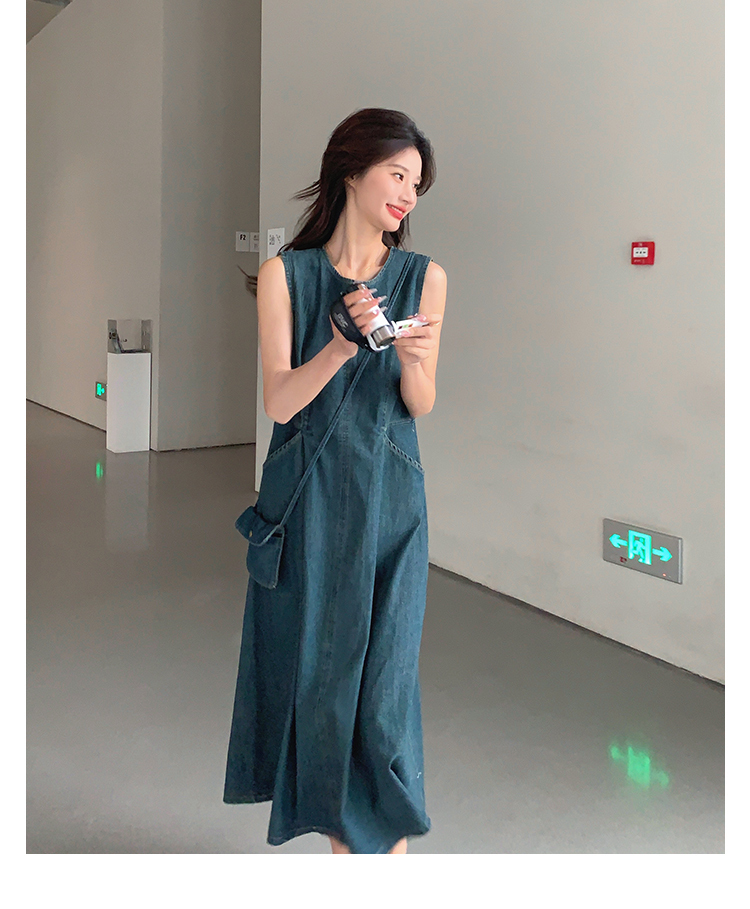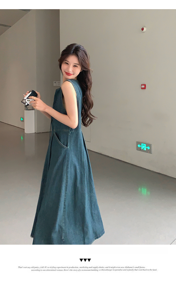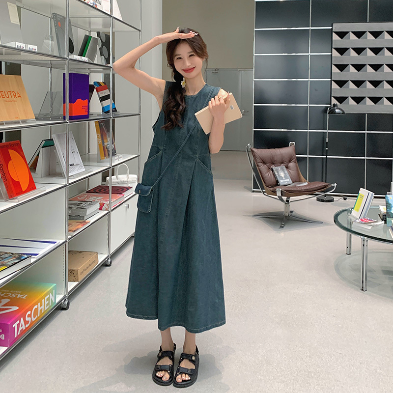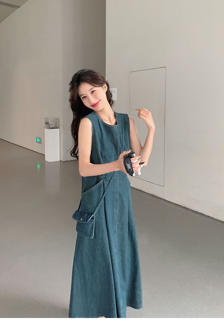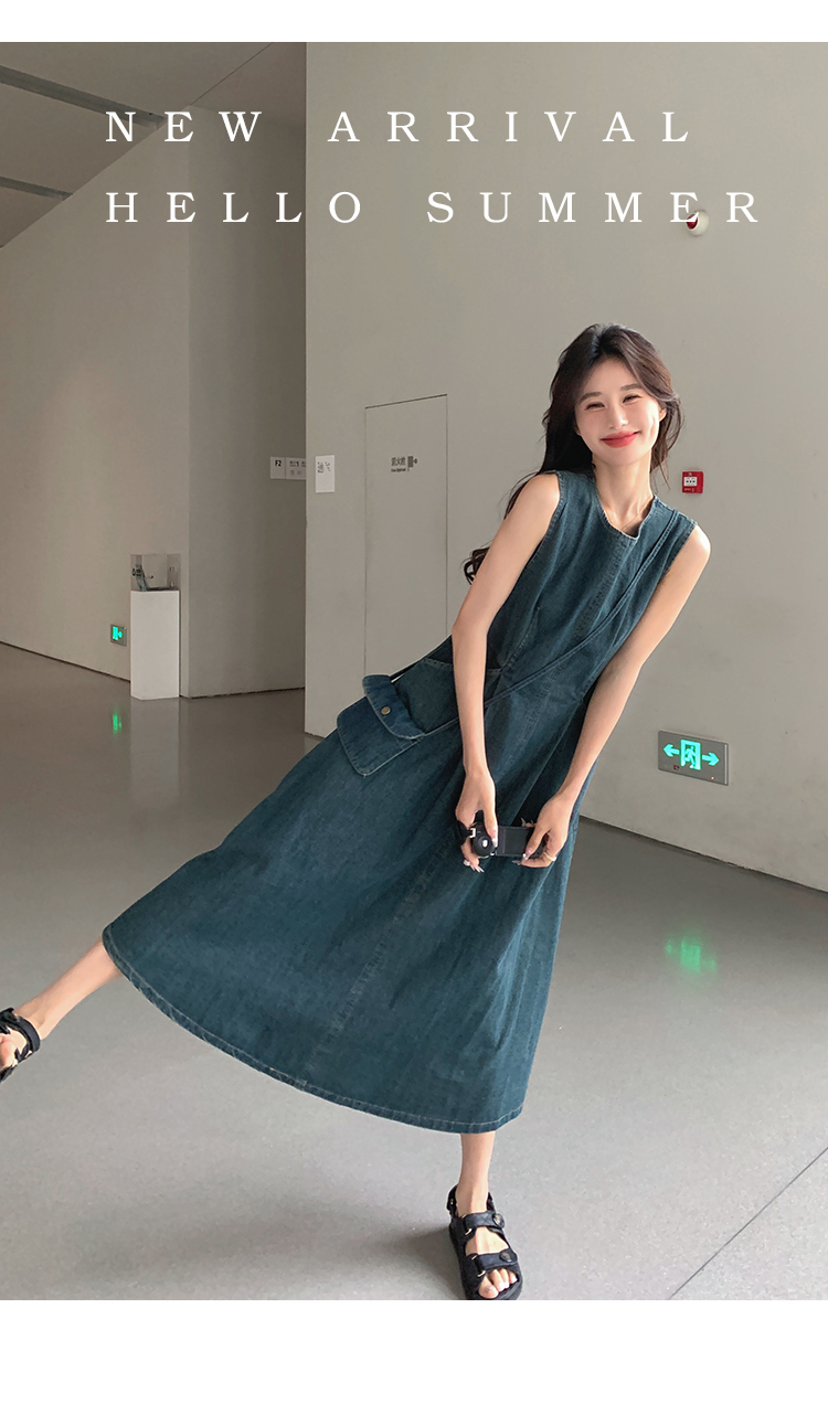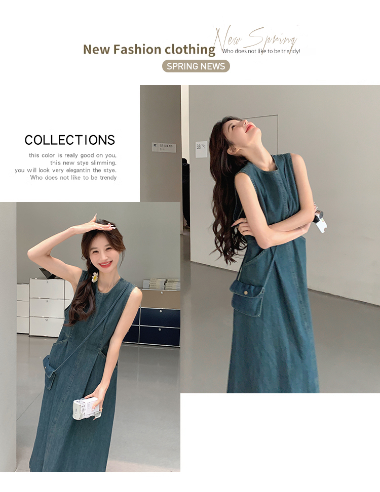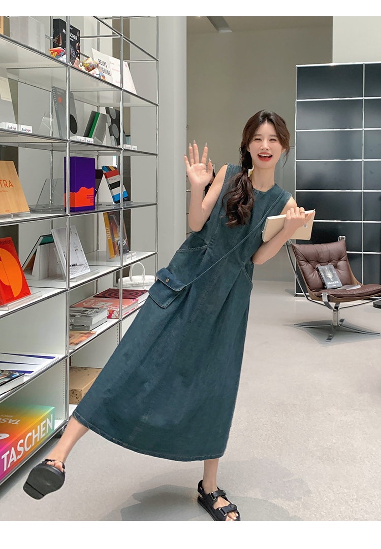 獨家訂製│韓系氣質感收腰抓褶牛仔連衣裙(06H6423)