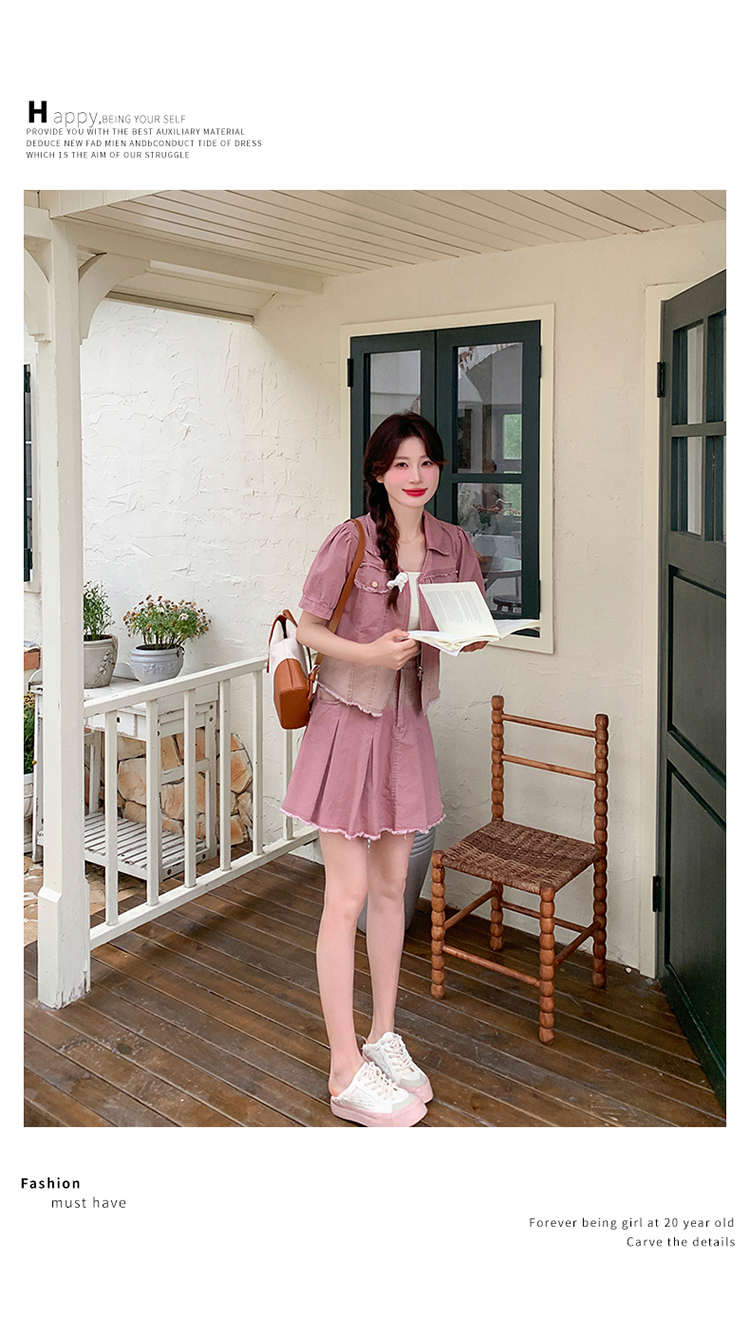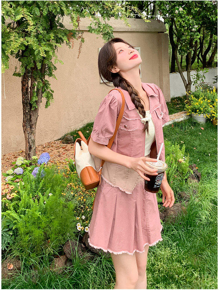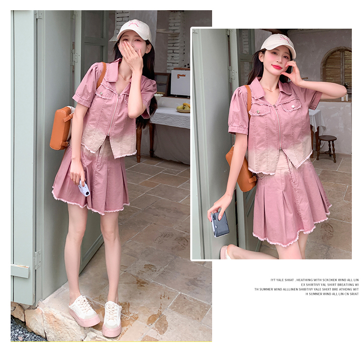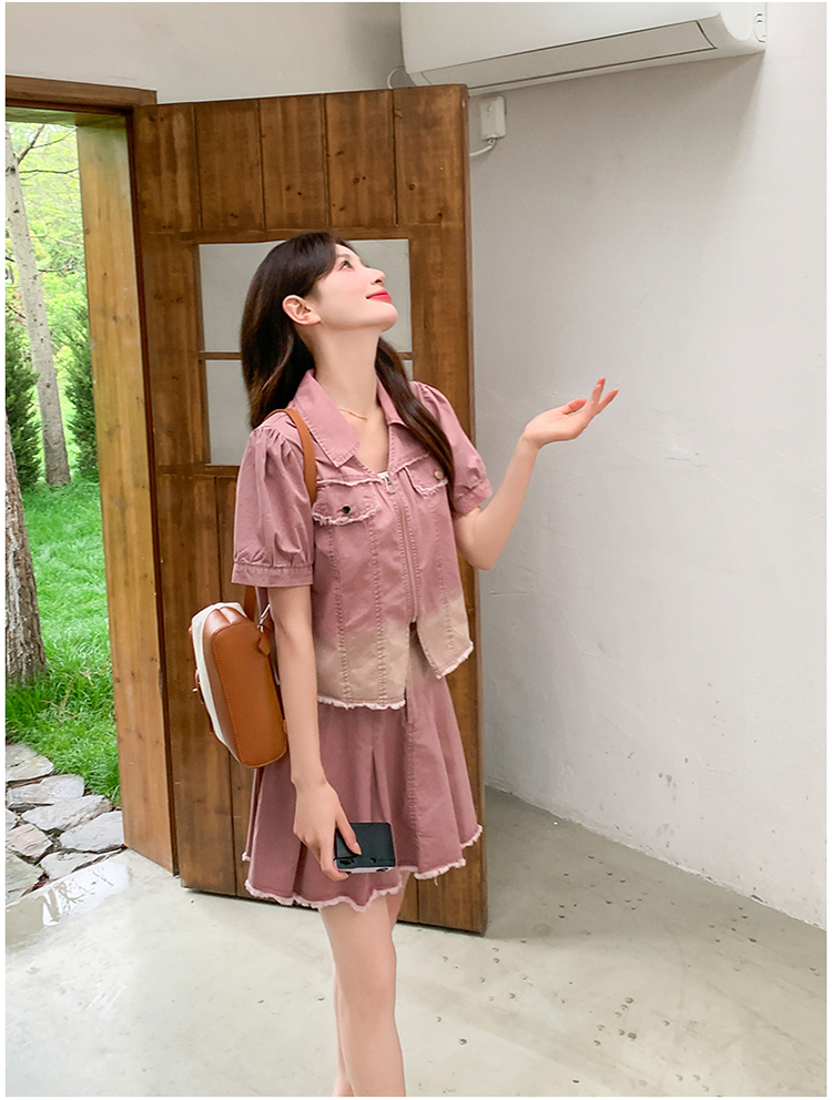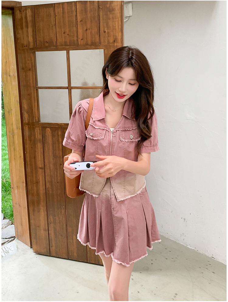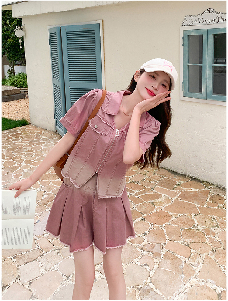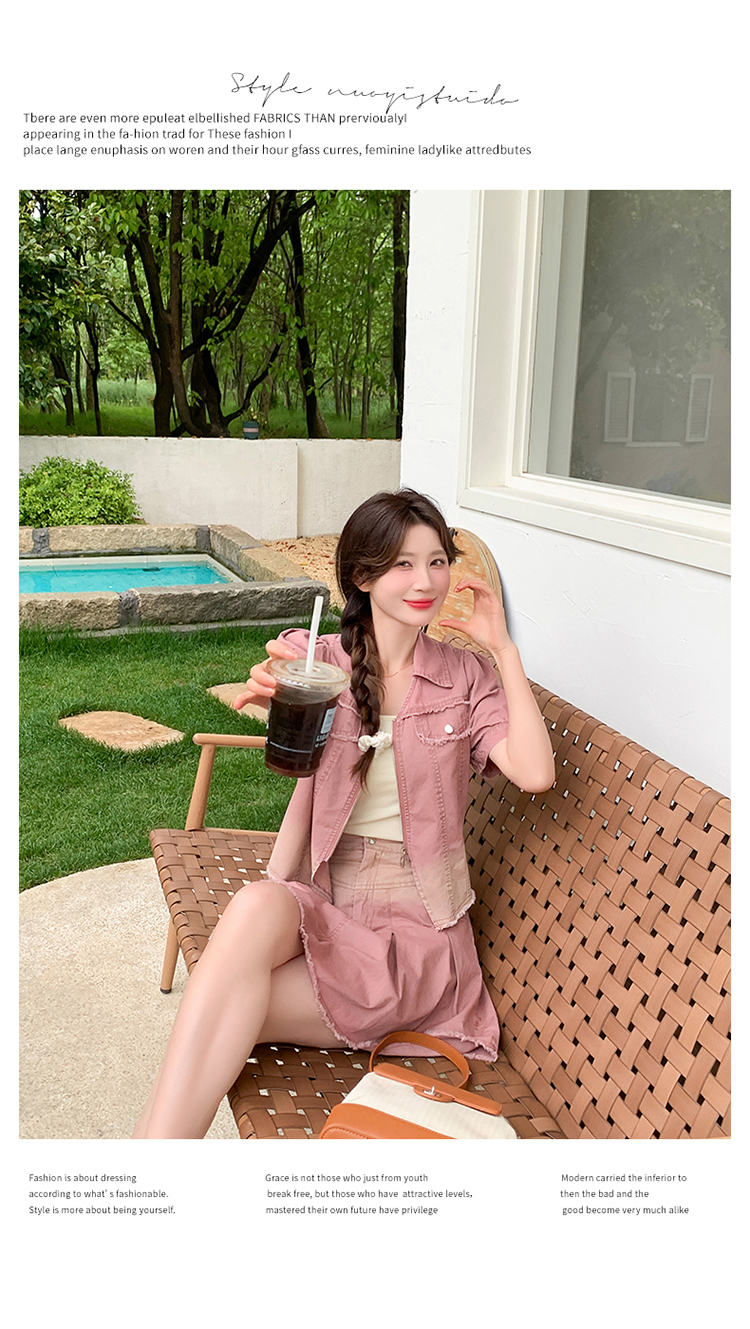 獨家訂製│韓系甜姐兒漸變色牛仔外套+百褶A字裙兩件式套裝組(06H6488)