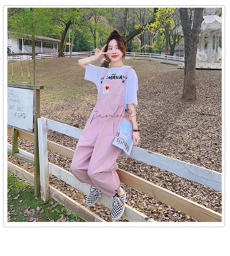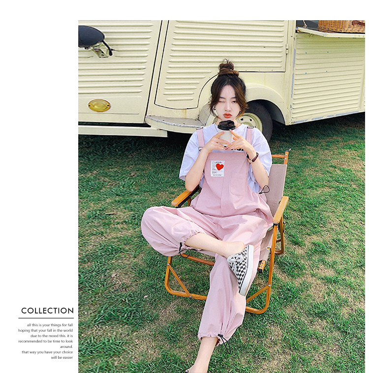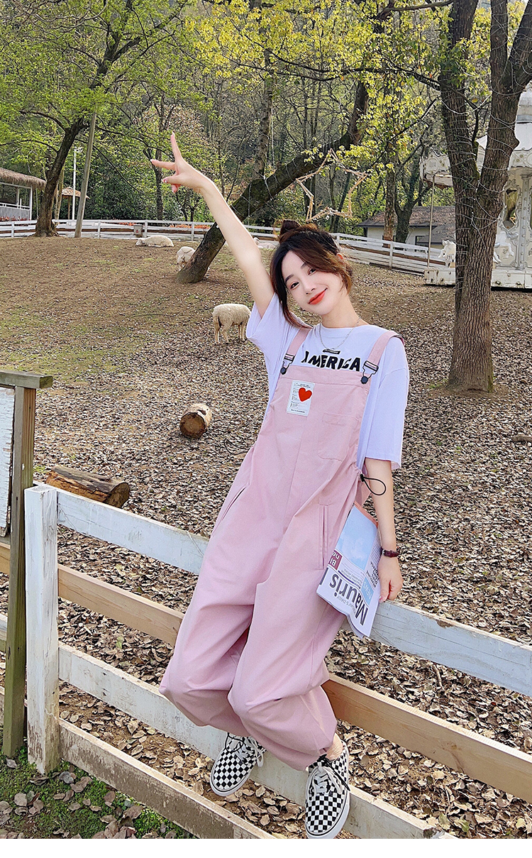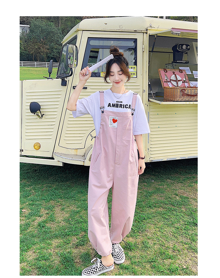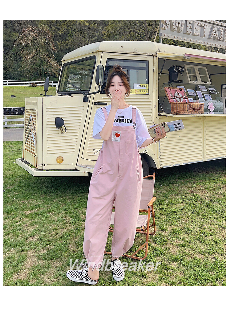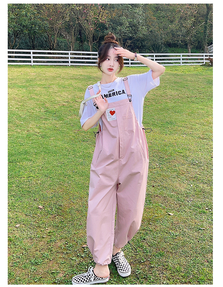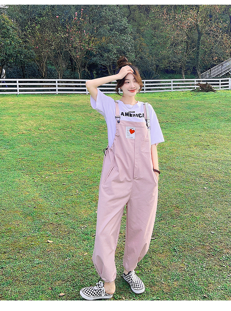 獨家訂製│韓系減齡感愛心勳貼抽繩束口哈倫吊帶褲(06H6495)