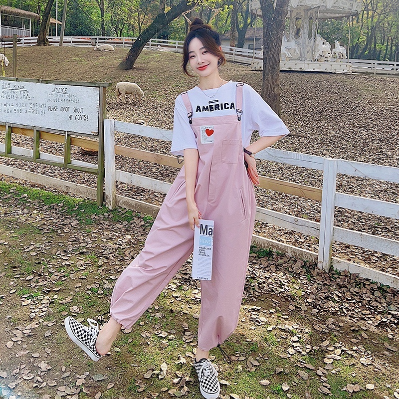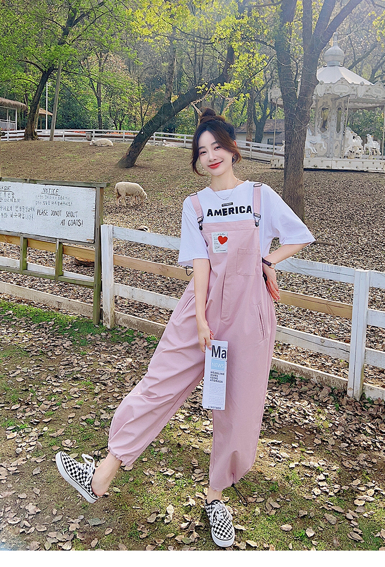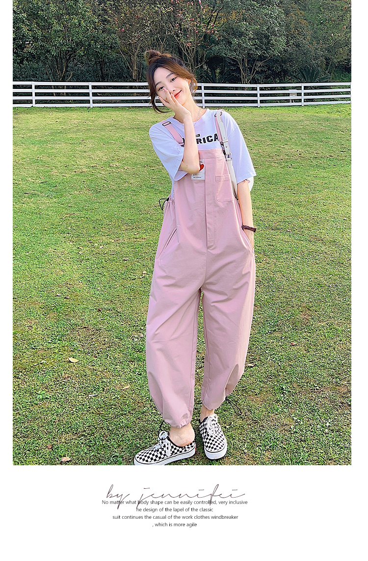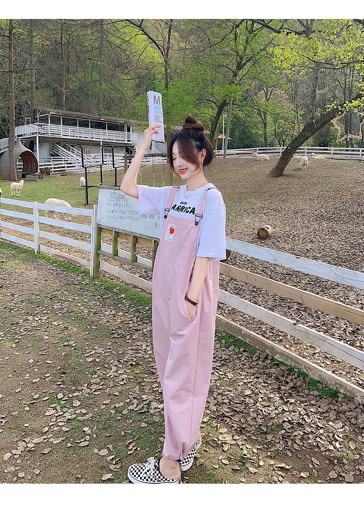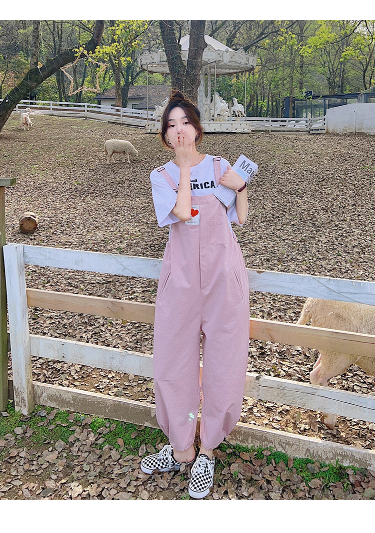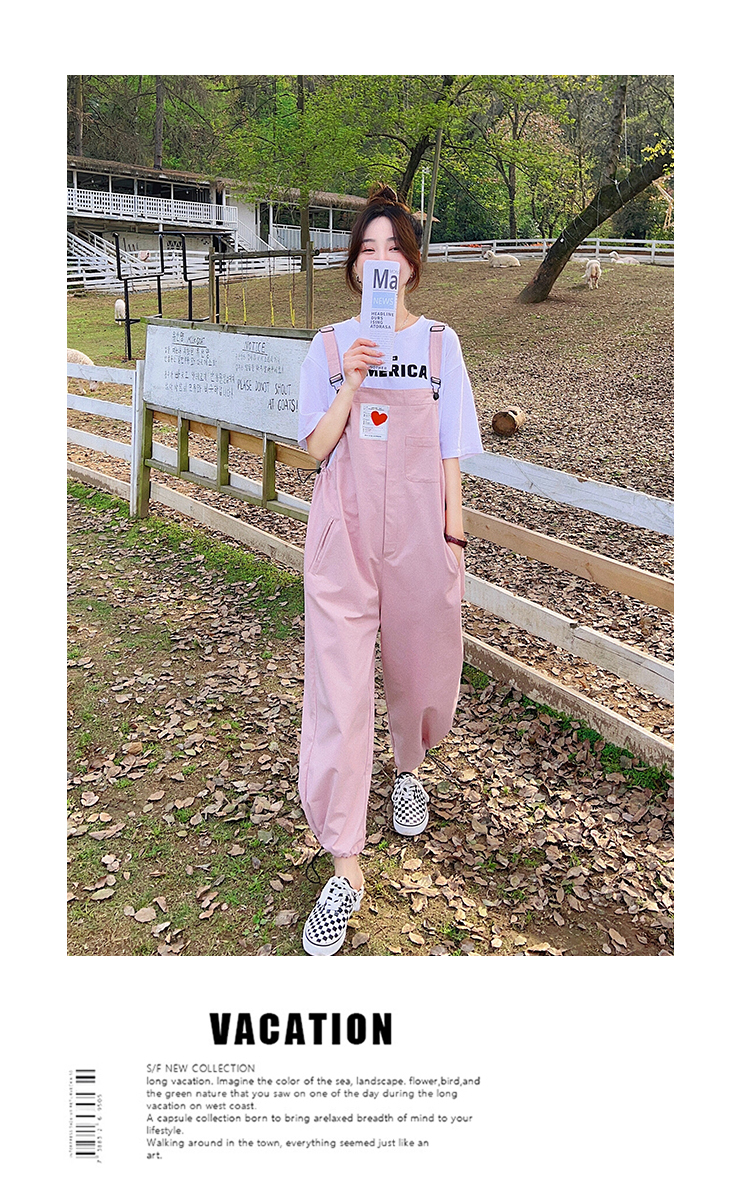 獨家訂製│韓系減齡感愛心勳貼抽繩束口哈倫吊帶褲(06H6495)