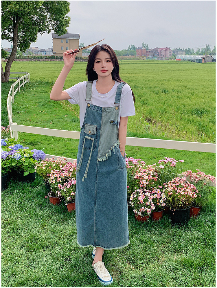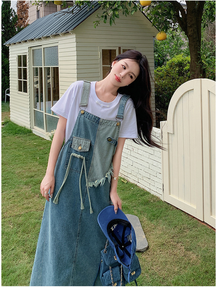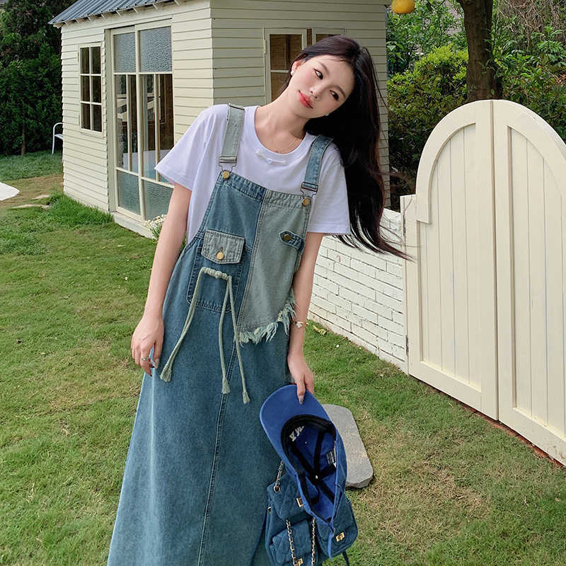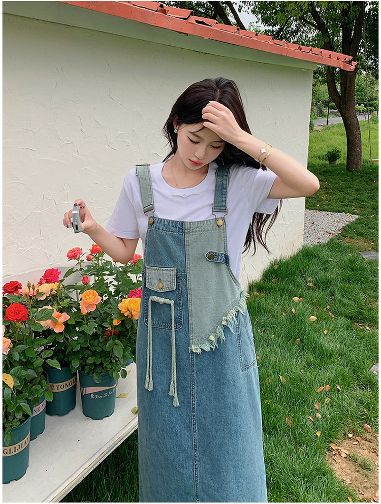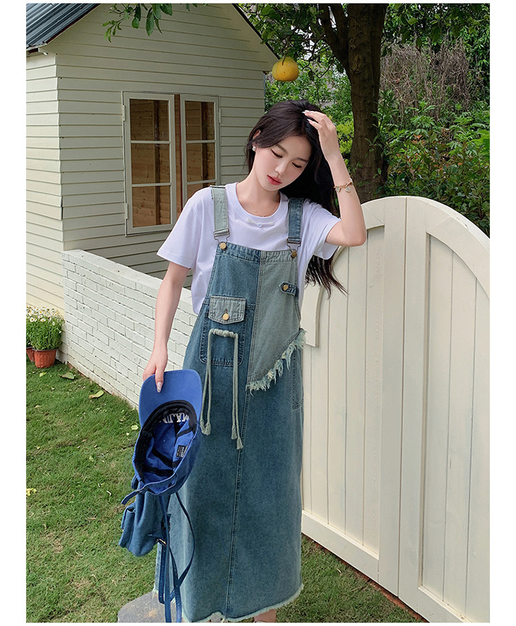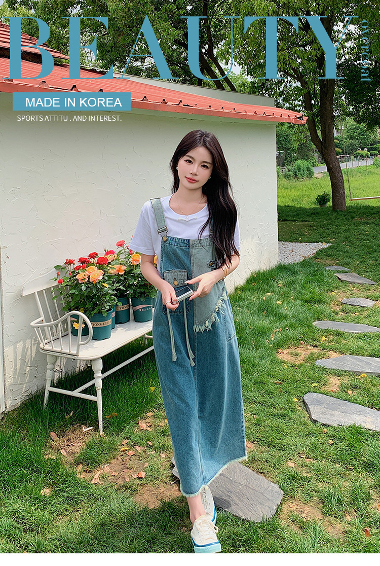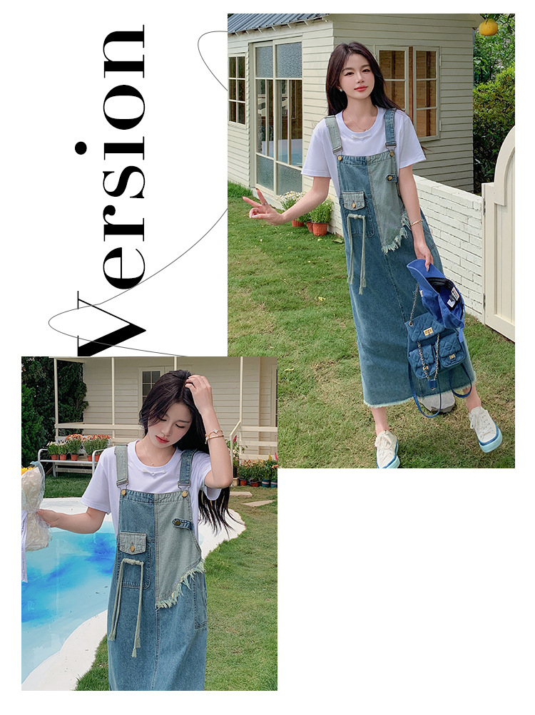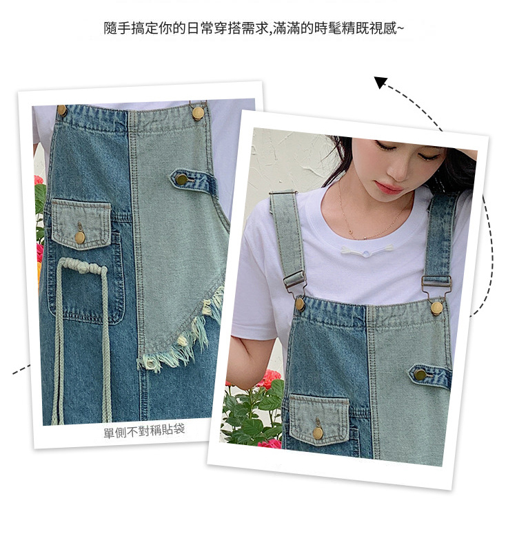 獨家訂製│韓系甜酷風撞色拼接牛仔吊帶裙(06H6508)