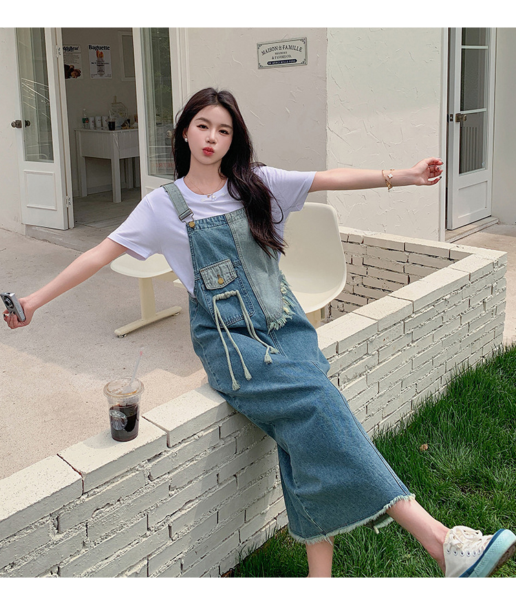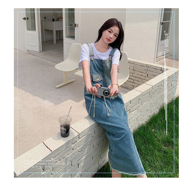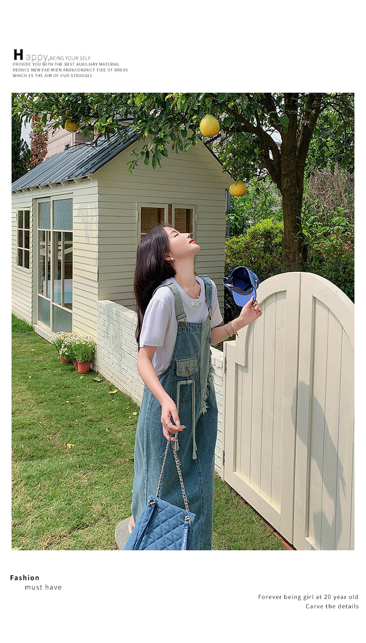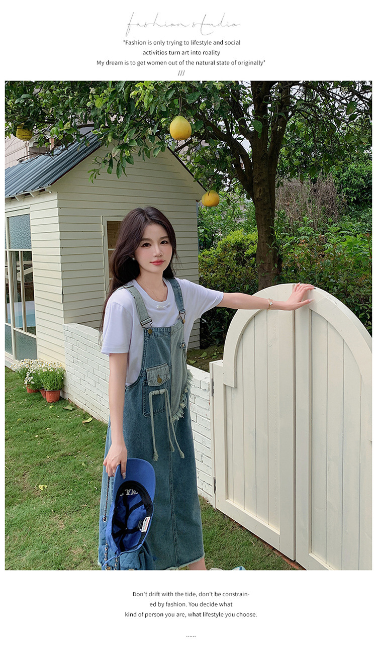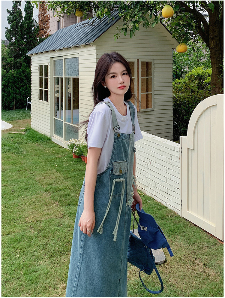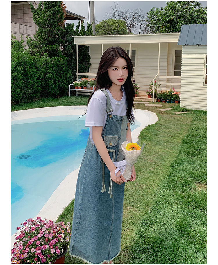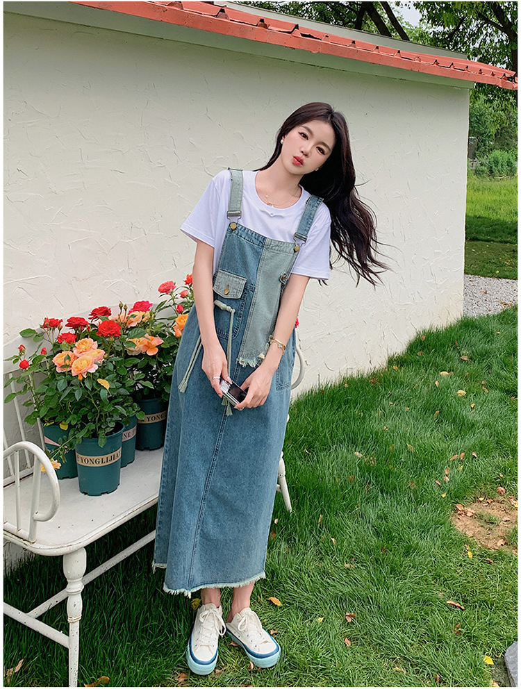 獨家訂製│韓系甜酷風撞色拼接牛仔吊帶裙(06H6508)