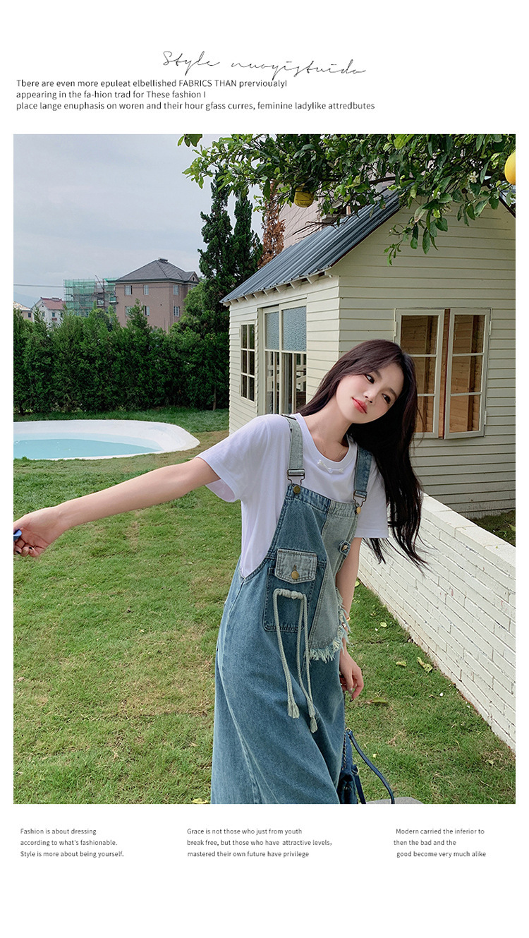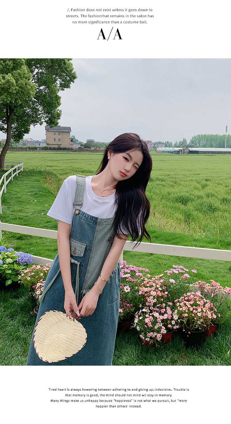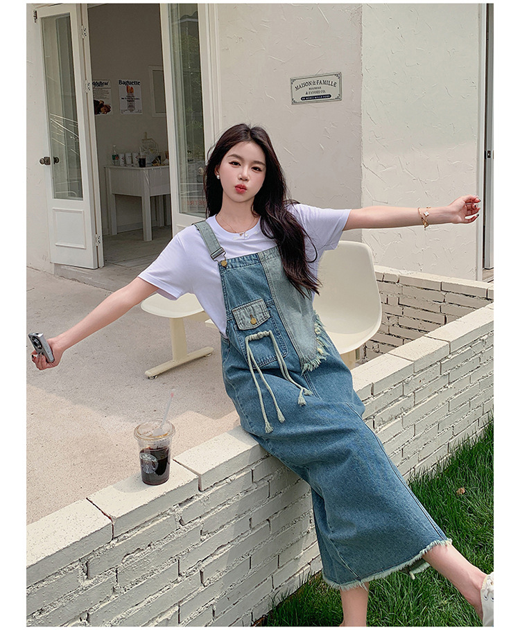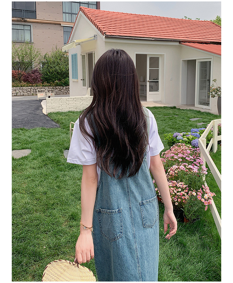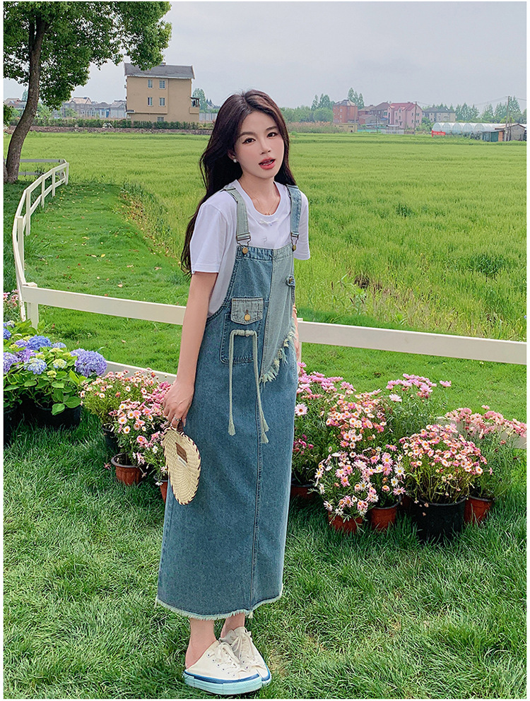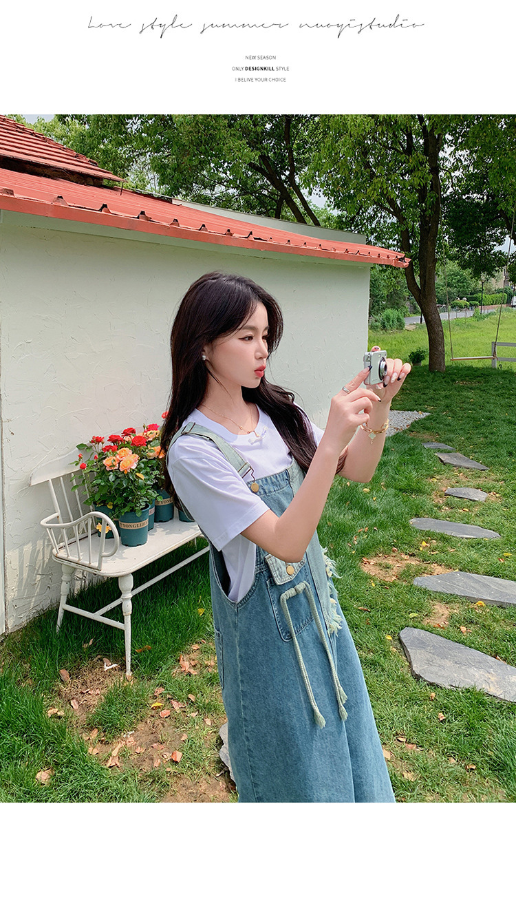獨家訂製│韓系甜酷風撞色拼接牛仔吊帶裙(06H6508)