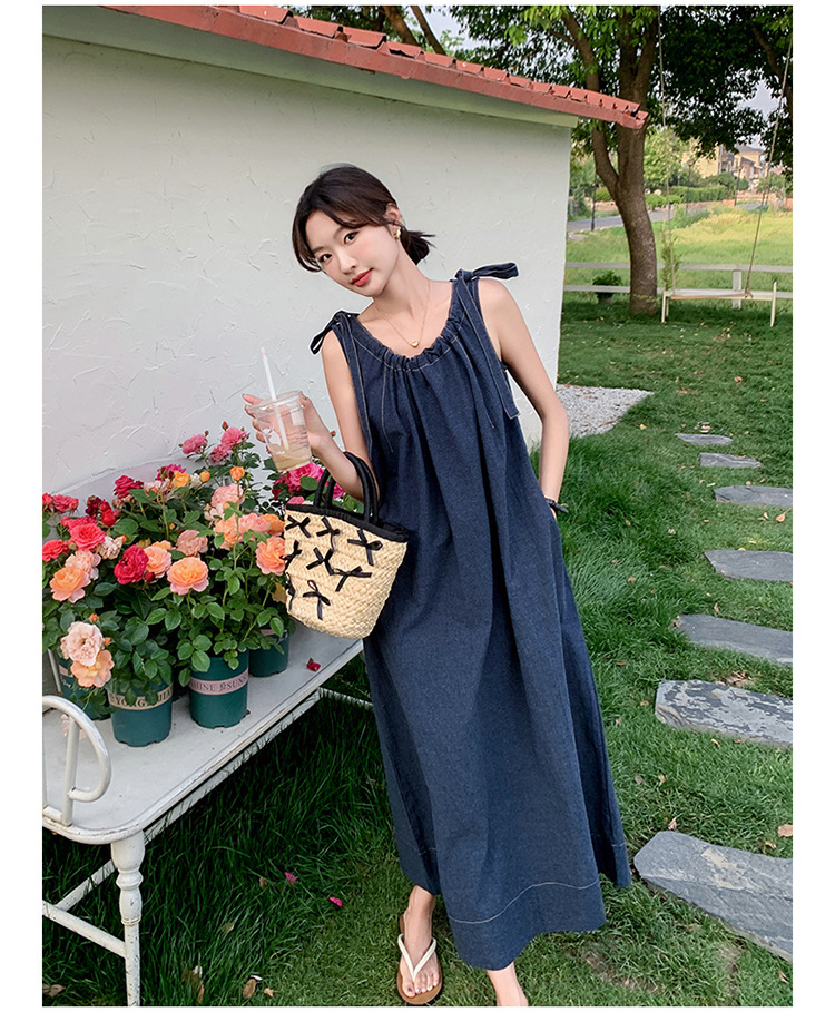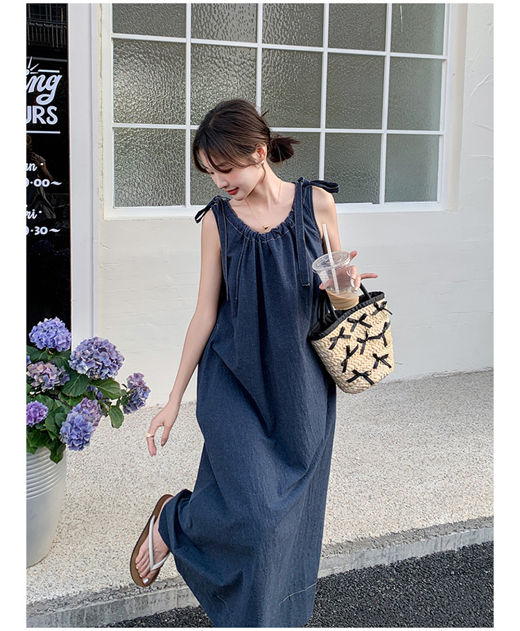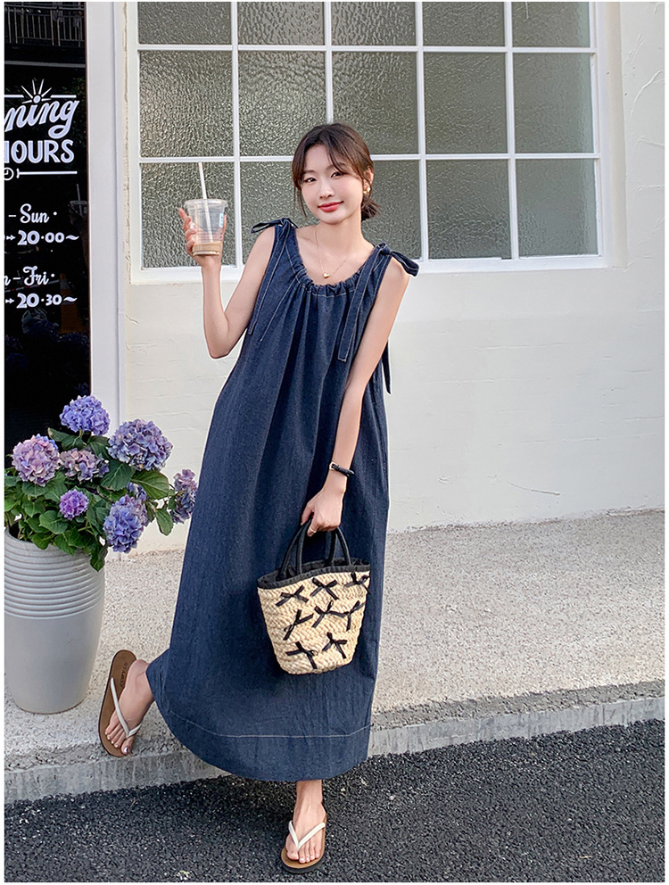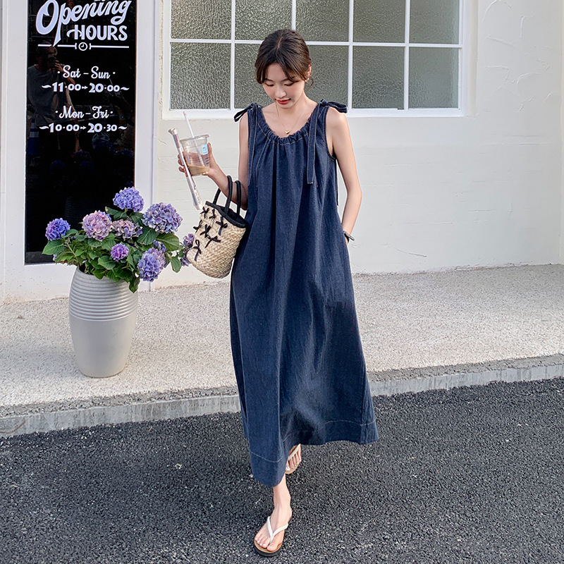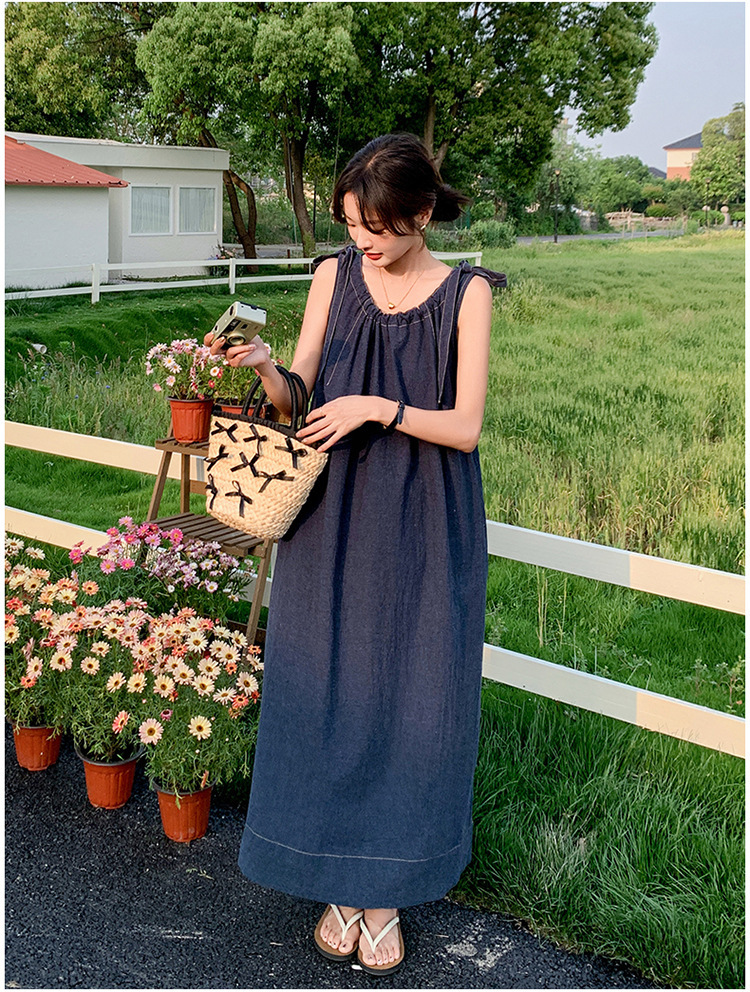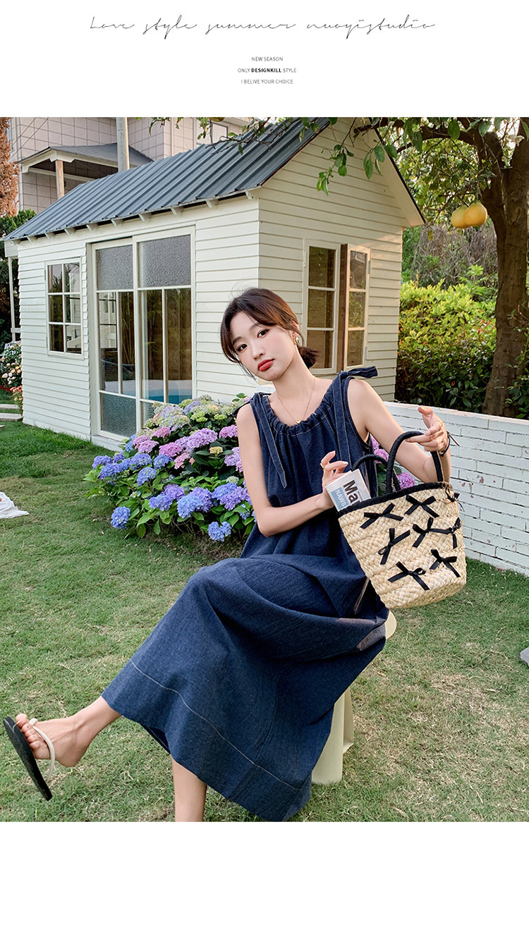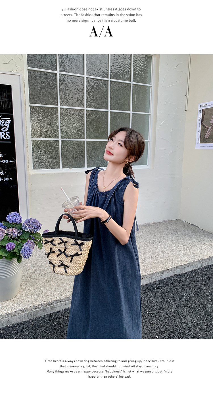 獨家訂製│韓系甜姐兒蝴蝶結造型牛仔連衣裙(06H6522)