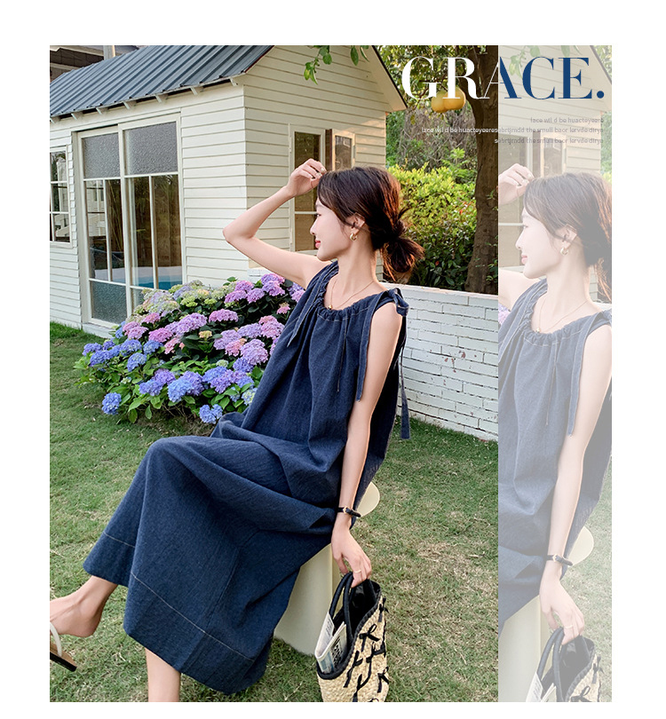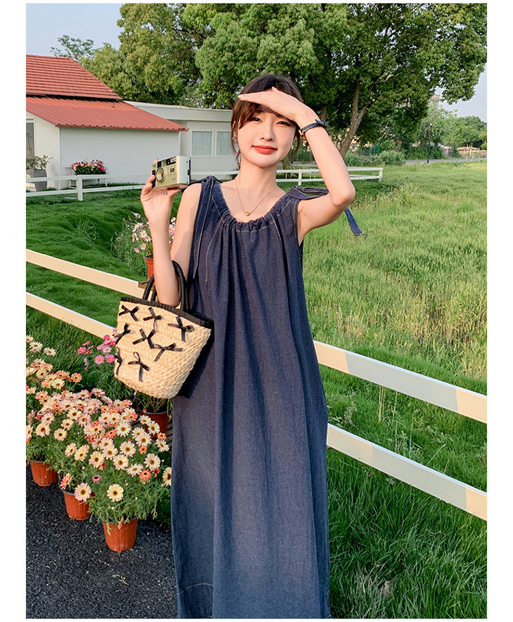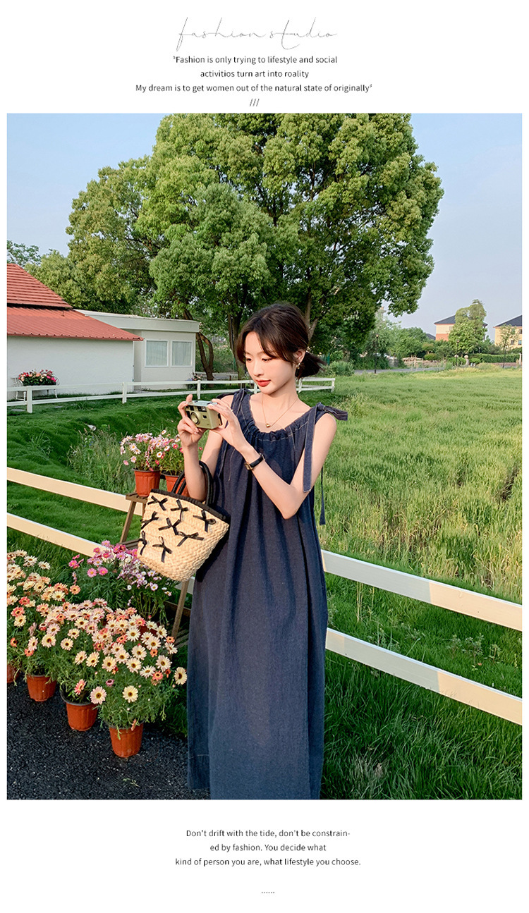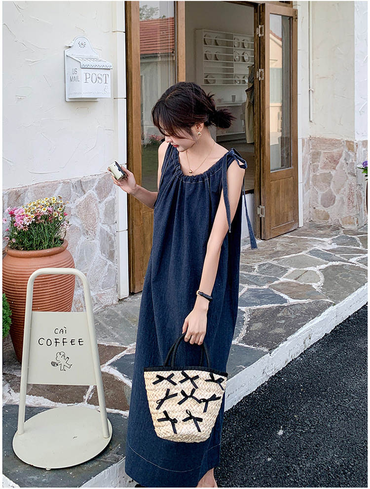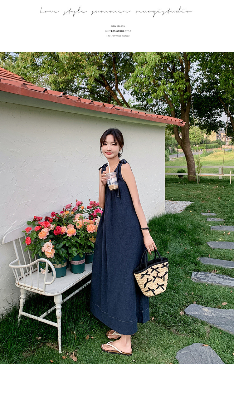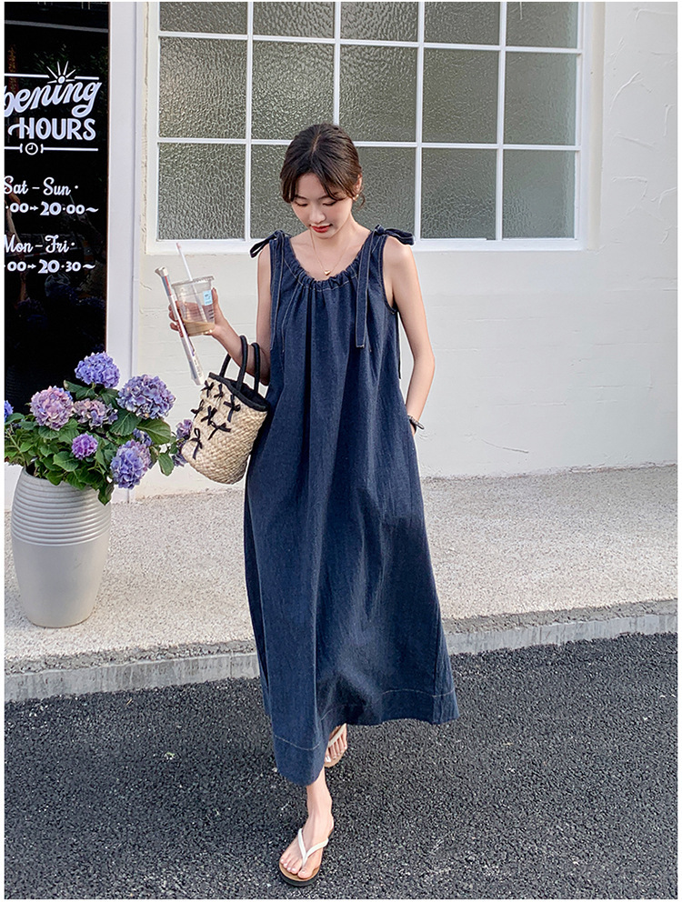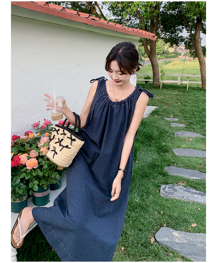 獨家訂製│韓系甜姐兒蝴蝶結造型牛仔連衣裙(06H6522)