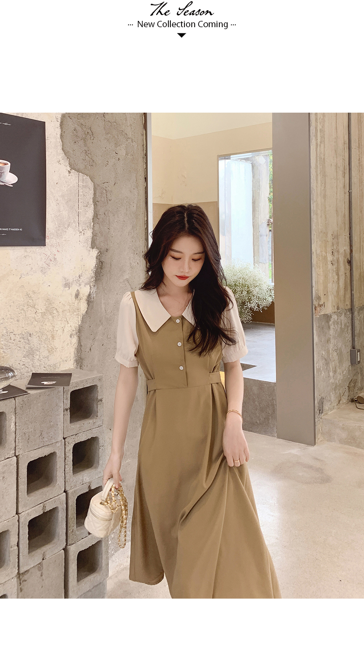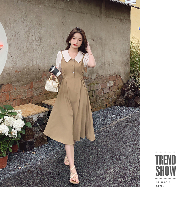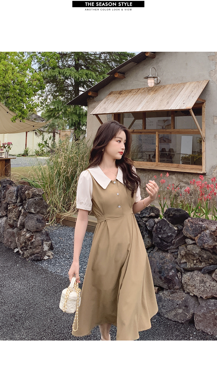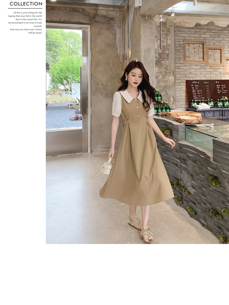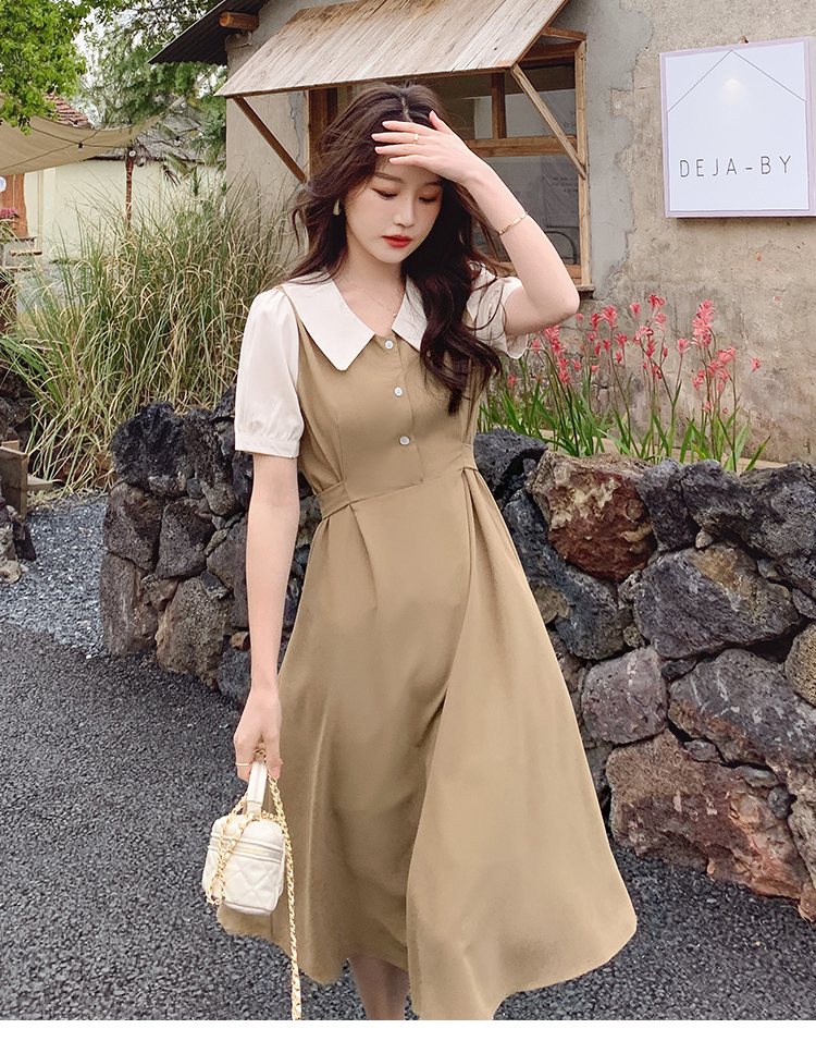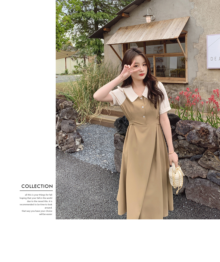 獨家訂製│韓系氣質感撞色翻領收腰連衣裙(06H6524)