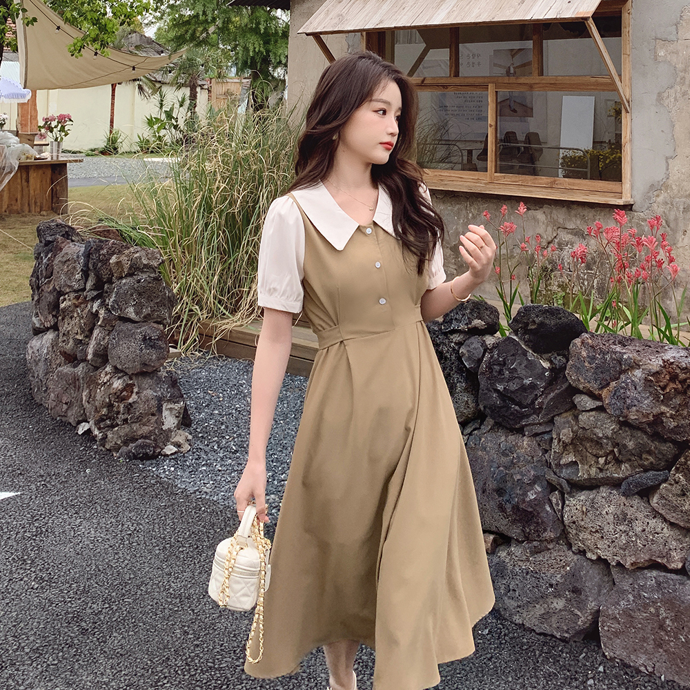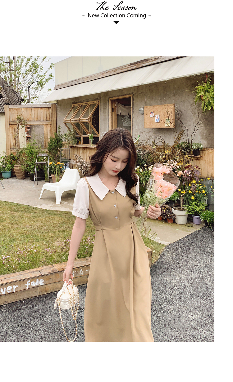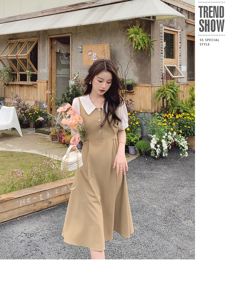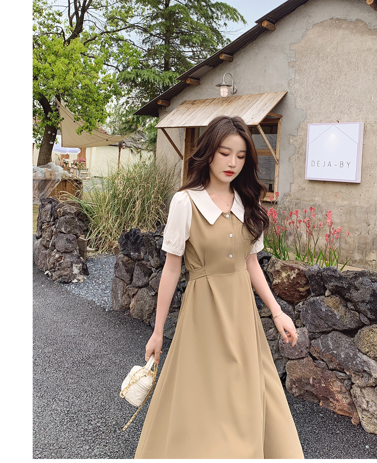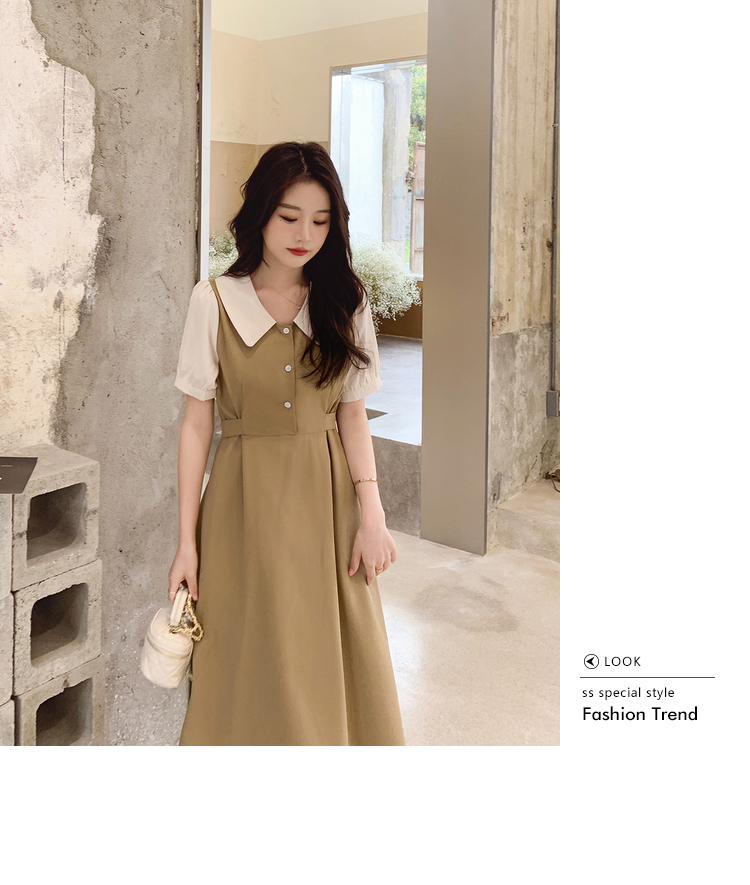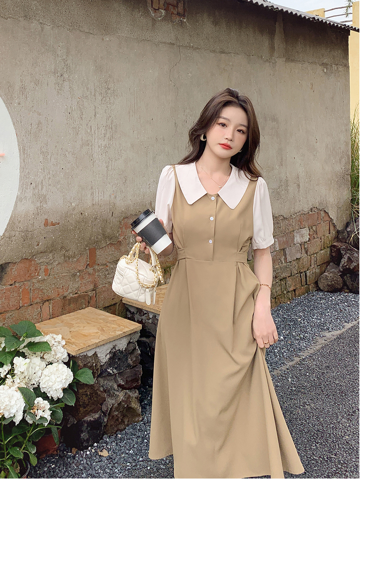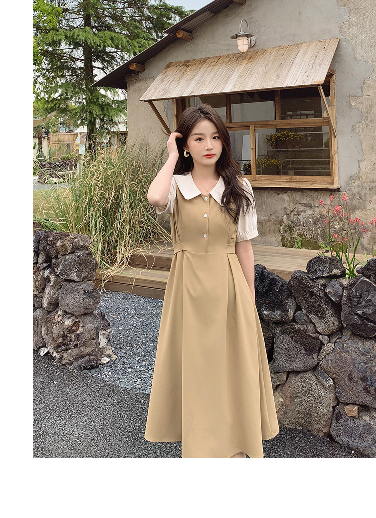 獨家訂製│韓系氣質感撞色翻領收腰連衣裙(06H6524)