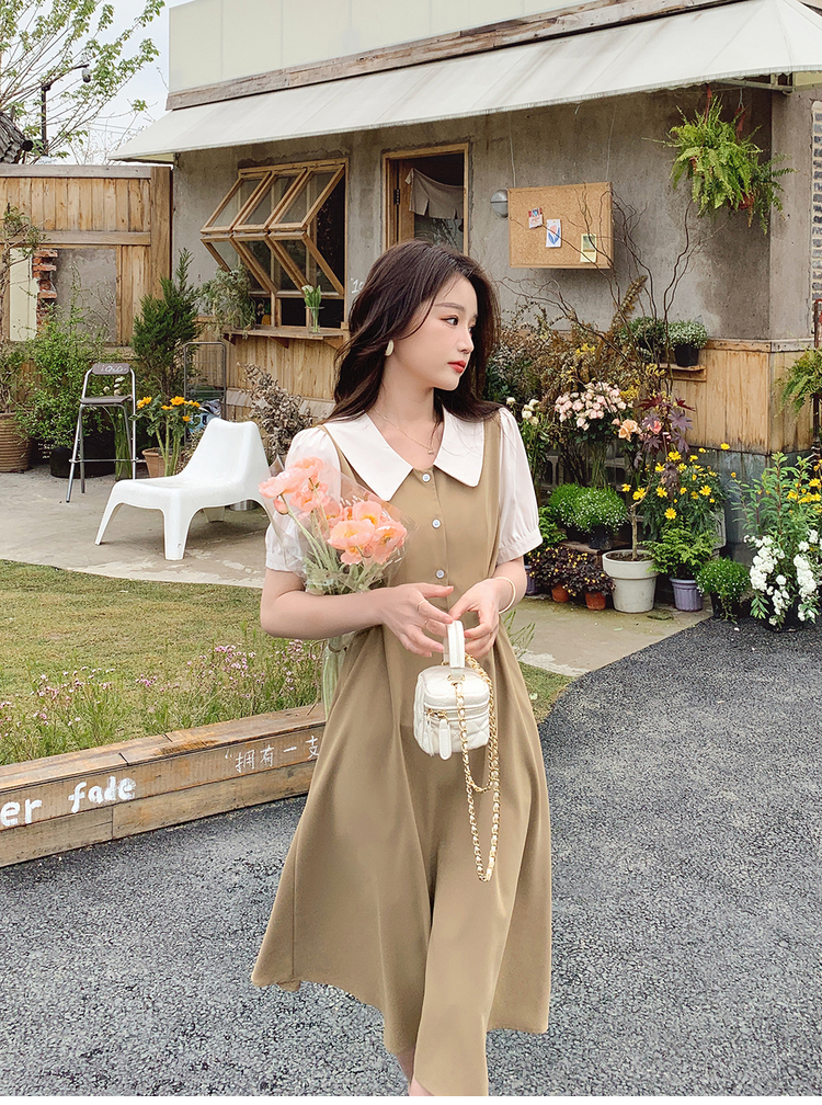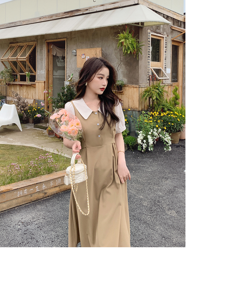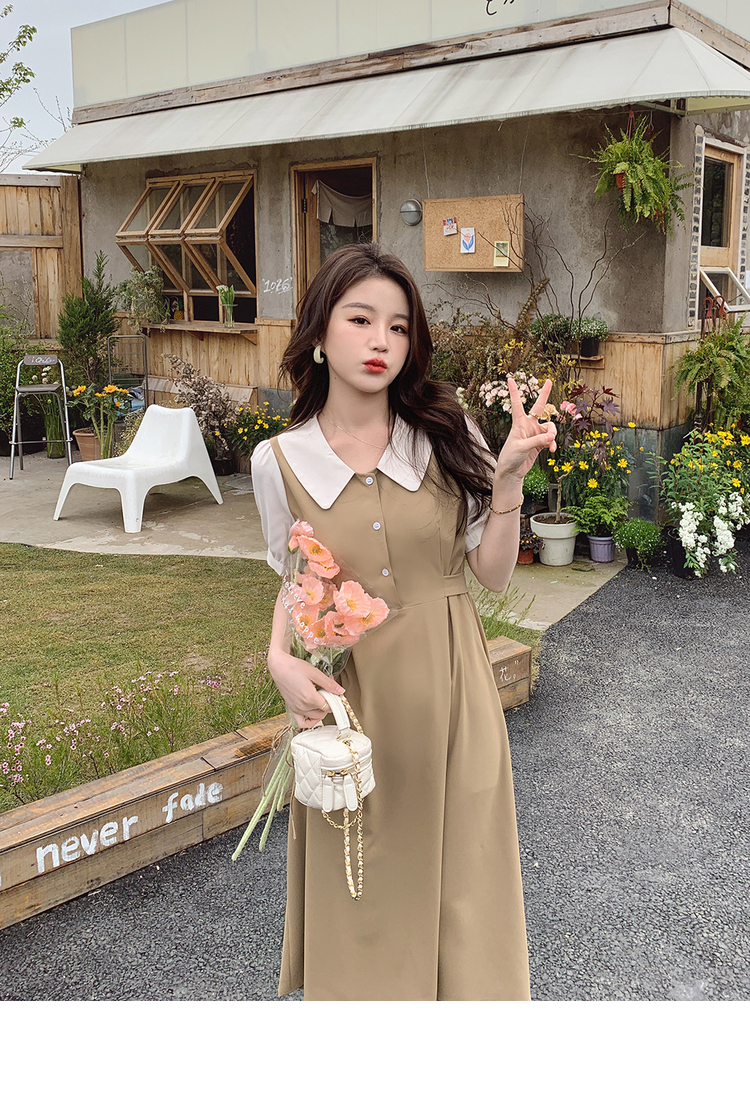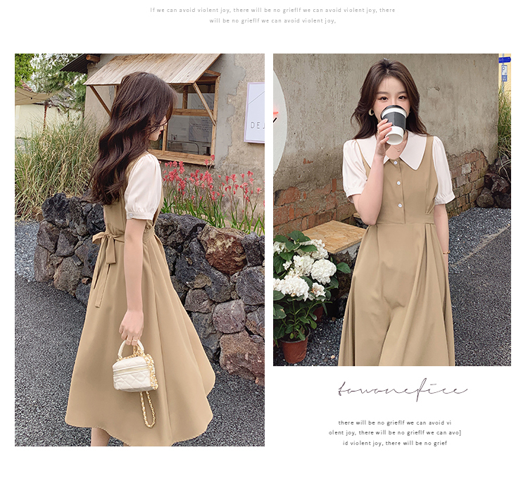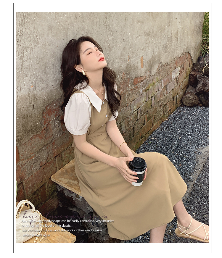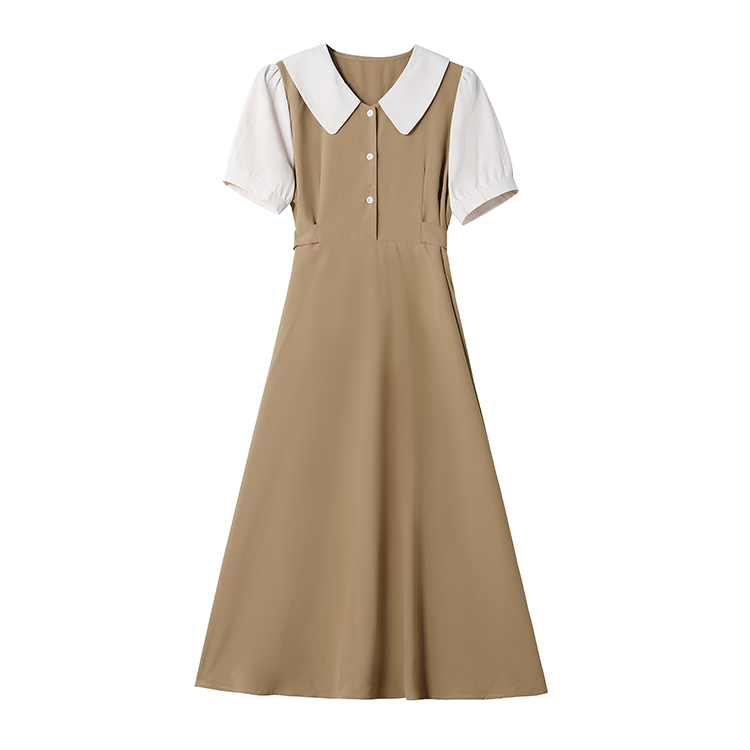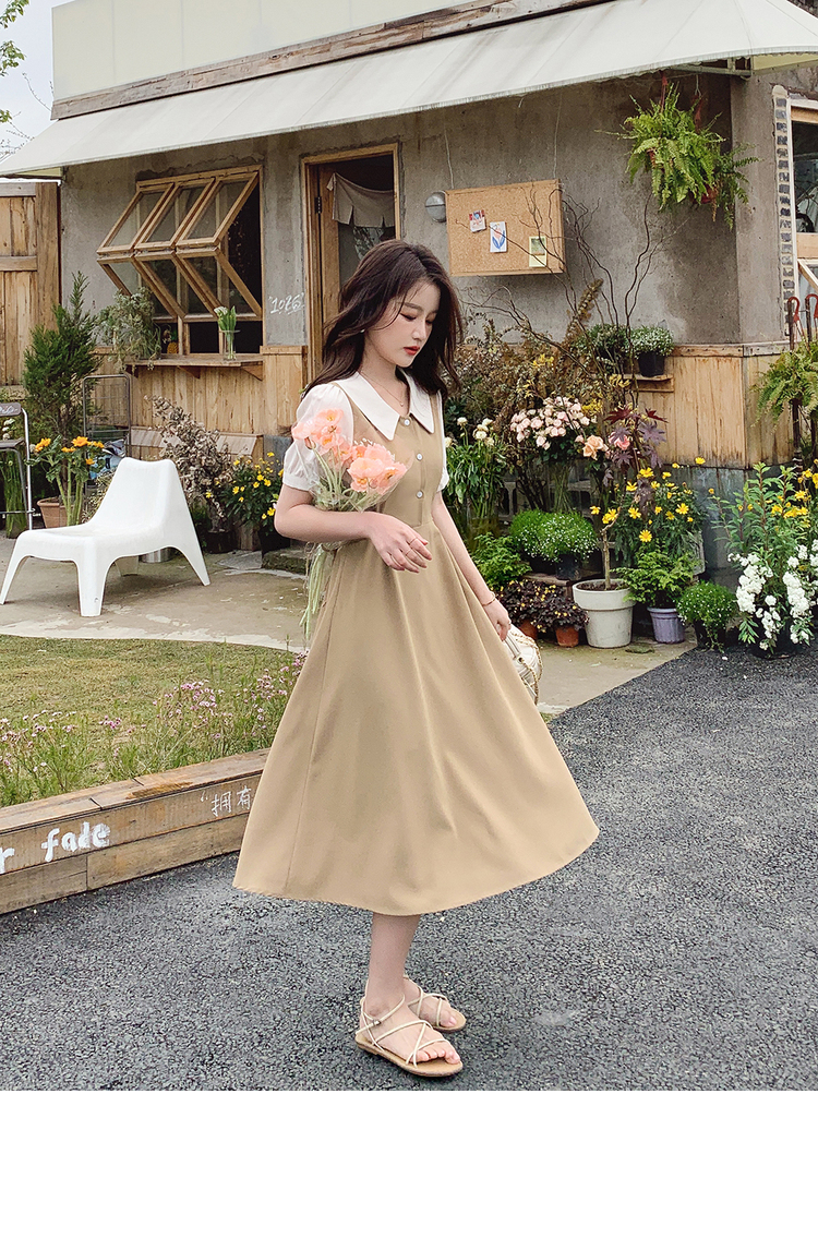 獨家訂製│韓系氣質感撞色翻領收腰連衣裙(06H6524)