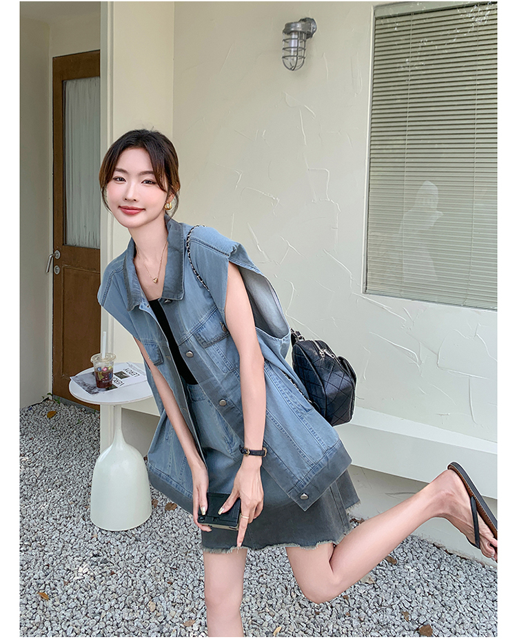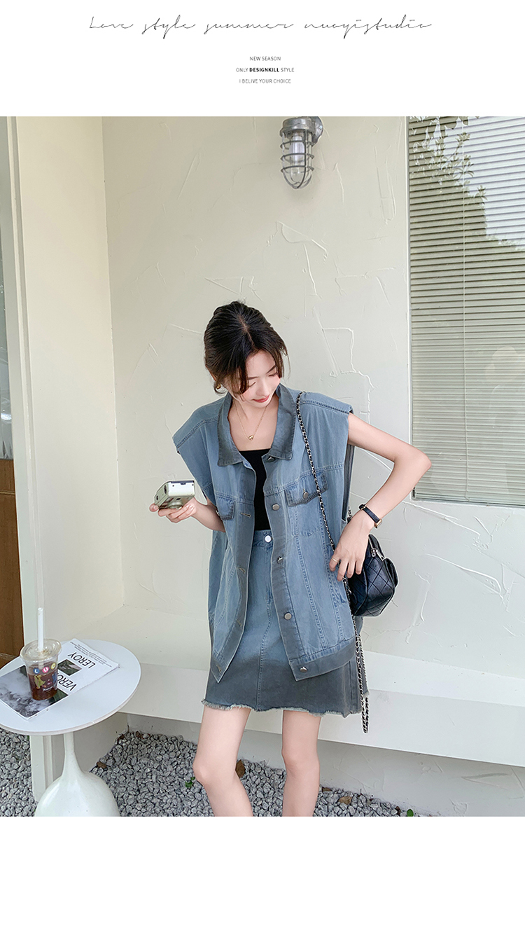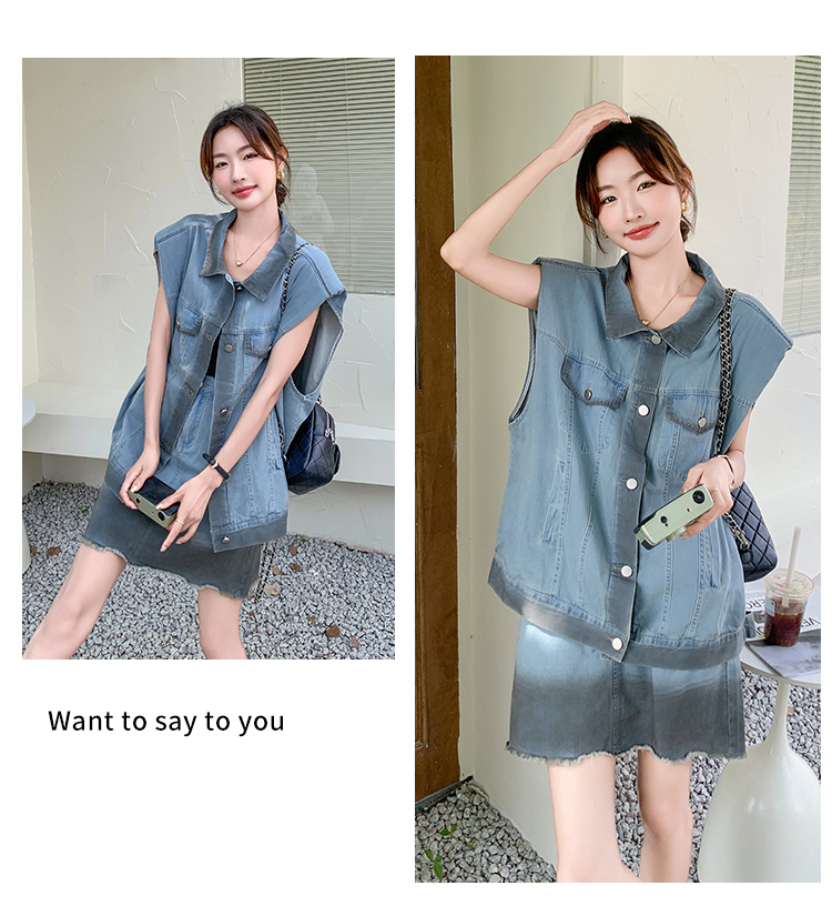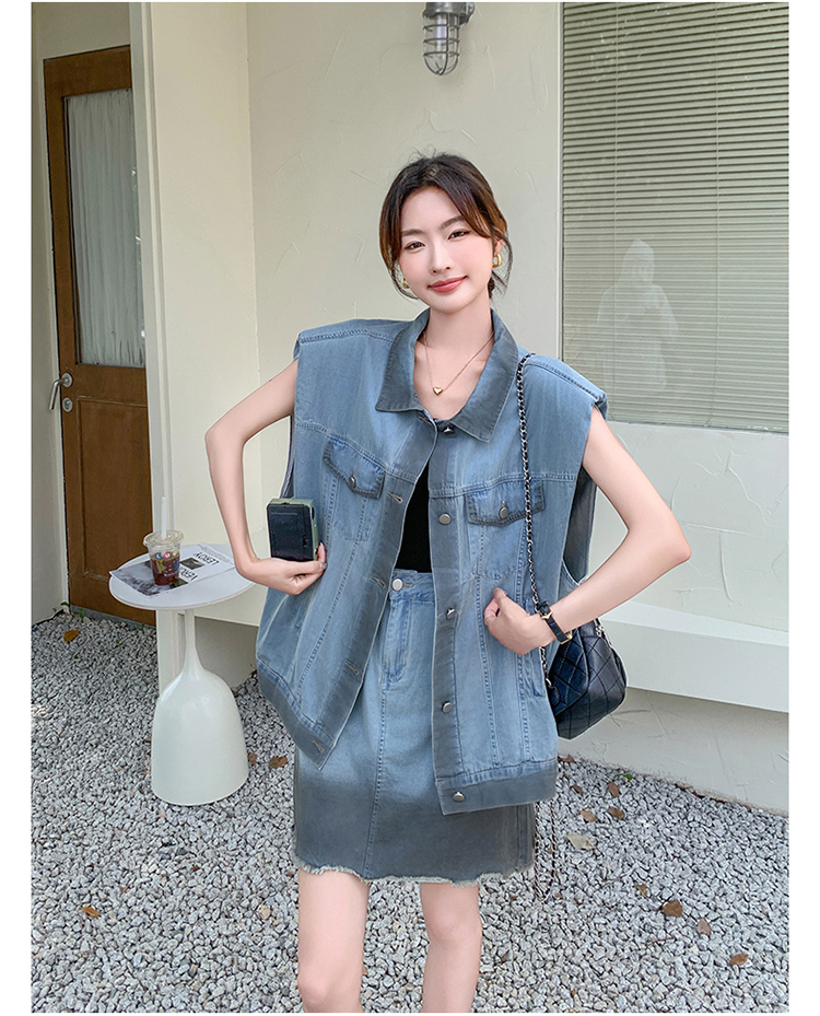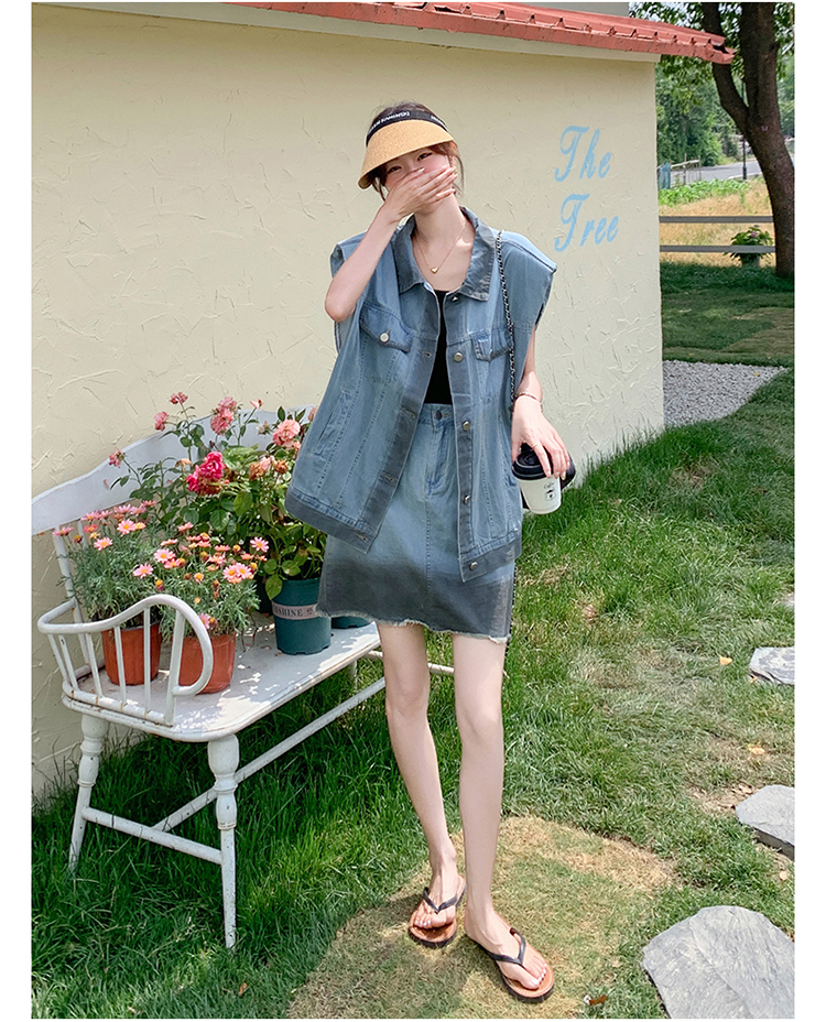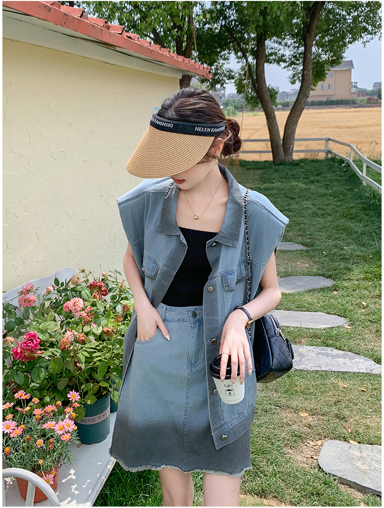 獨家訂製│韓系氣質感漸變色牛仔背心+A字裙兩件式套裝組(06H6538)