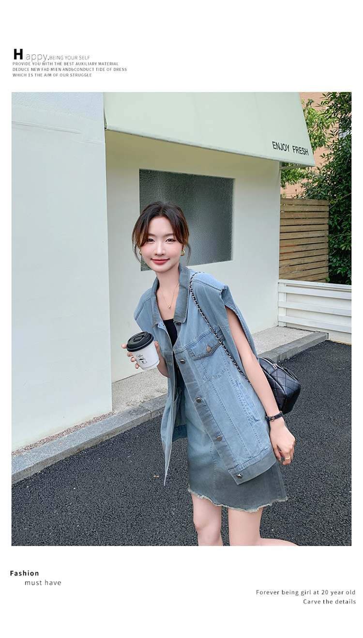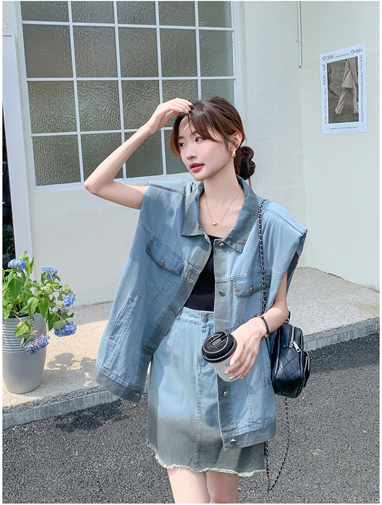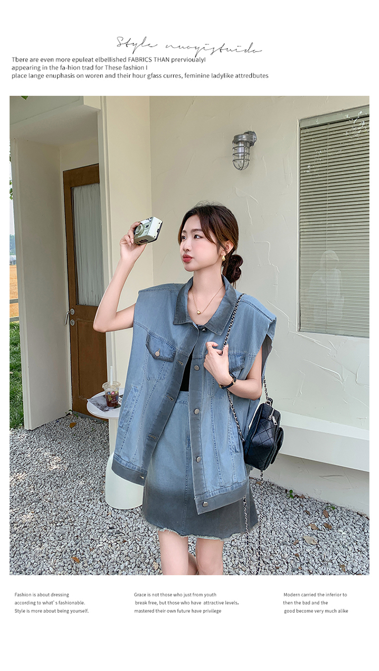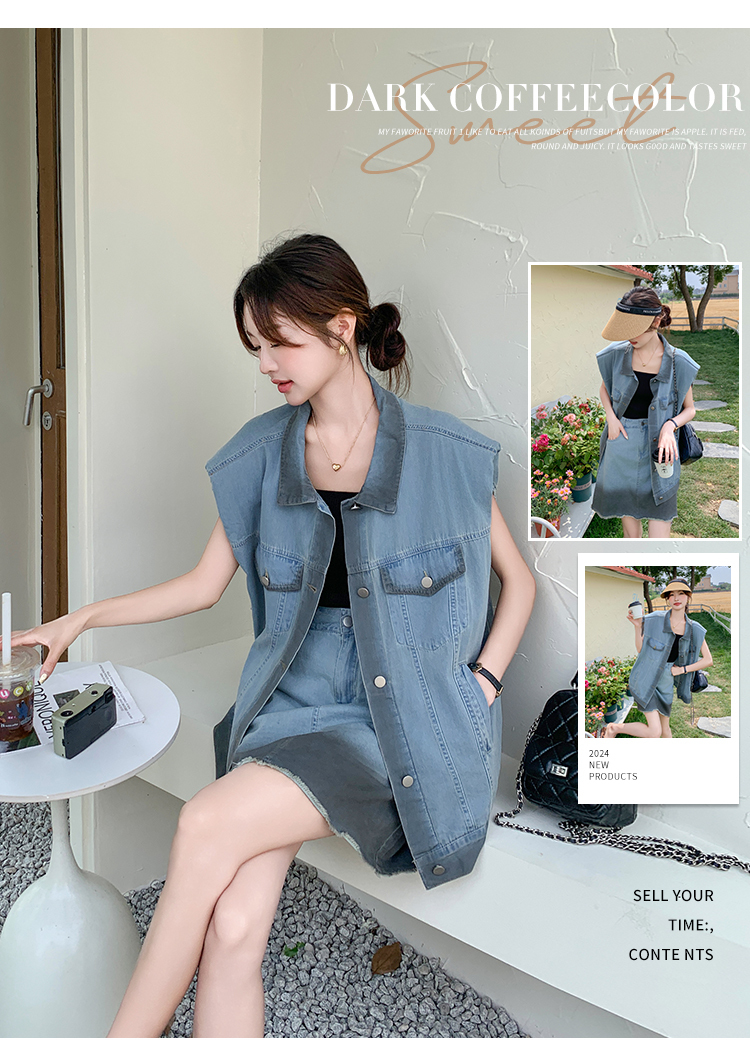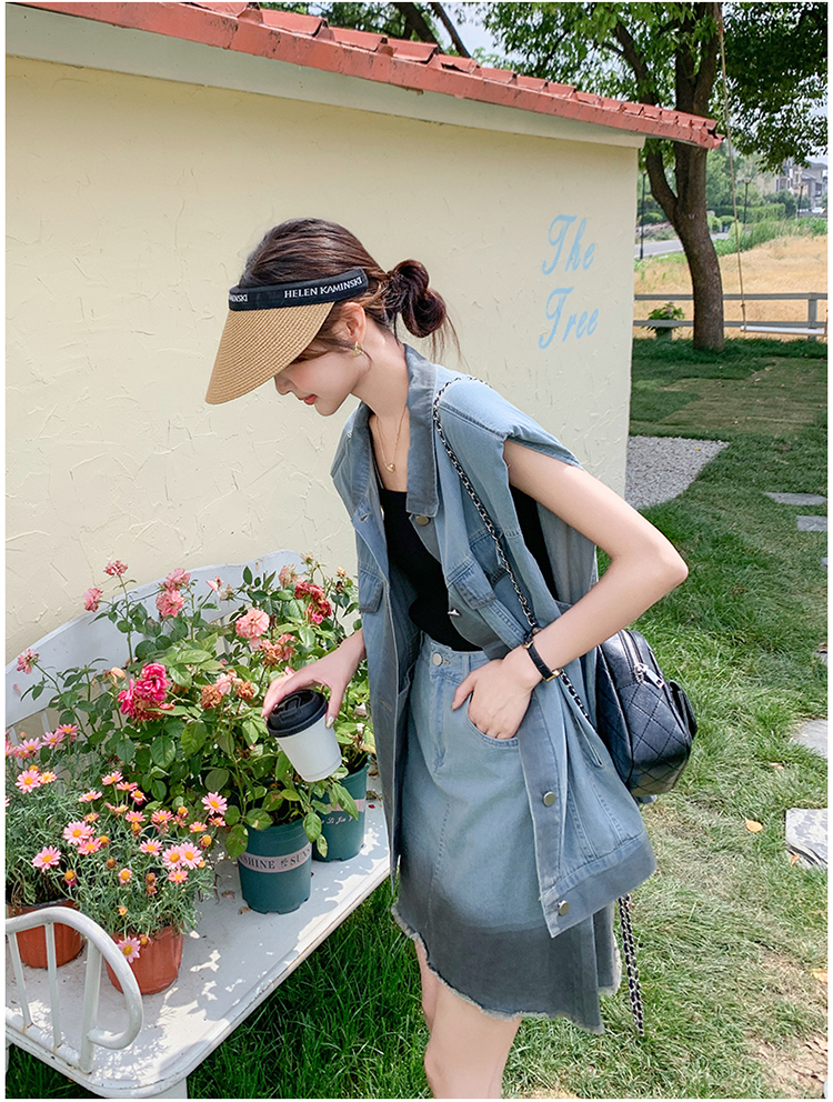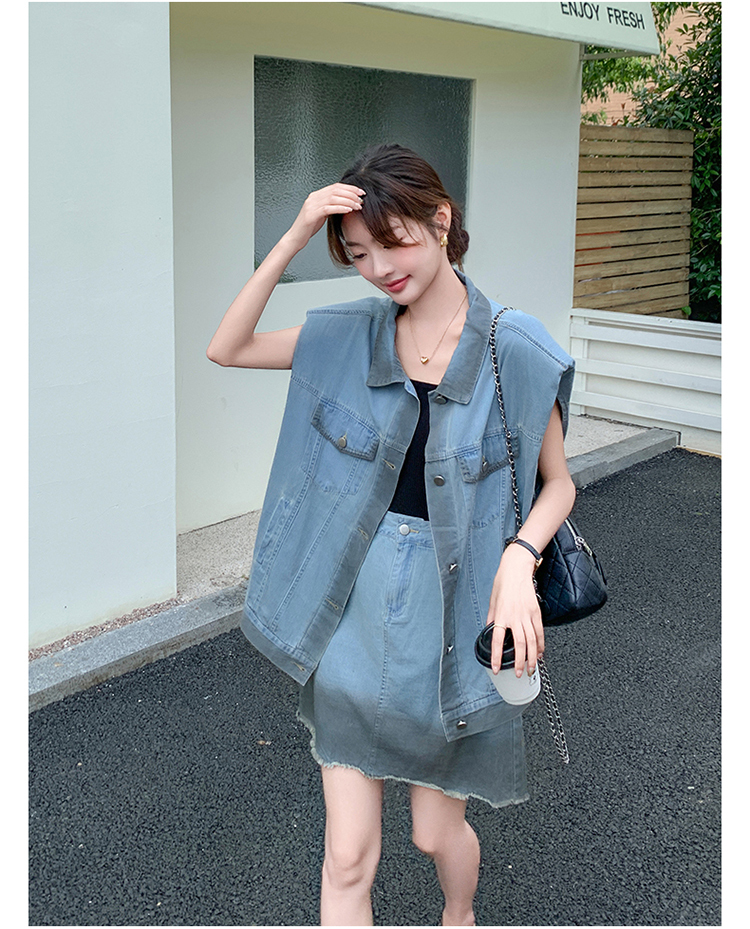 獨家訂製│韓系氣質感漸變色牛仔背心+A字裙兩件式套裝組(06H6538)