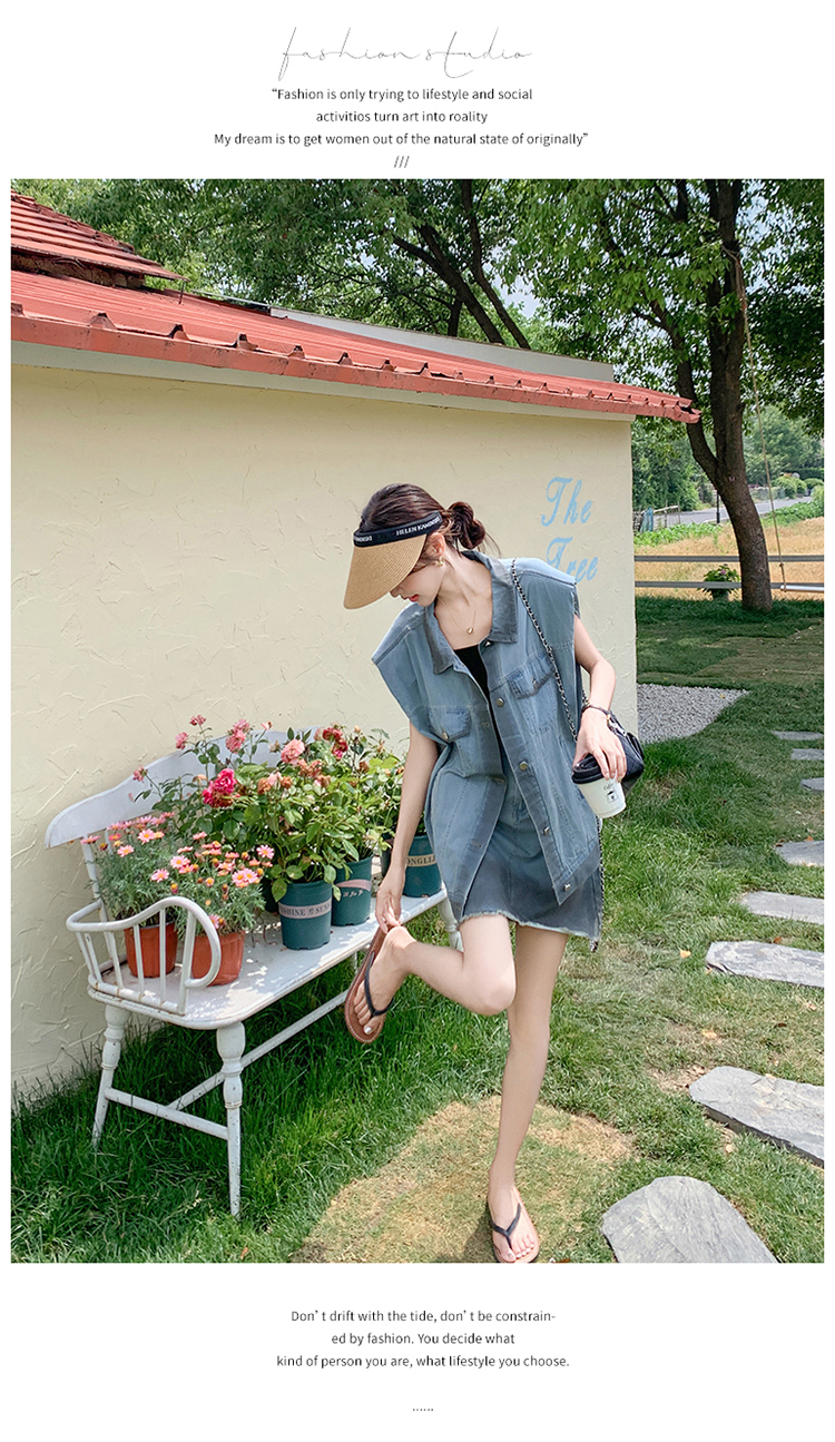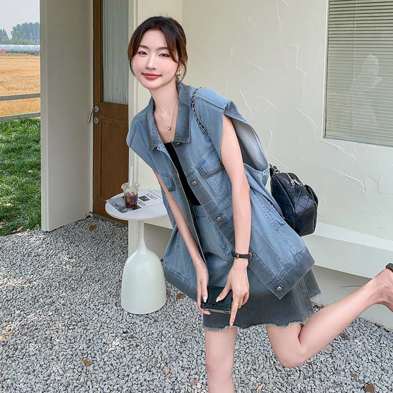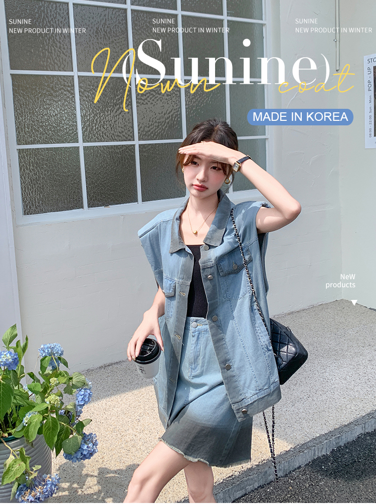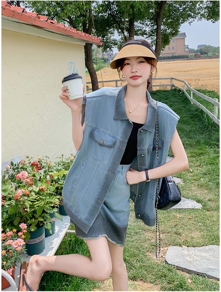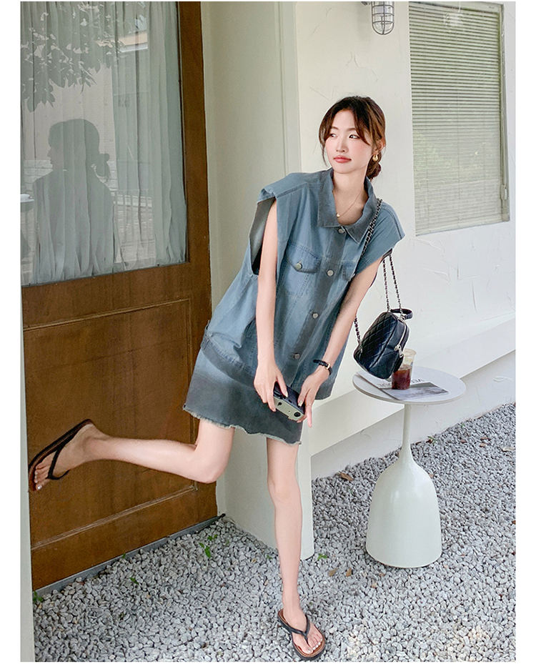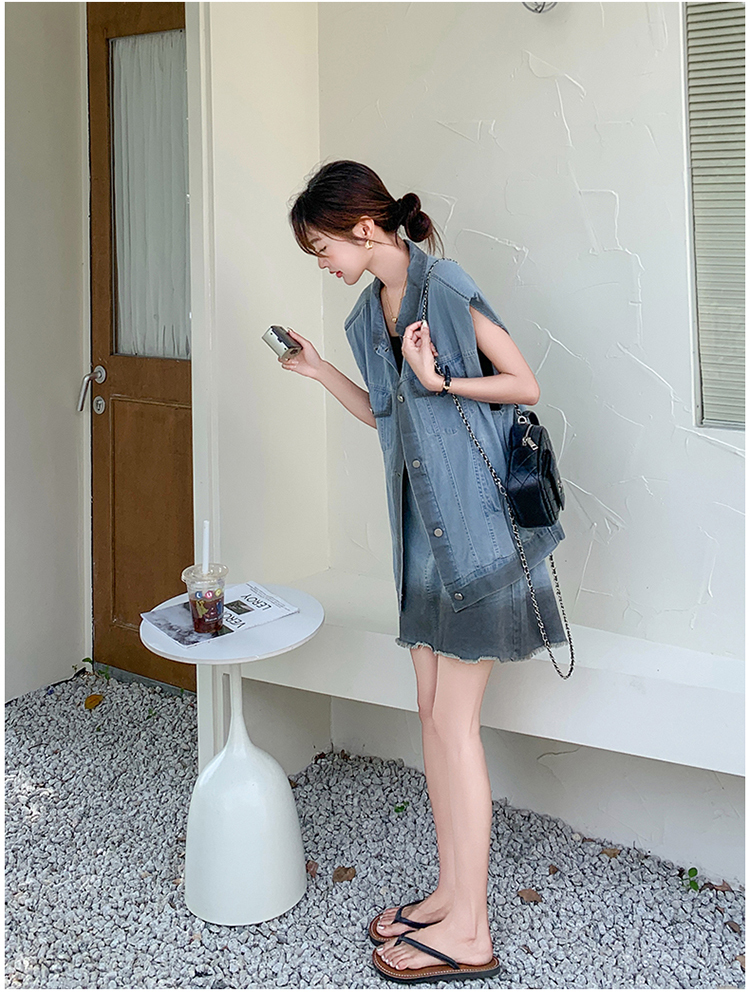 獨家訂製│韓系氣質感漸變色牛仔背心+A字裙兩件式套裝組(06H6538)