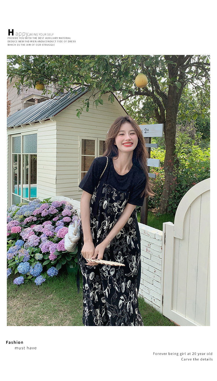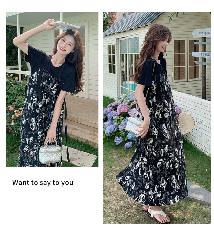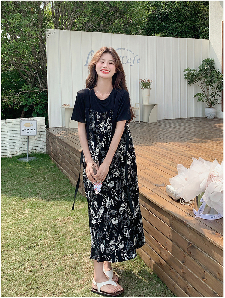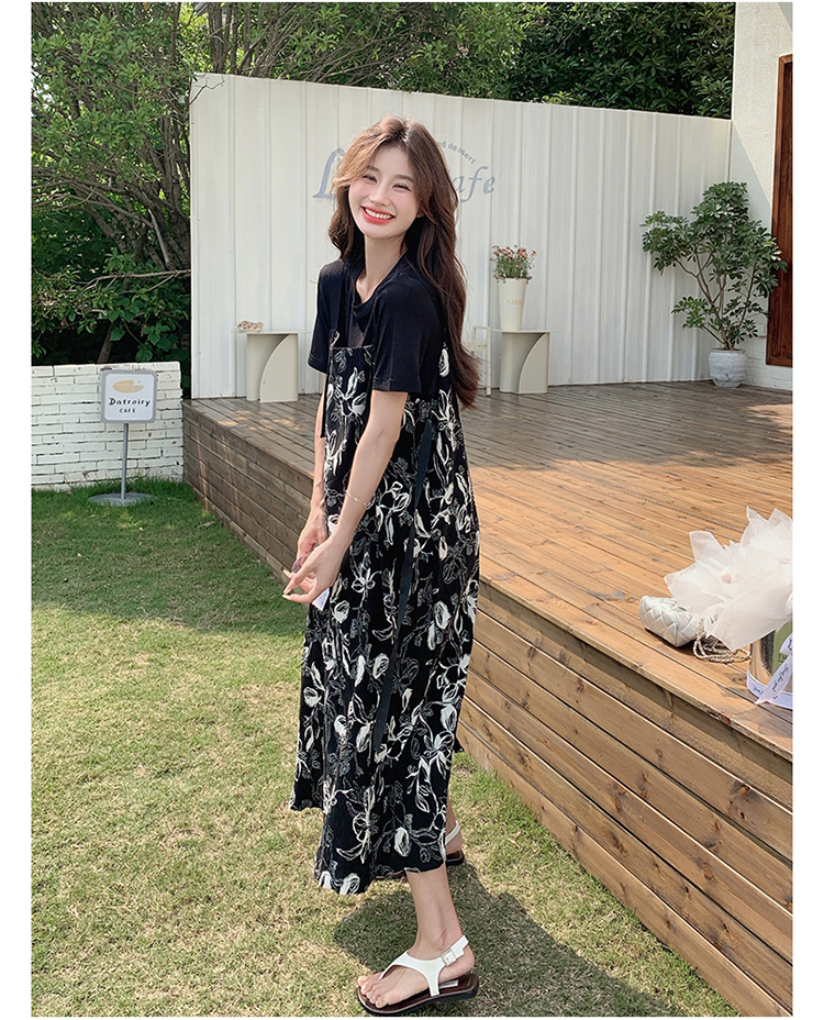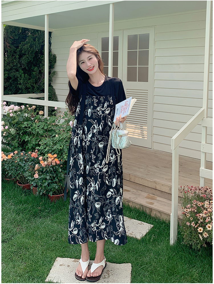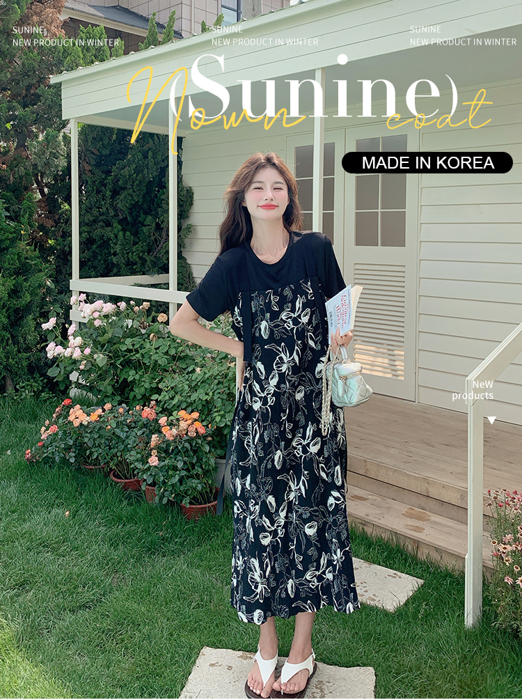 獨家訂製│韓系甜美感T恤+碎花吊帶裙兩件式套裝組(06H6552)