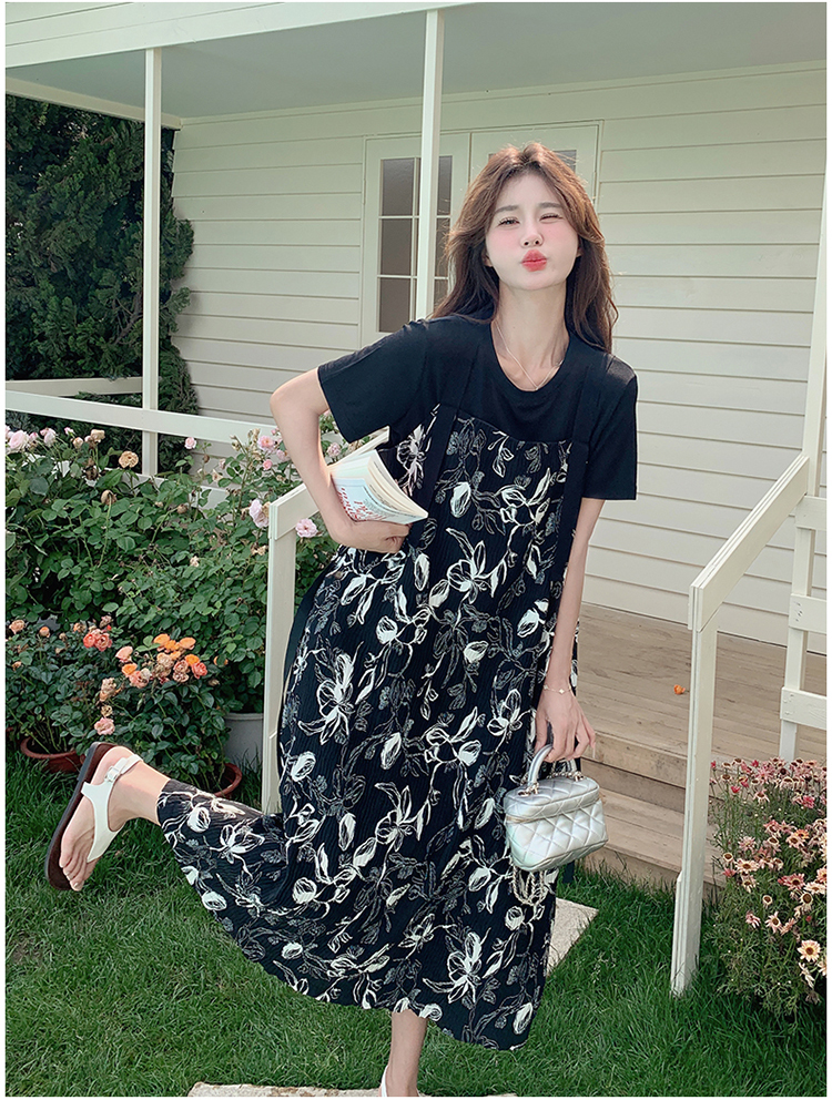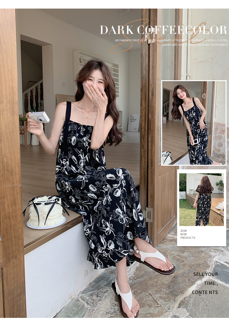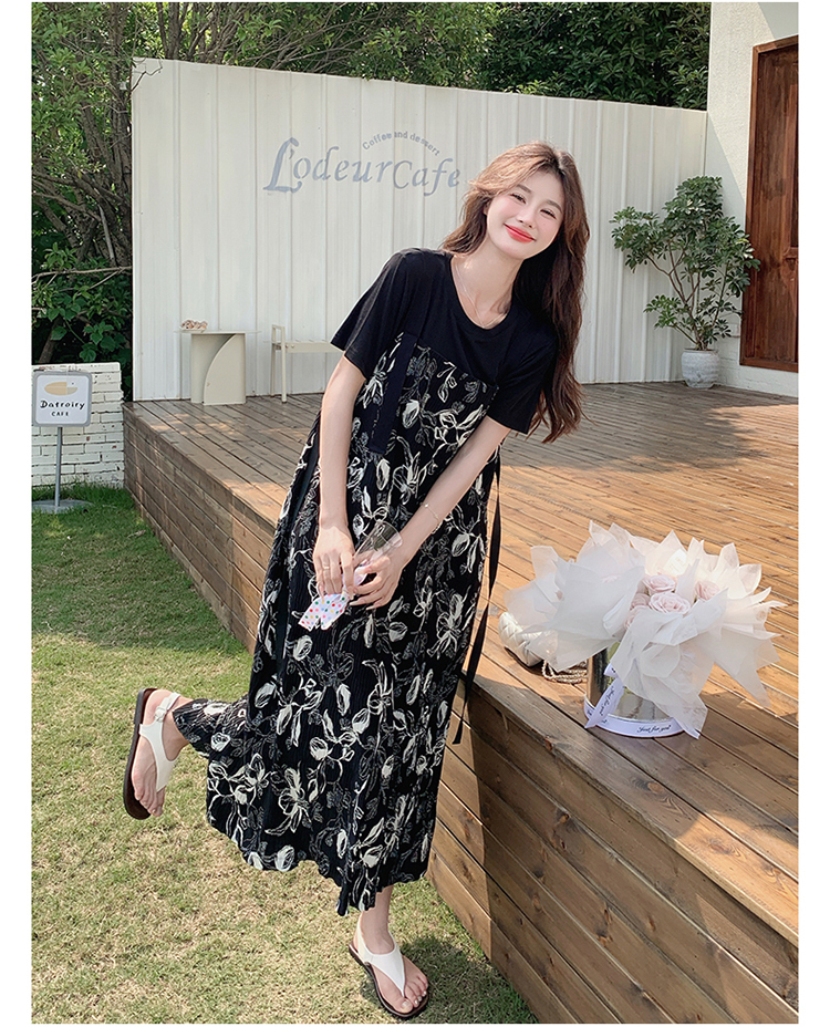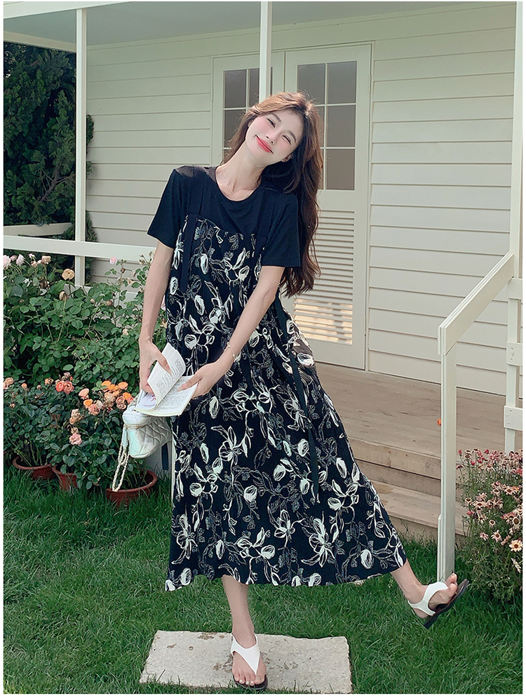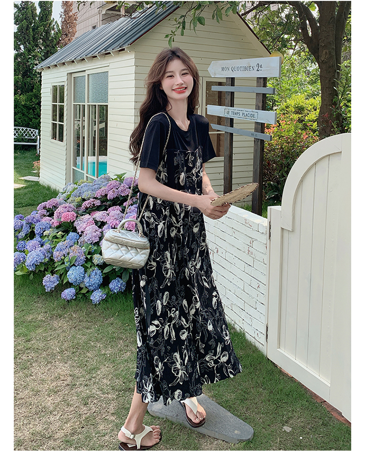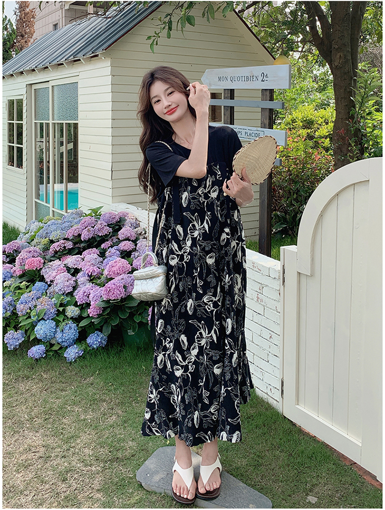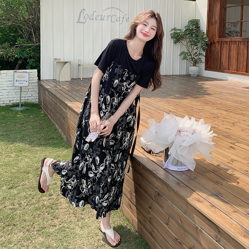 獨家訂製│韓系甜美感T恤+碎花吊帶裙兩件式套裝組(06H6552)