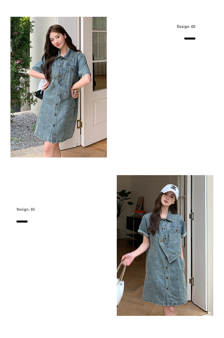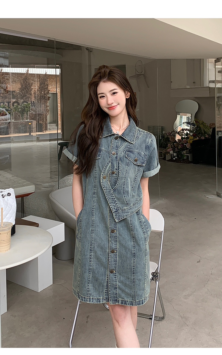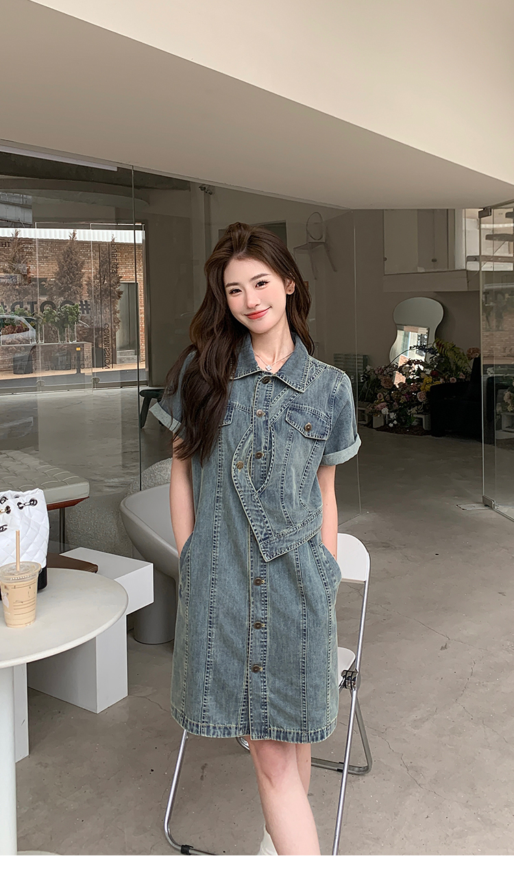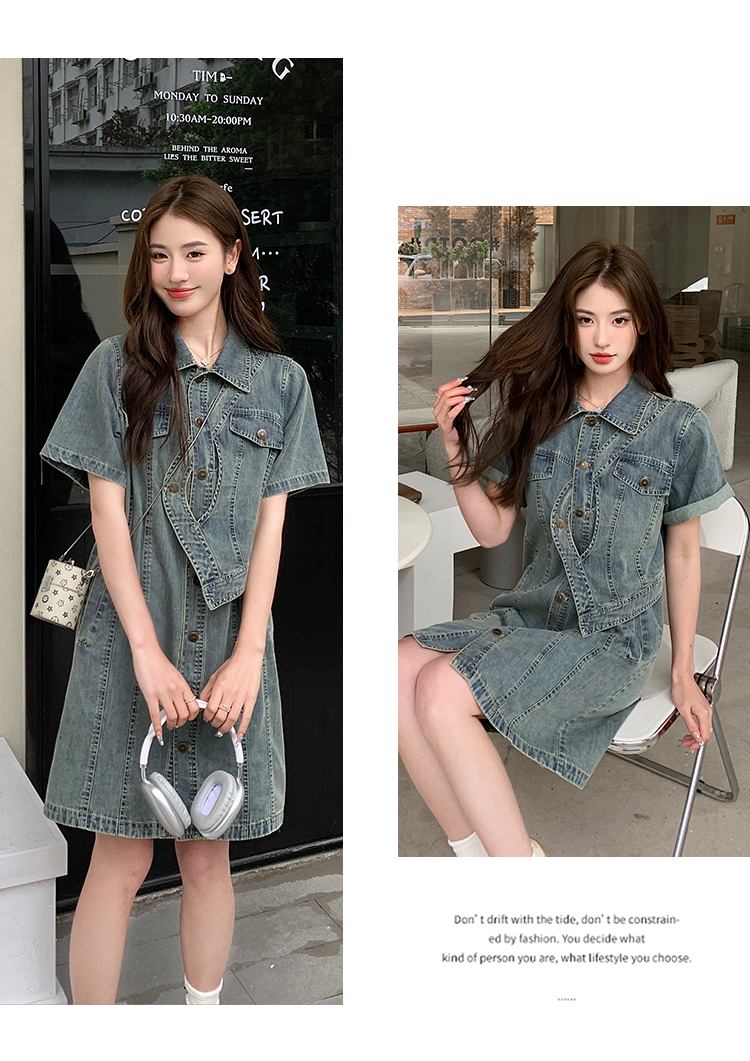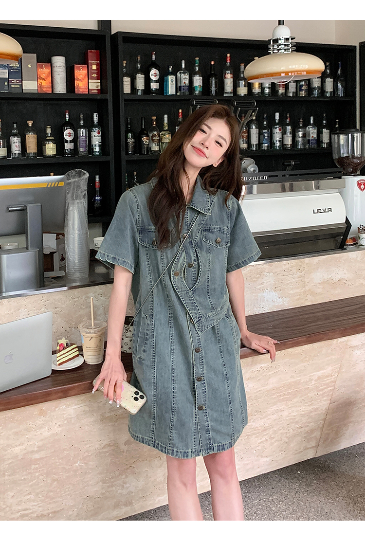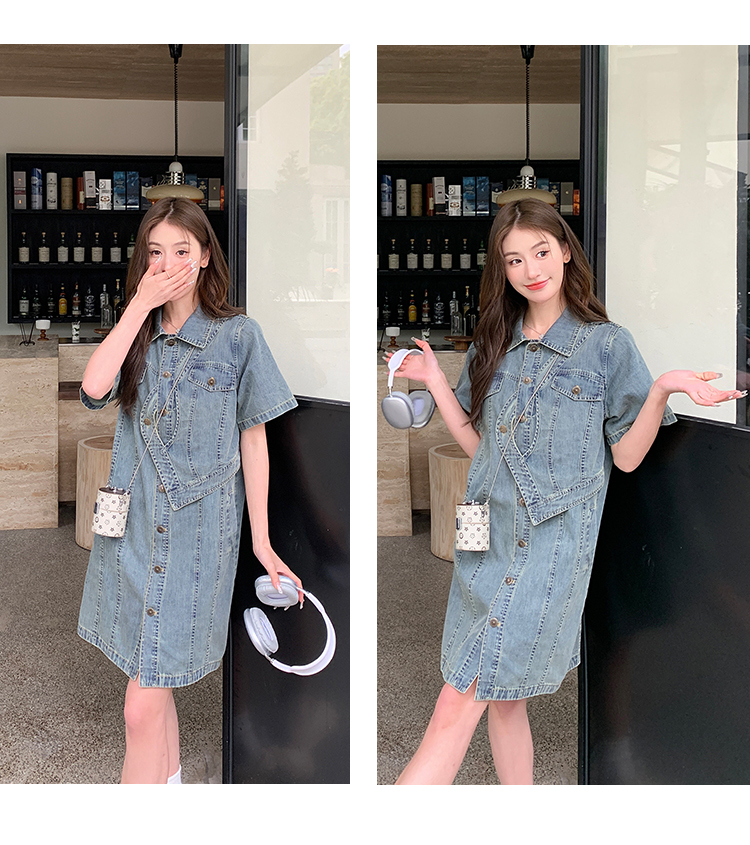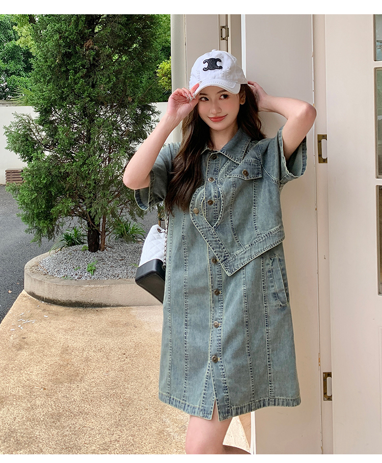 獨家訂製│韓系甜酷風拼接造型襯衫牛仔裙(06H6561)
