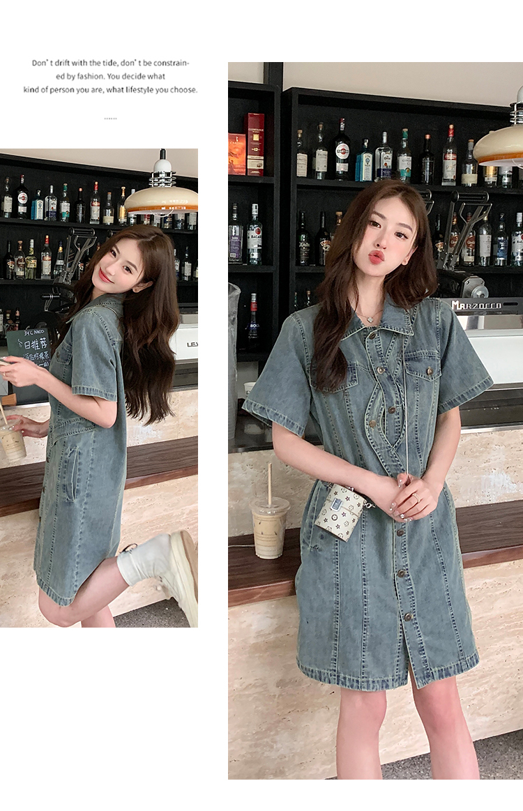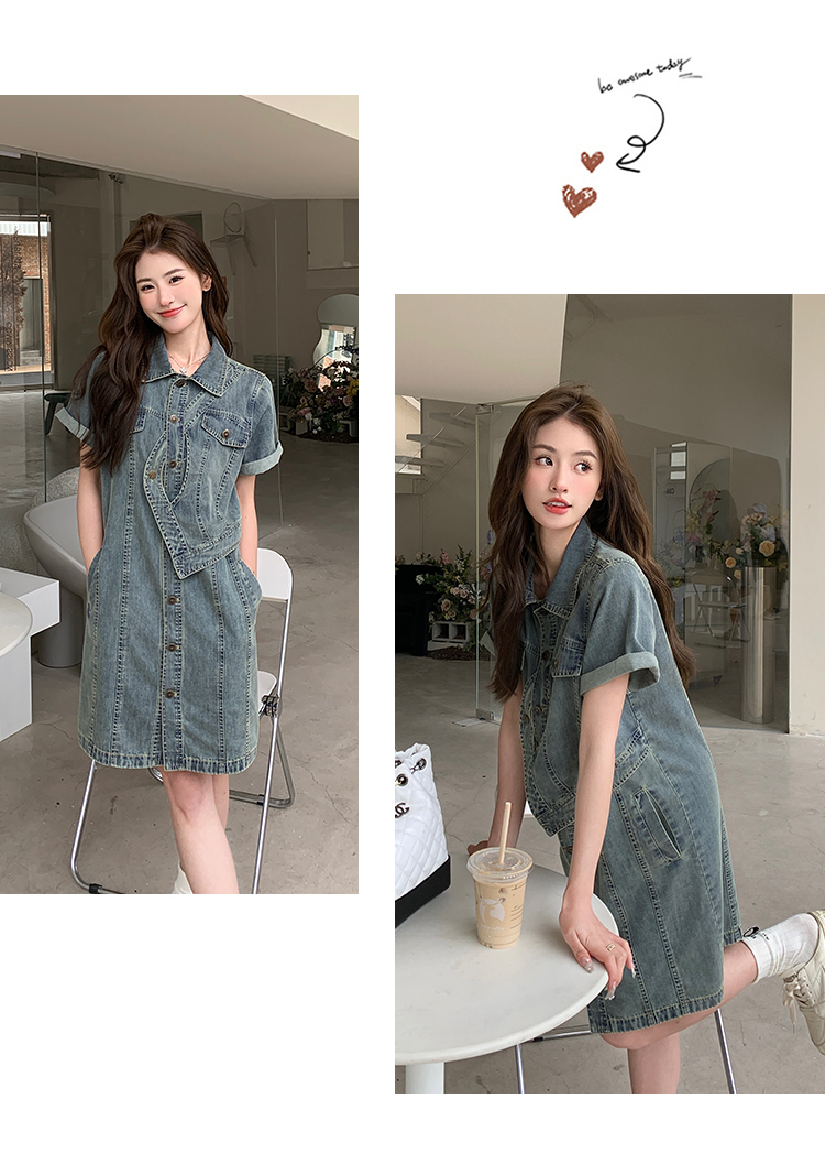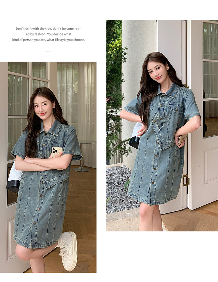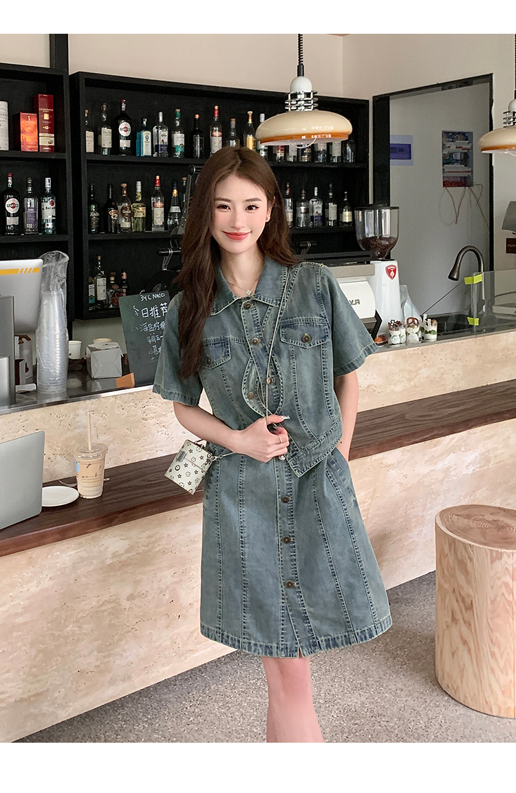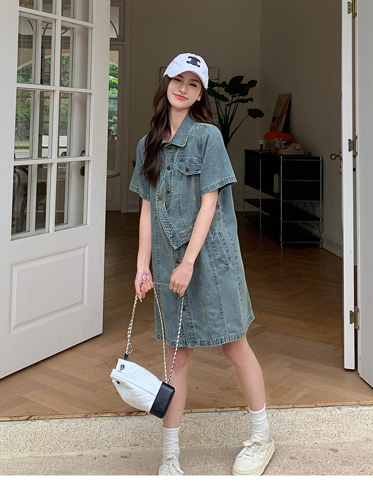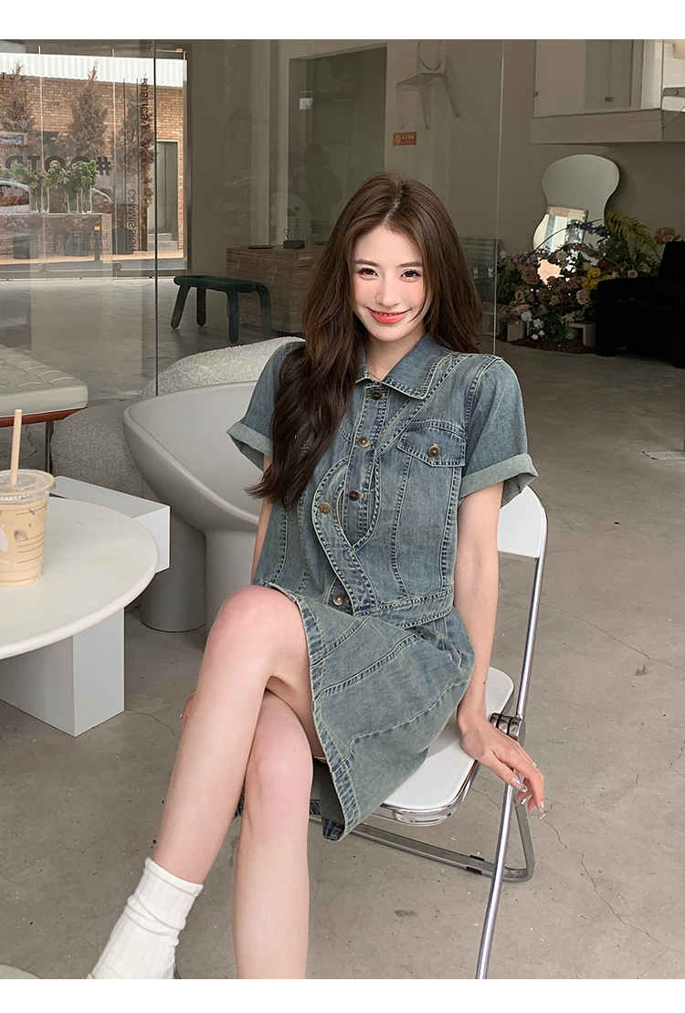 獨家訂製│韓系甜酷風拼接造型襯衫牛仔裙(06H6561)