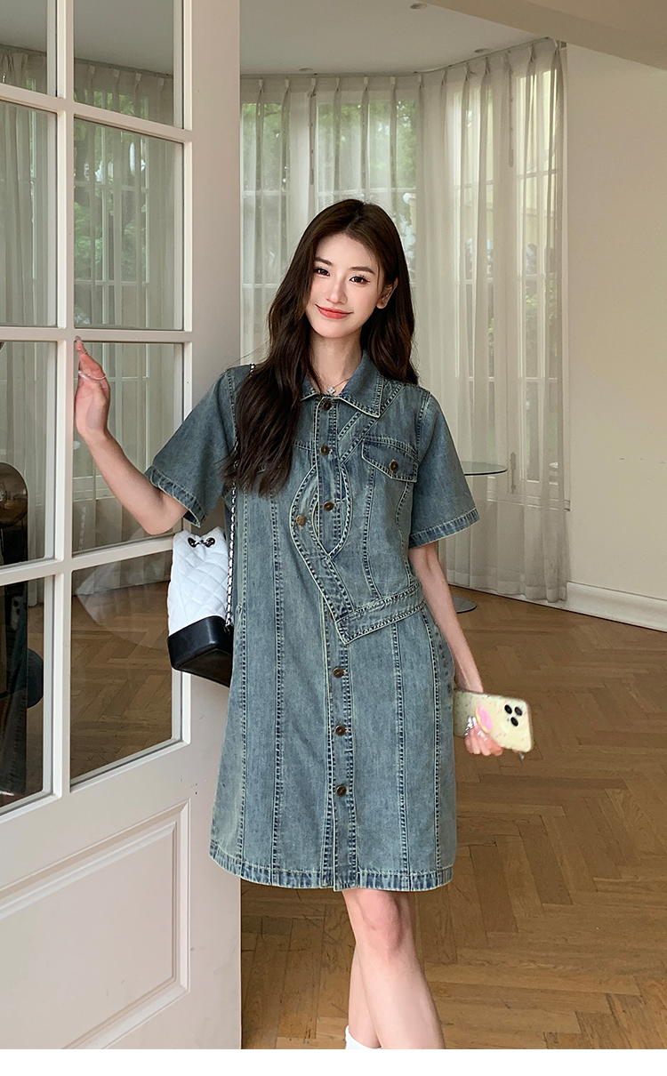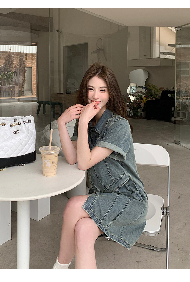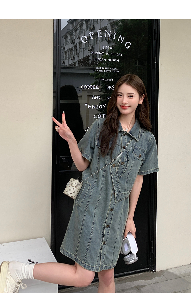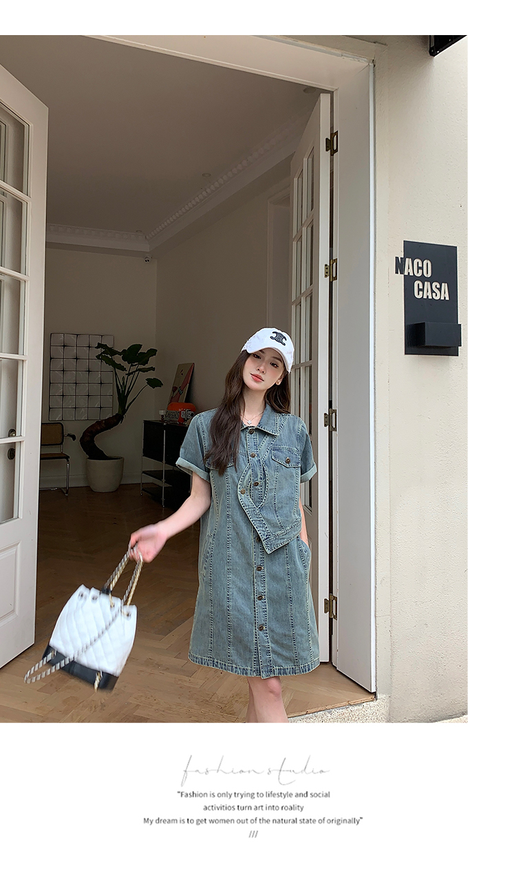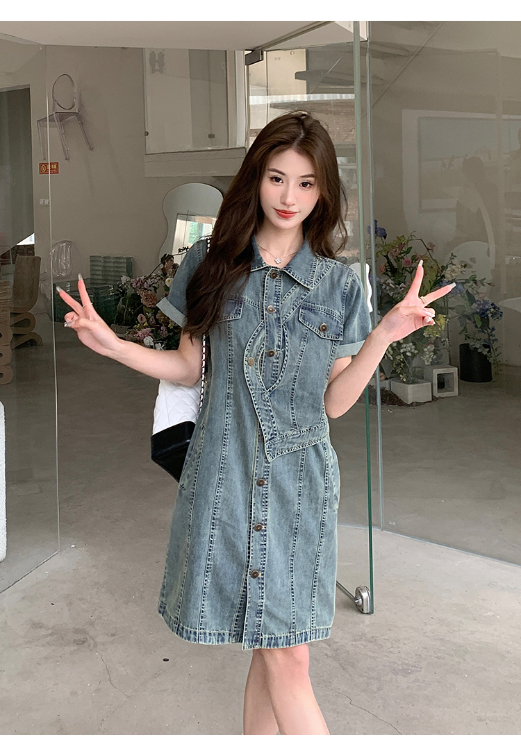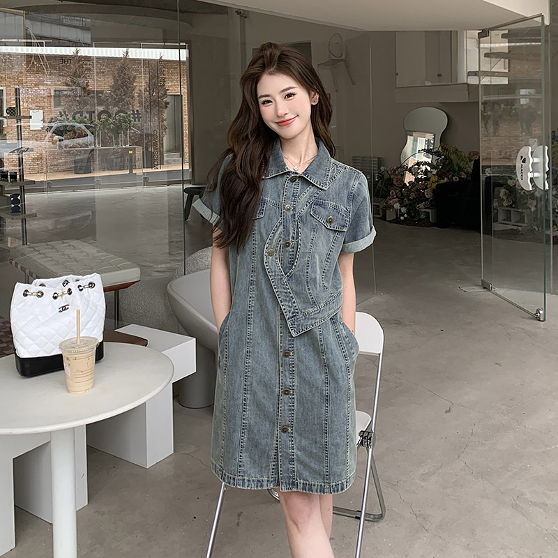 獨家訂製│韓系甜酷風拼接造型襯衫牛仔裙(06H6561)