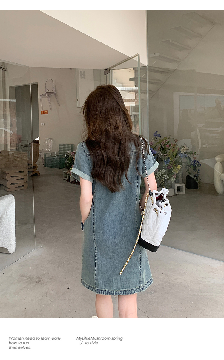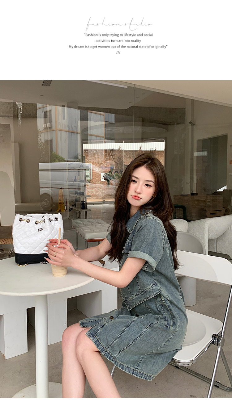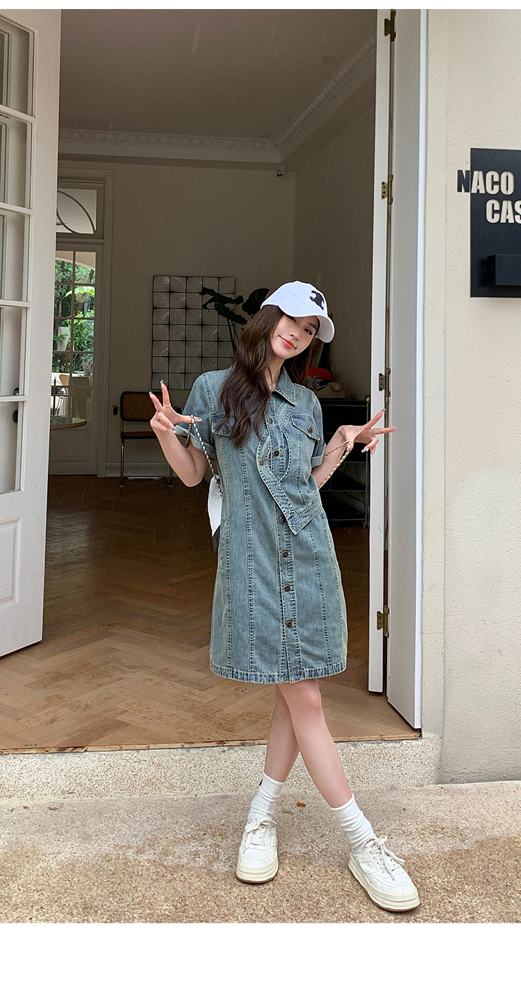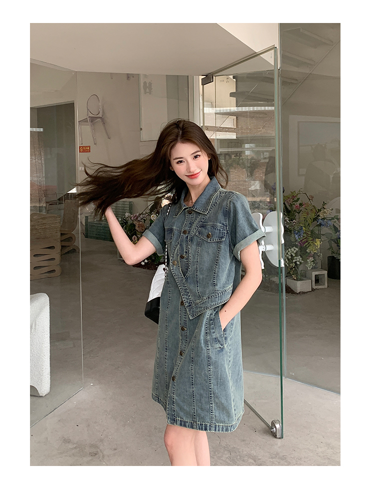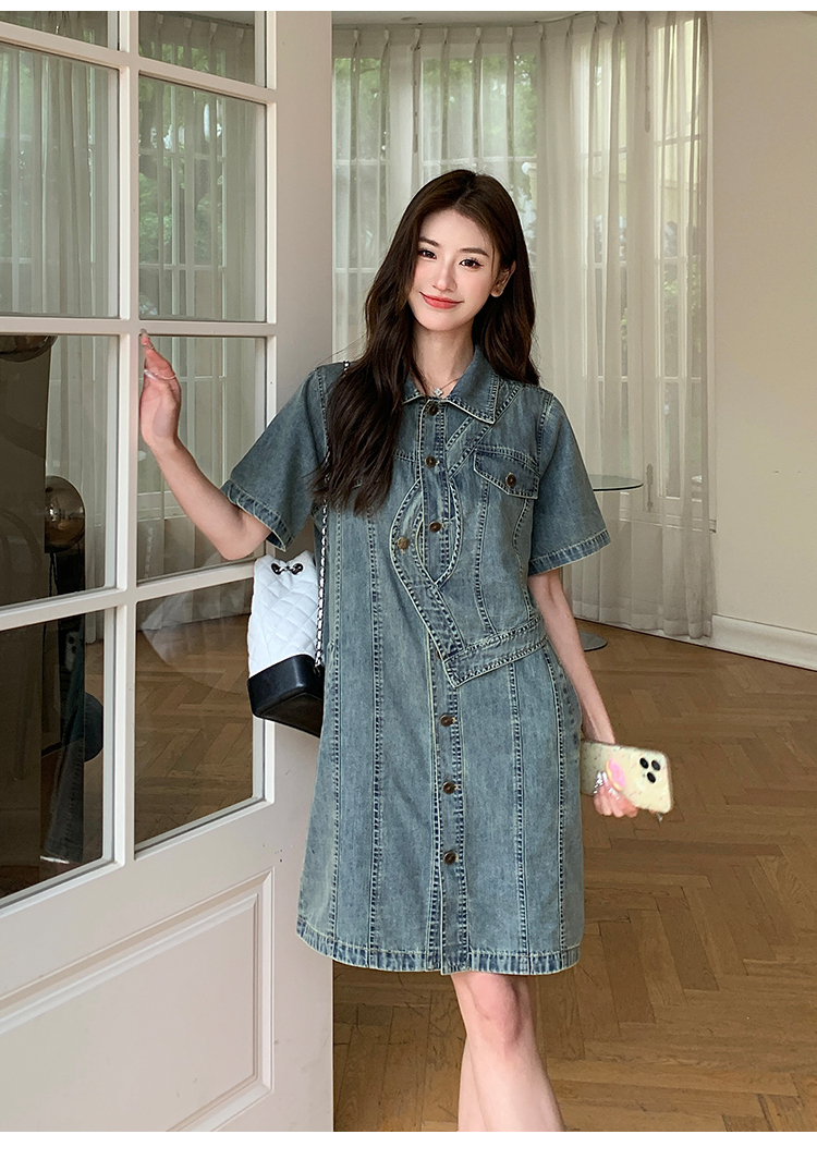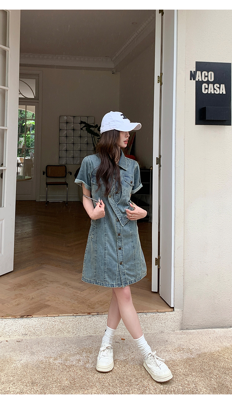 獨家訂製│韓系甜酷風拼接造型襯衫牛仔裙(06H6561)
