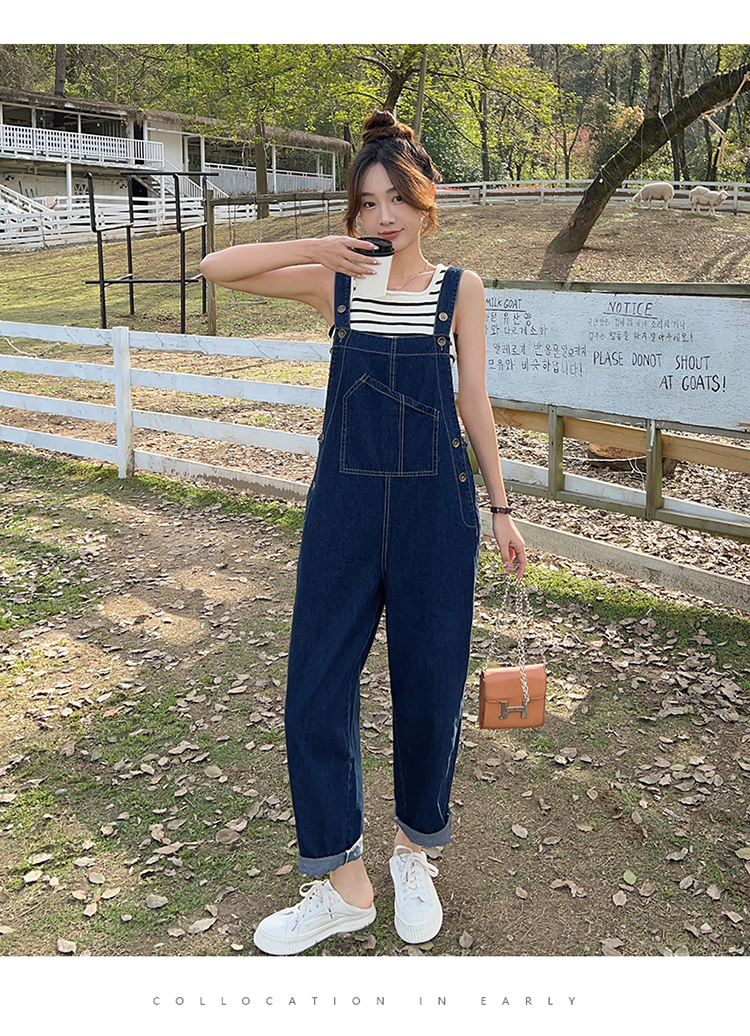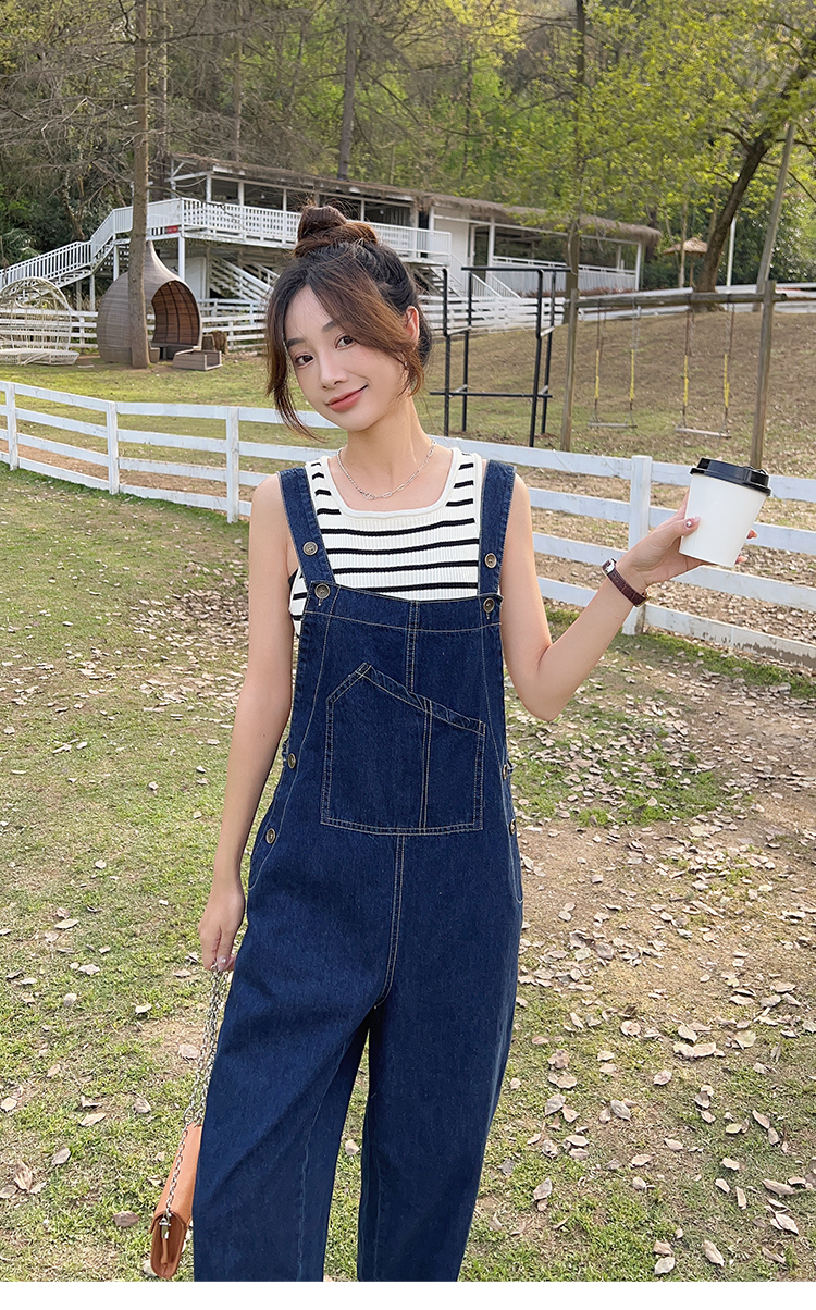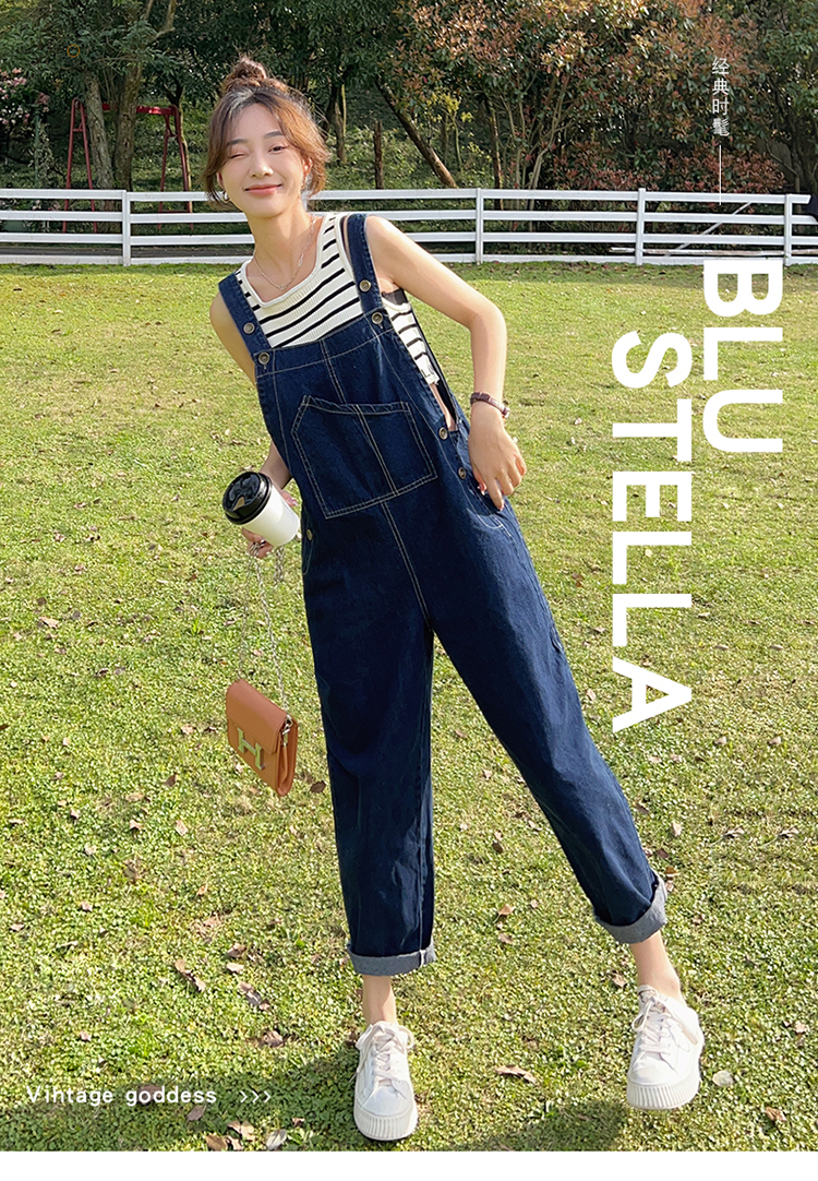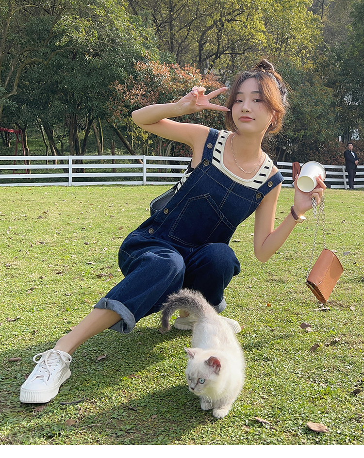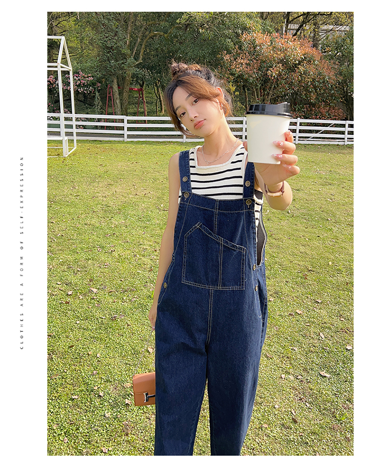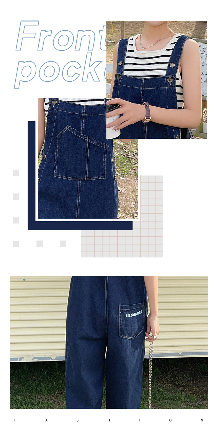 獨家訂製│韓系甜酷風不規則口袋牛仔吊帶褲(06H6566)