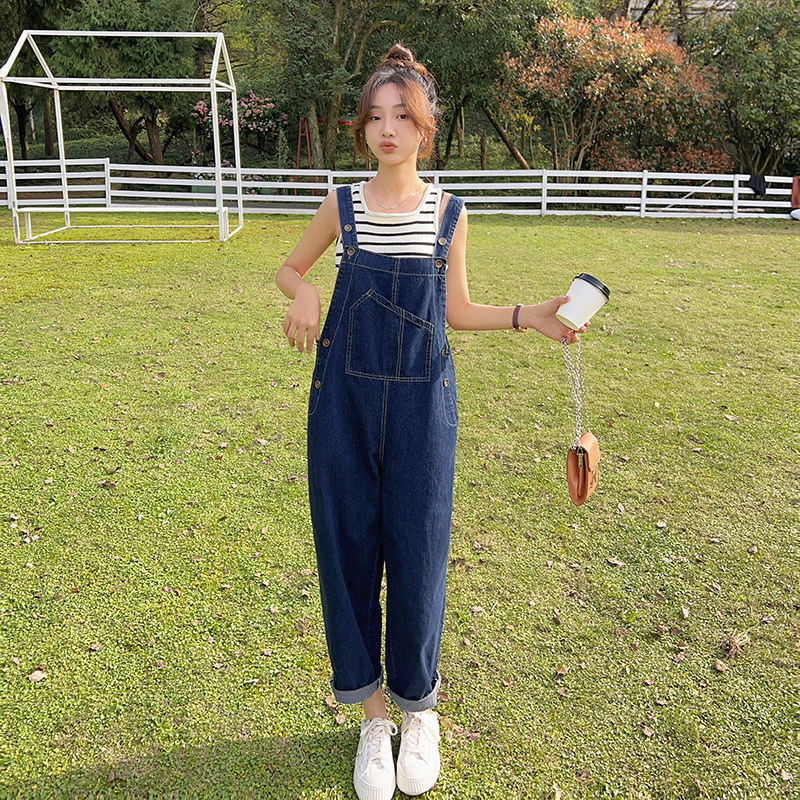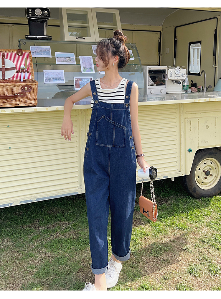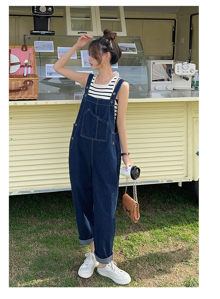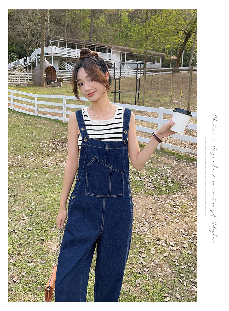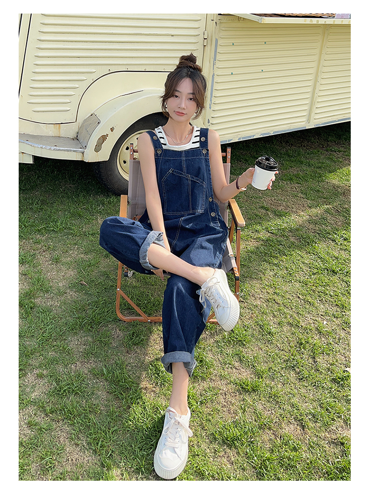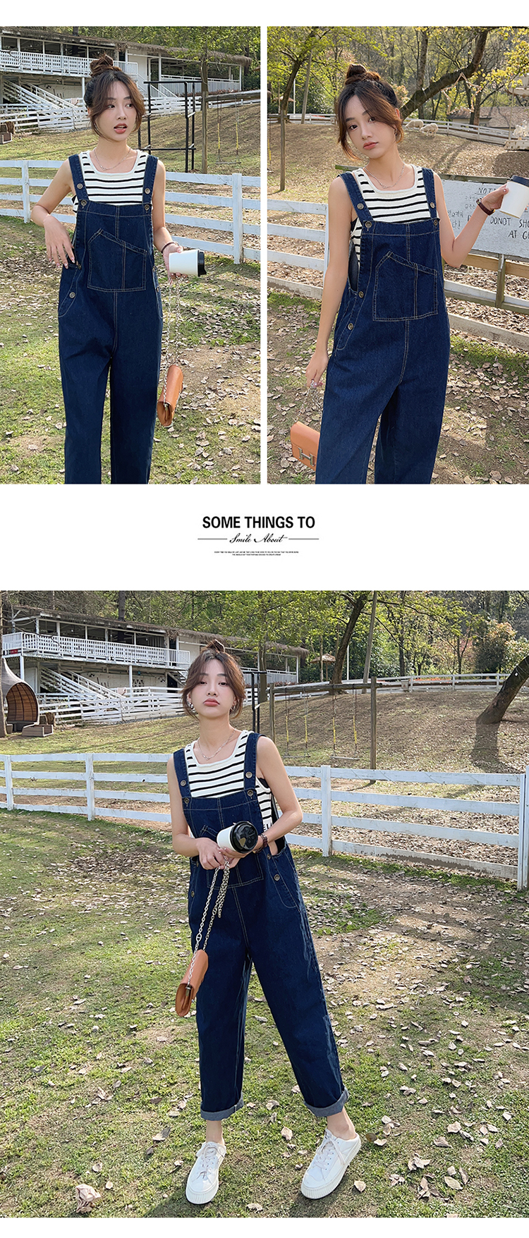 獨家訂製│韓系甜酷風不規則口袋牛仔吊帶褲(06H6566)