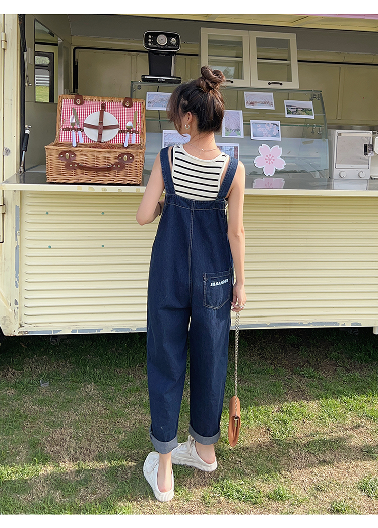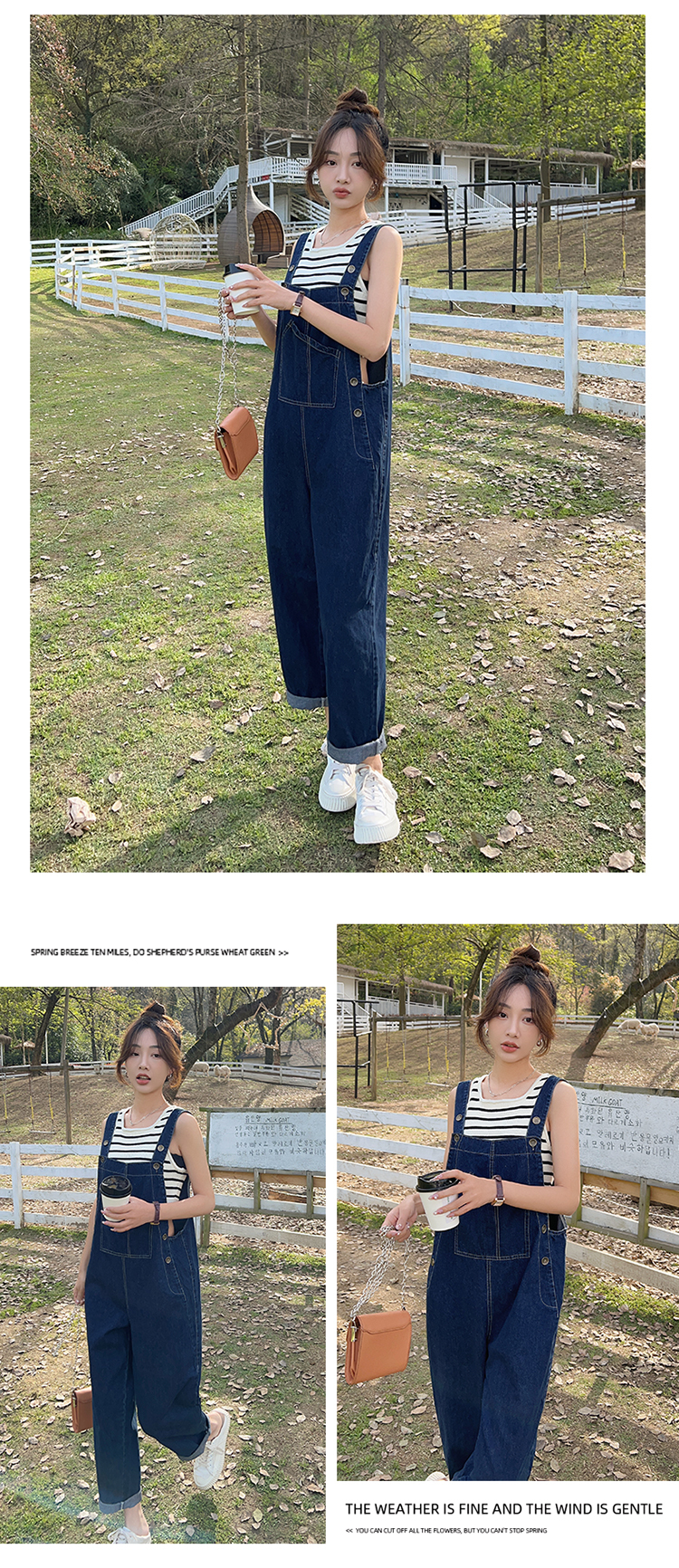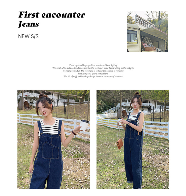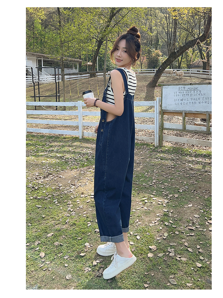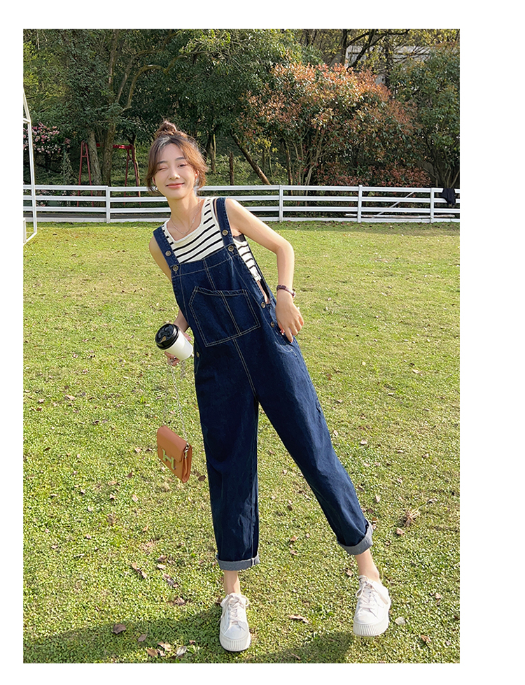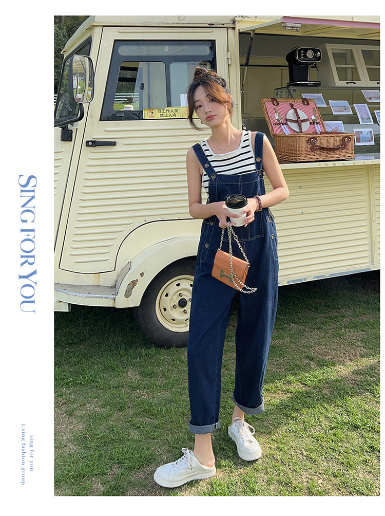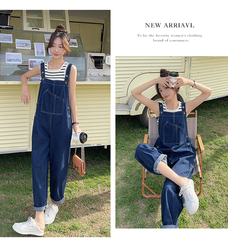 獨家訂製│韓系甜酷風不規則口袋牛仔吊帶褲(06H6566)
