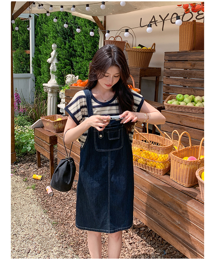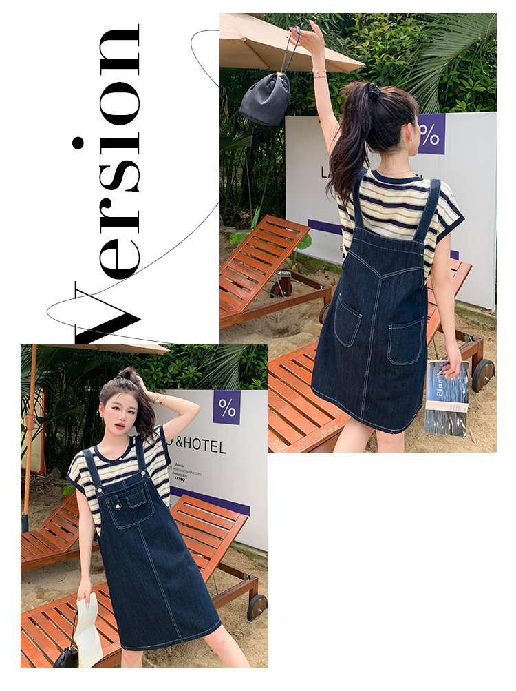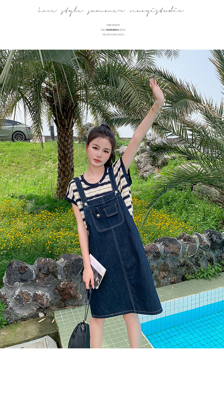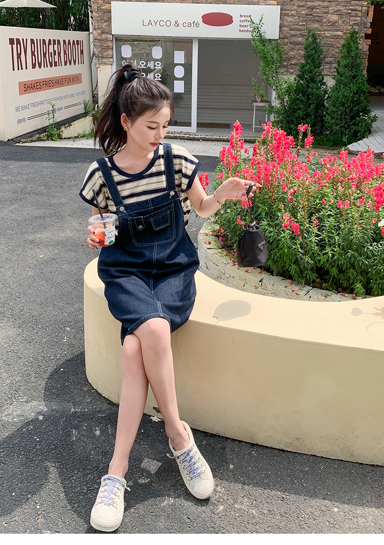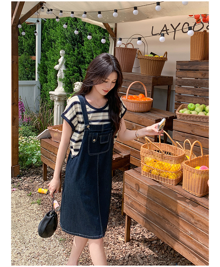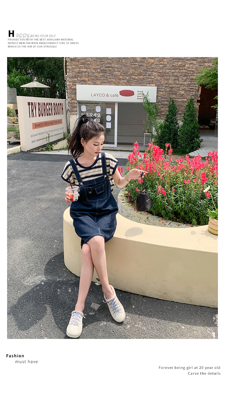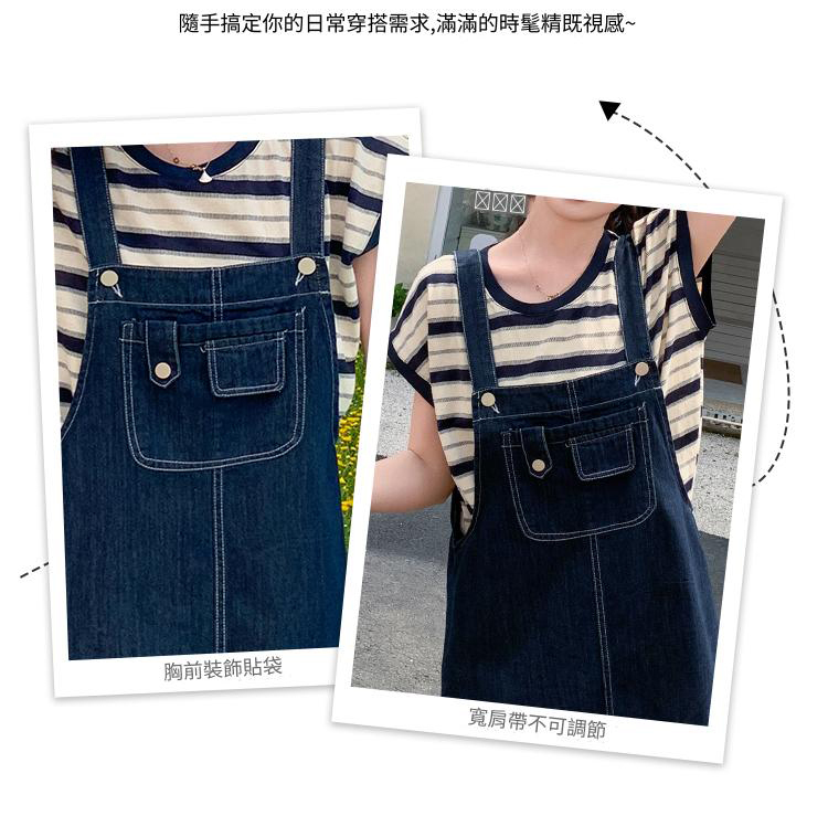 獨家訂製│韓系甜姐兒T恤+牛仔吊帶裙兩件式套裝組(06H6610)