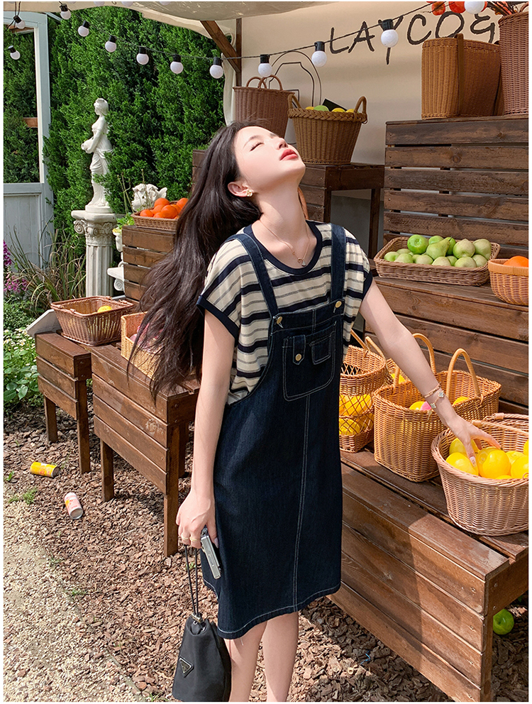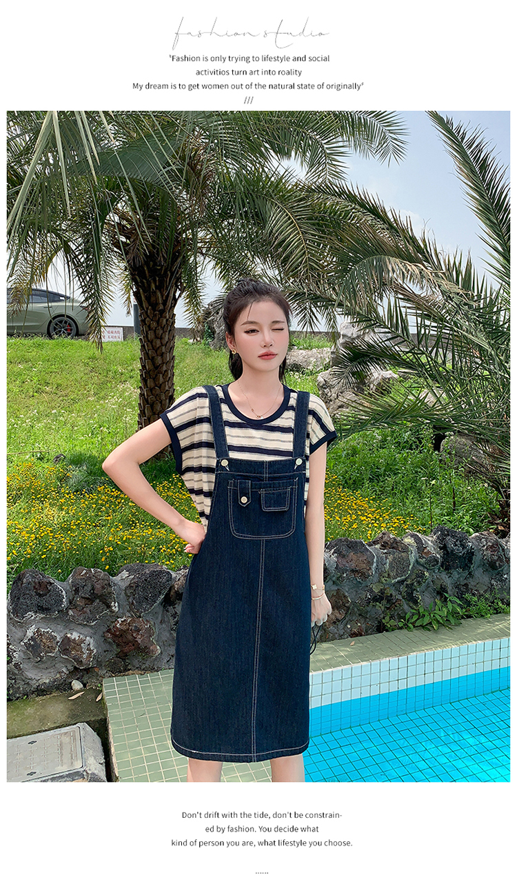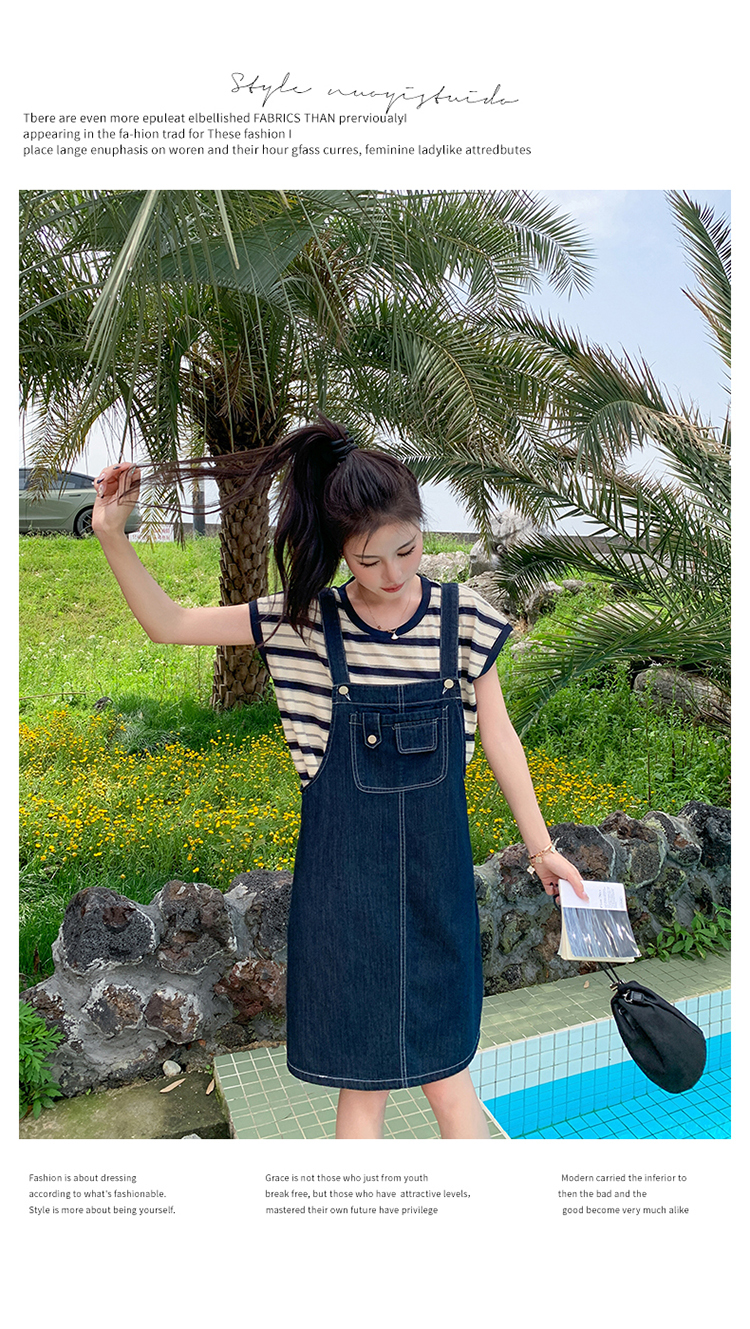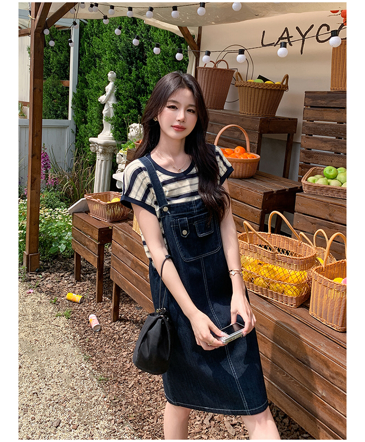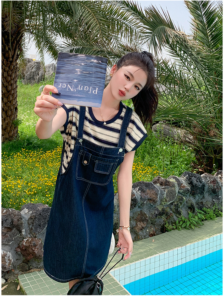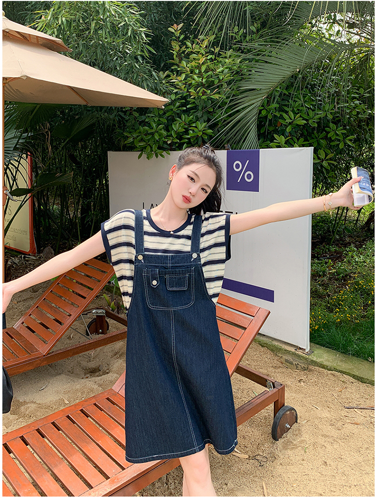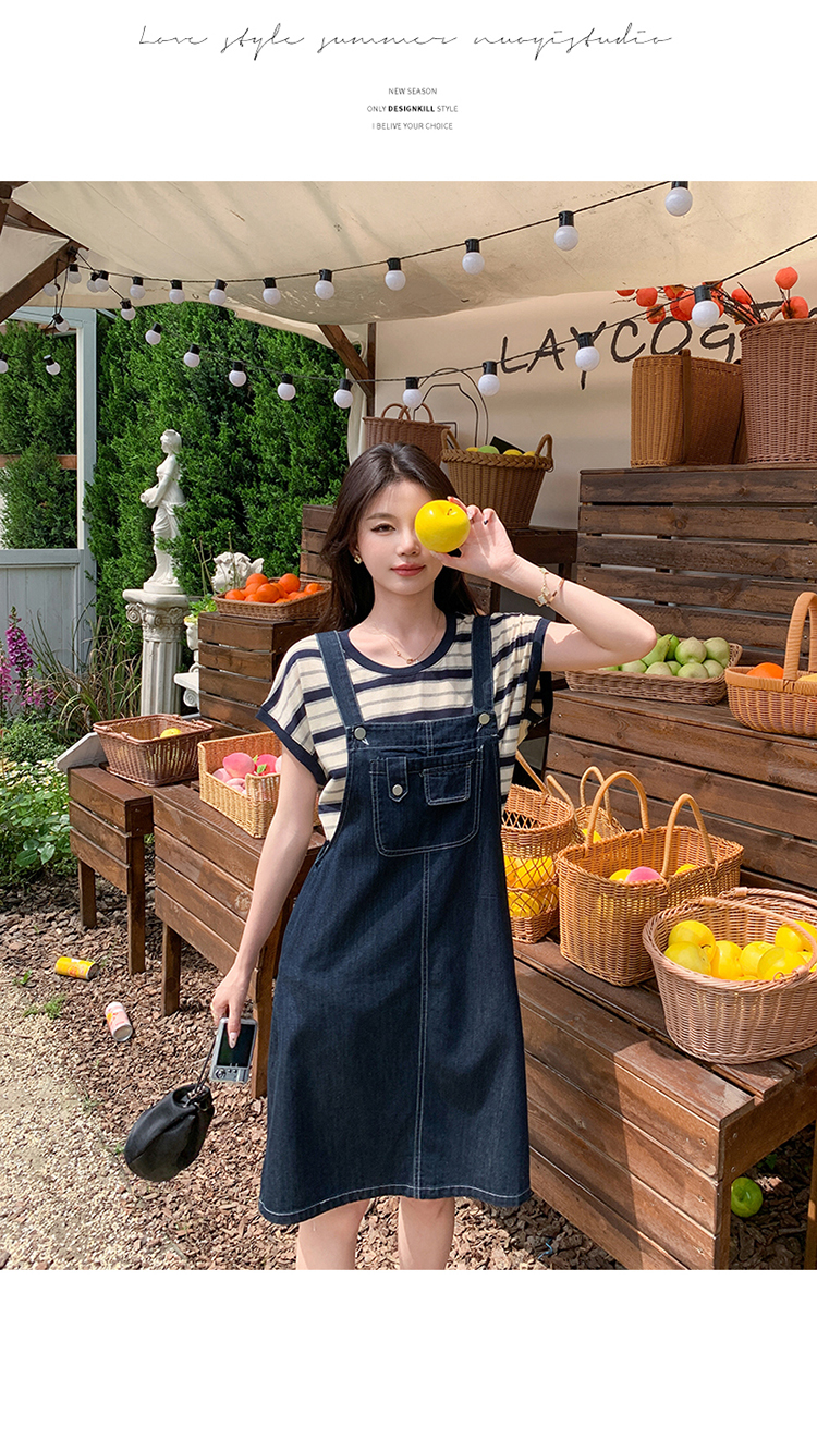 獨家訂製│韓系甜姐兒T恤+牛仔吊帶裙兩件式套裝組(06H6610)